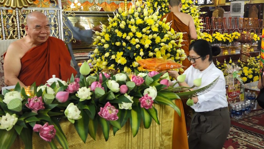 Thí chủ Lê Thị Giàu, dâng cúng pháp y Kathina lên chư Tôn thiền đức