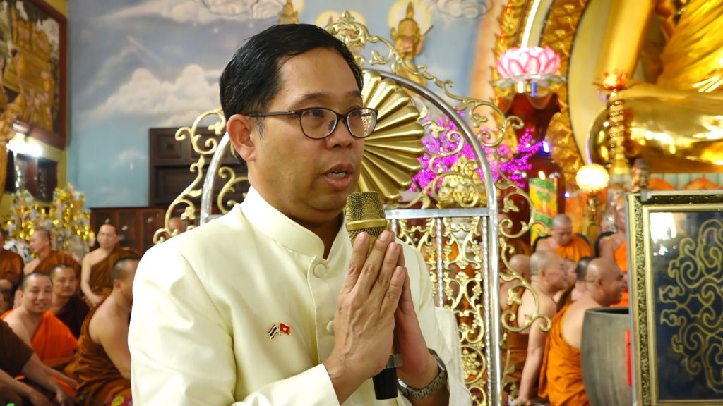 Tại buổi lễ dâng Y Kathina, Tổng lãnh sự quán Vương quốc Campuchia - Malaysia - Hoàng gia Thái Lan, lần lượt phát biểu chào mừng, gửi lời chúc tốt đẹp đến buổi lễ dâng Y Kathina, đồng thời truyền tải thông điệp tứ chúng nỗ lực duy trì mạng mạch Chính Pháp. Đại diện tổng lãnh sự quán hoàng gia Thái Lan, lãnh sự quán Campuchia và tổng lãnh sự quán Malaysia cũng đã bày tỏ sự vui mừng khi được tham dự buổi lễ đầy trang nghiêm và long trọng của Phật giáo Nam tông Khmer, mong rằng sẽ tiếp tục có được vinh hạnh đến Thiền Viện thêm nhiều lần nữa.