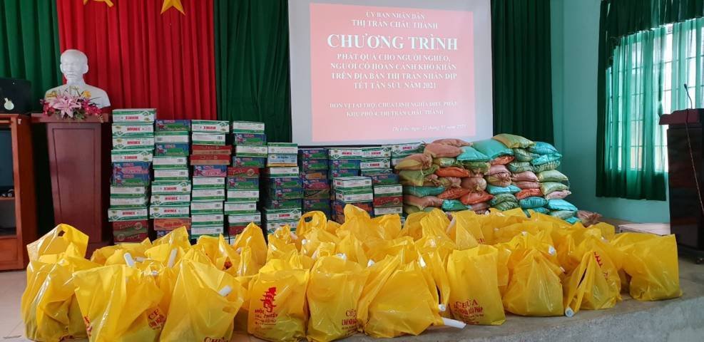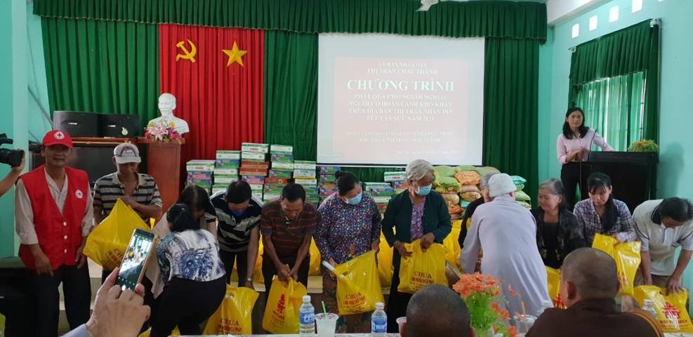 PSO - Chiều ngày 21/1/2021 (nhằm ngày 9 tháng Chạp năm Canh Tý), SC.Thích Nữ Hạnh Linh - Trụ trì chùa Linh Nghĩa Diệu Pháp (thị trấn Châu Thành, huyện Châu Thành, tỉnh Tây Ninh) tổ chức phát quà nhân dịp Xuân Tân Sửu tại UBND thị trấn Châu Thành cho đồng bào khó khăn, người già neo đơn, diện chính sách trên địa bàn.