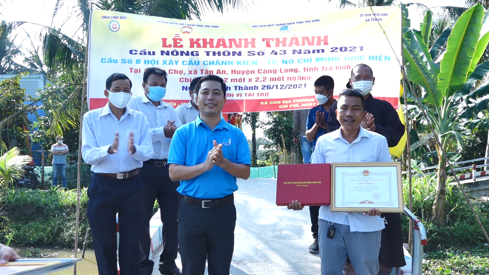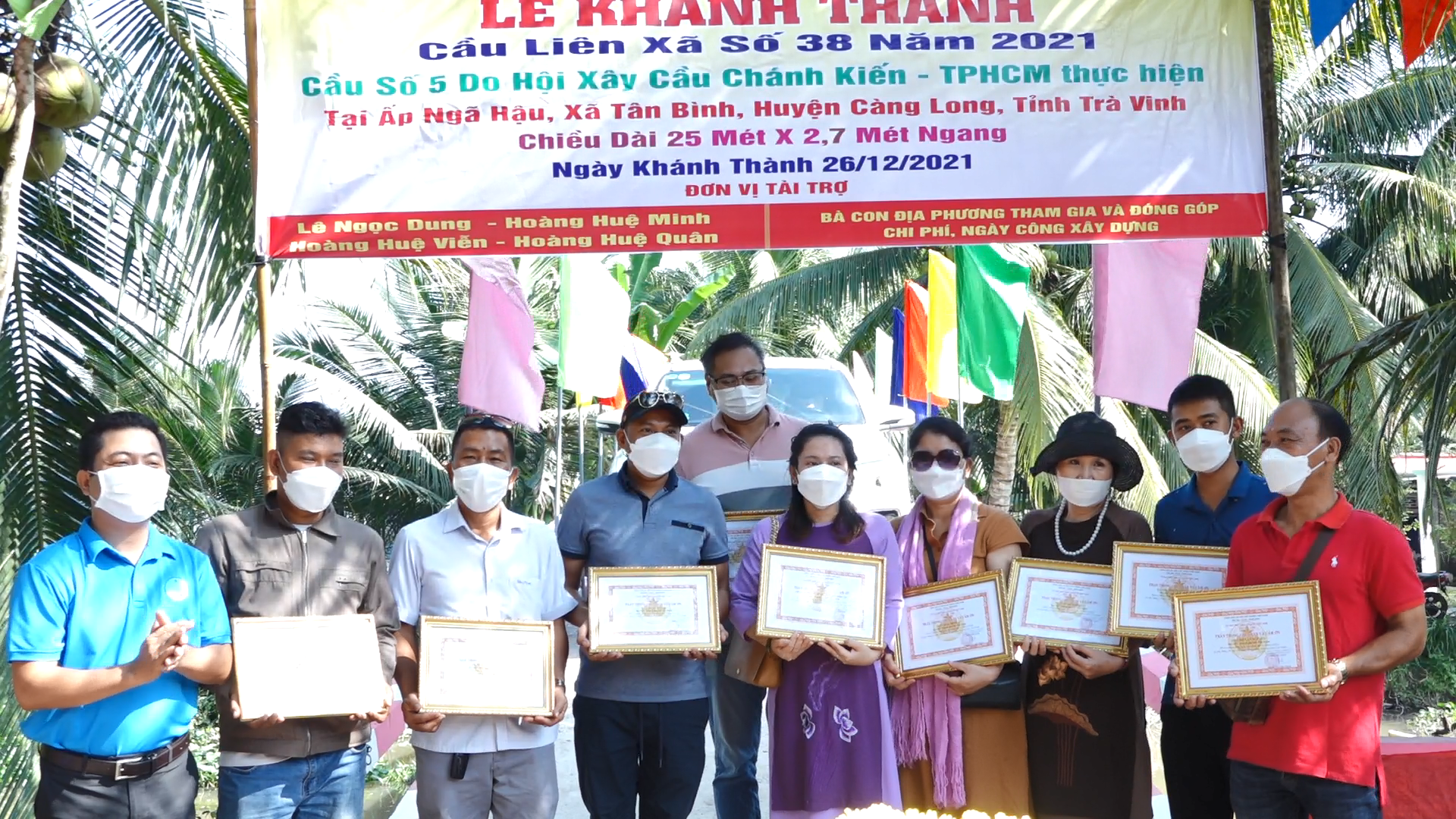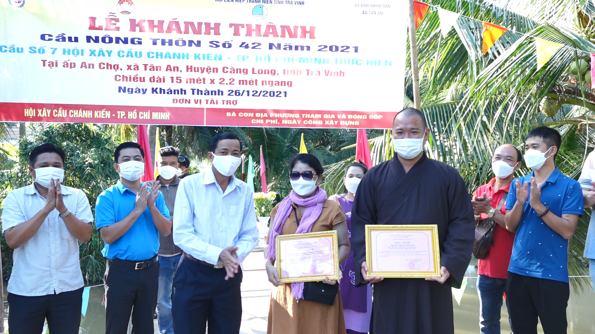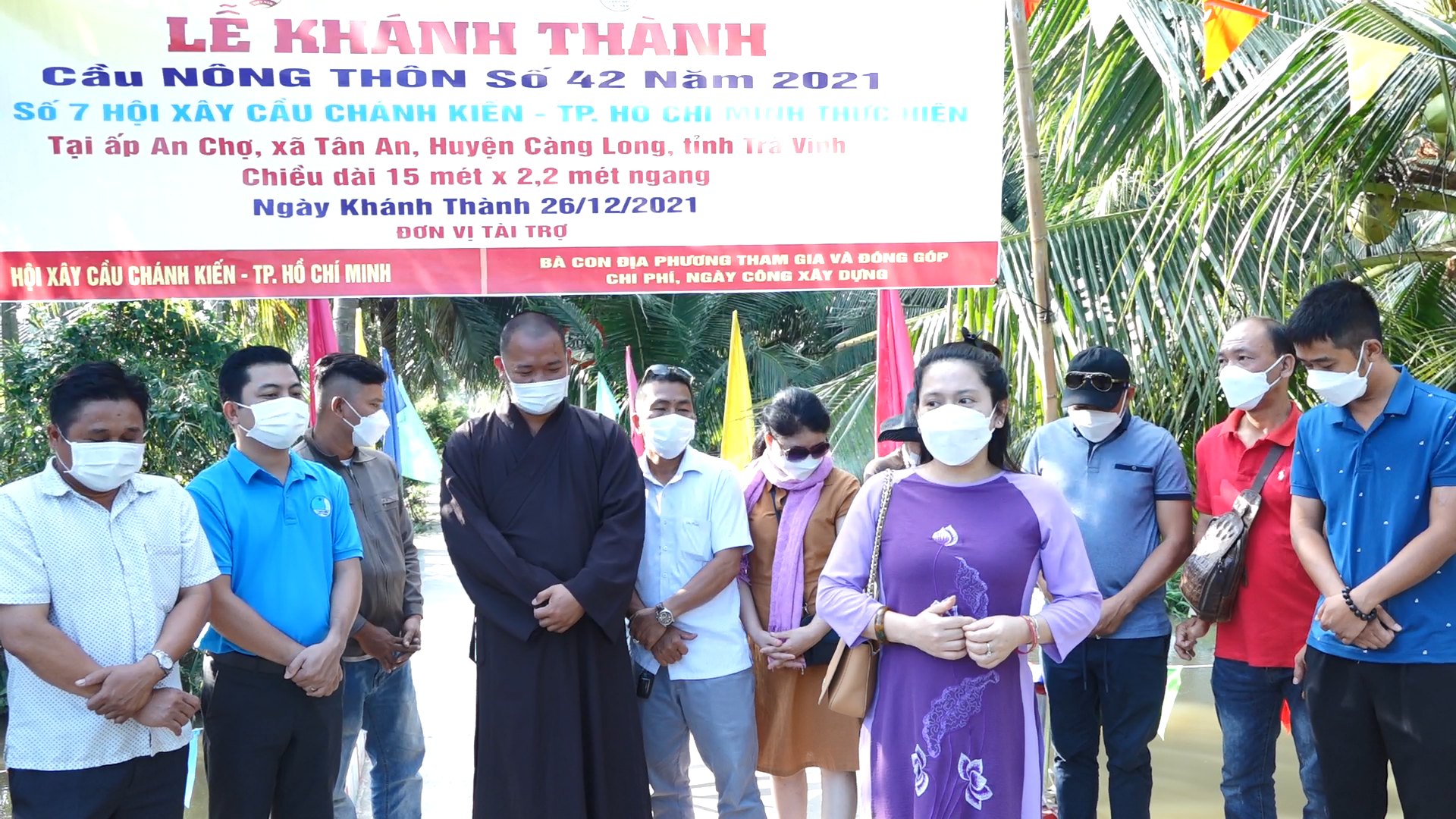 PSO – Nhằm giúp bà con nông dân đi lại được thuận tiện hơn. Sáng ngày 26/12/2021, ĐĐ. Thích Minh Trí – trụ trì chùa Long Bửu (xã Nhị Long) cùng Hội xây cầu Chánh Kiến (TP. HCM) đã kết hợp cùng chính quyền địa phương khánh thành và bàn giao 5 cây cầu giao thông nông thôn tại xã Tân An, xã An Trường A, xã Tân Bình và xã Phương Thạnh, huyện Càng Long, tỉnh Trà Vinh. Đón tiếp đoàn có đại diện chính quyền địa phương sở tại cùng bà con nhân dân. Huyện Càng Long là một trong những huyện trên địa bàn tỉnh Trà Vinh có hệ thống sông ngòi chằng chịt, người dân đa phần là đồng bào dân tộc Khmer, đời sống còn nhiều khó khăn, tuy được sự hỗ trợ từ chính quyền địa phương các cấp nhưng việc xây dựng cầu đường còn gặp nhiều hạn chế. Cảm thông với những khó khăn của người dân trong việc đi lại, nhất là các em học sinh đến trường vào mùa mưa. ĐĐ. Thích Minh Trí đã vận động quý mạnh thường quân gần xa cùng chung tay với chùa Long Bửu giúp đỡ bà con. Được sự trợ duyên giúp đỡ của Hội xây cầu Chánh Kiến (TP. HCM) cũng như quý mạnh thường quân gần xa phát tâm ủng hộ kinh phí cùng với chùa Long Bửu xây mới 5 cây cầu giao thông nông thôn trên địa bàn huyện Càng Long nhằm chia sẽ nỗi khó khăn với bà con khi đi lại qua những cây cầu tạm. Sau thời gian hơn 6 tháng thi công 5 cây cầu đã được hoàn thiện và đưa vào sử dụng với chất liệu bê tông cốt thép do Hội xây cầu Chánh Kiến tài trợ kinh phí, người dân góp ngày công xây dựng. Phát biểu tại buổi bàn giao, ĐĐ. Thích Minh Trí đã gửi lời tri ân đến Hội xây cầu Chánh Kiến cùng quý mạnh thường quân gần xa đã chung tay với chùa Long Bửu chia sẻ với nỗi khó khăn, vất vả của bà con trong việc đi lại giúp mọi người được thuận tiện hơn khi vận chuyển hàng hóa, các em học sinh đến trường an toàn thuận tiện hơn. Đại diện chính quyền địa phương cũng gửi lời cảm ơn đến ĐĐ. Thích Minh Trí cùng Hội xây cầu Chánh Kiến đã cùng chung tay với chính quyền chăm lo cho đời sống của người dân, góp phần cùng chính quyền xây dựng nông thôn mới. Địa phương sẽ vận động mọi người cùng nhau gìn giữ, bảo dưỡng những cây cầu này để sử dụng lâu dài, hiệu quả. Tại đây đại diện chính quyền cũng gửi tặng bằng khen và thư cảm ơn đến ĐĐ. Thích Minh Trí cùng các thành viên của Hội xây cầu Chánh Kiến, vì những đóng góp tích cực trong việc xây dựng quê hương ngày càng tươi đẹp. Đại diện cho Hội xây cầu Chánh Kiến cũng gửi lời cảm ơn đến ĐĐ. Thích Minh Trí đã tạo thiện duyên cho nhóm có thể chia sẻ một phần nào khó khăn với bà con, cũng như cảm ơn đến chính quyền địa phương đã tạo điều kiện thuận lợi trong việc thi công xây dựng cầu, đúng tiến độ để bàn giao cho bà con sử dụng. Cuối buổi lễ, ĐĐ. Thích Minh Trí đã cùng chính quyền địa phương và Hội xây cầu Chánh Kiến, cắt băng khánh thành, thông lưu và bàn giao lại cho người dân địa phương quản lý, sử dụng. Trước đó vào chiều ngày 25/12/2021, ĐĐ. Thích Minh Trí cũng đã cùng Hội xây cầu Chánh Kiến bàn giao 2 cây cầu giao thông nông thôn tại xã Đa Lộc và xã Phước Hảo, huyện Châu Thành, tỉnh Trà Vinh. Tổng kinh phí trong đợt bàn giao lần này là hơn 1 tỷ 500 triệu đồng. Được biết xây cầu là hoạt động thường niên của Chùa Long Bửu, hàng năm với sự vận động của ĐĐ. Thích Minh Trí đã có rất nhiều cây cầu nông thôn được xây dựng. Từ đầu năm 2021 đến nay, ĐĐ. Thích Minh Trí đã cùng Hội xây cầu Chánh Kiến bàn giao 10 cây cầu giao thông nông thôn góp một không nhỏ vào sự thay đổi diện mạo của nông thôn mới và sự phát triển kinh tế của địa phương.