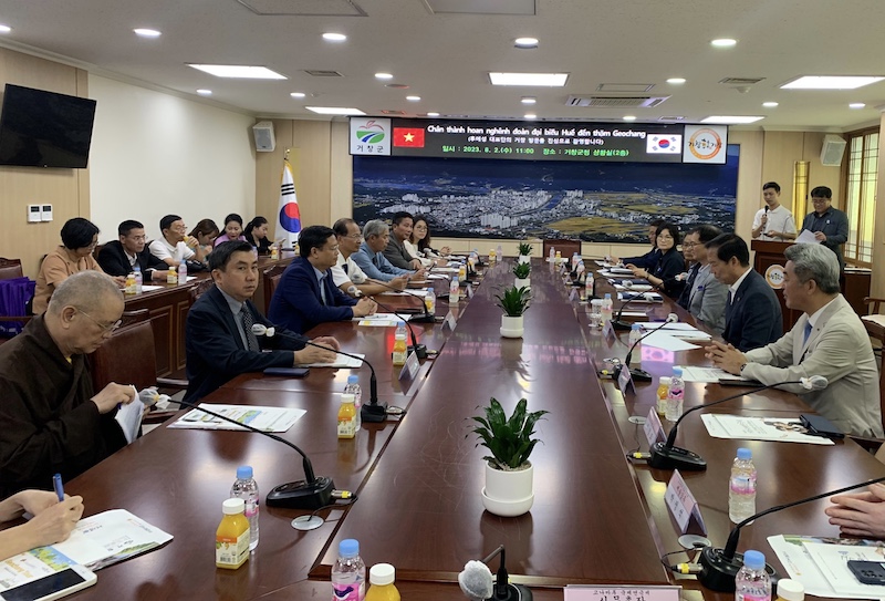 Phái đoàn có ông Nguyễn Thanh Bình - Phó Chủ tịch thường trực UBND tỉnh TT Huế, cùng lãnh đạo các Sở, Ban ngành tỉnh Thừa Thiên Huế. Tham gia phái đoàn có Hoà thượng Thích Huệ Phước - UVTT HĐTS, Phó Trưởng ban thường trực Ban Hoằng pháp trung ương, Phó Trưởng ban thường trực BTS GHPGVN tỉnh TT Huế. Đi cùng đoàn công tác đến Hàn Quốc còn có đoàn biểu diễn nghệ thuật truyền thống cung đình của Trung tâm Bảo tồn Di tích Cố đô Huế.