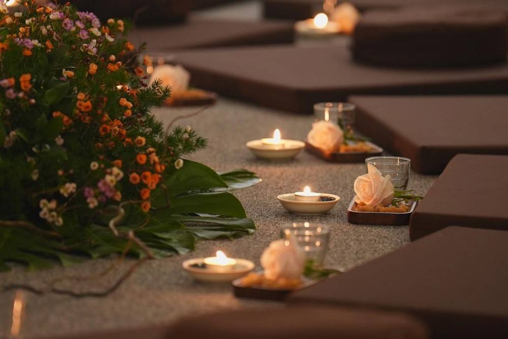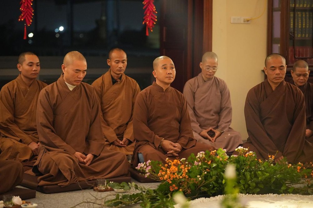 Trước khi bước vào đêm thiền trà, đại chúng đã vân tập về thiền đường, cùng nhau tọa thiền, an trú thân tâm, chuẩn bị đón nhận những giây phút thiêng liêng của đêm Thiền Trà.