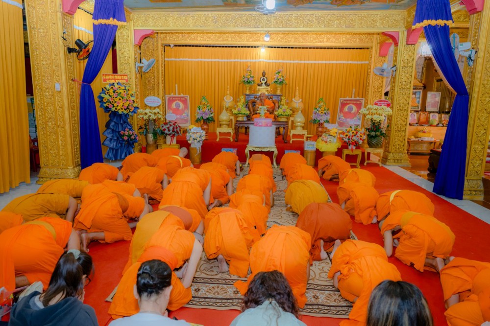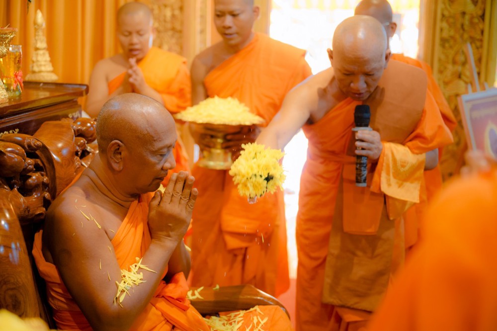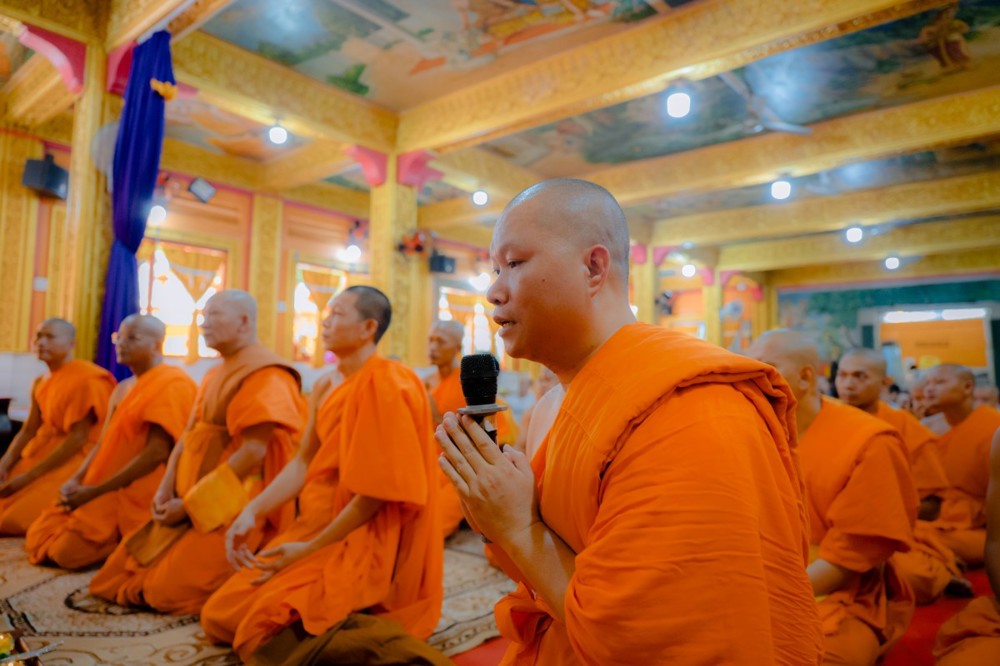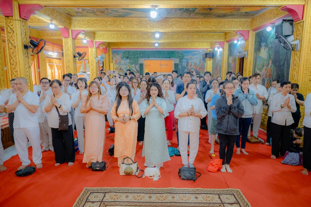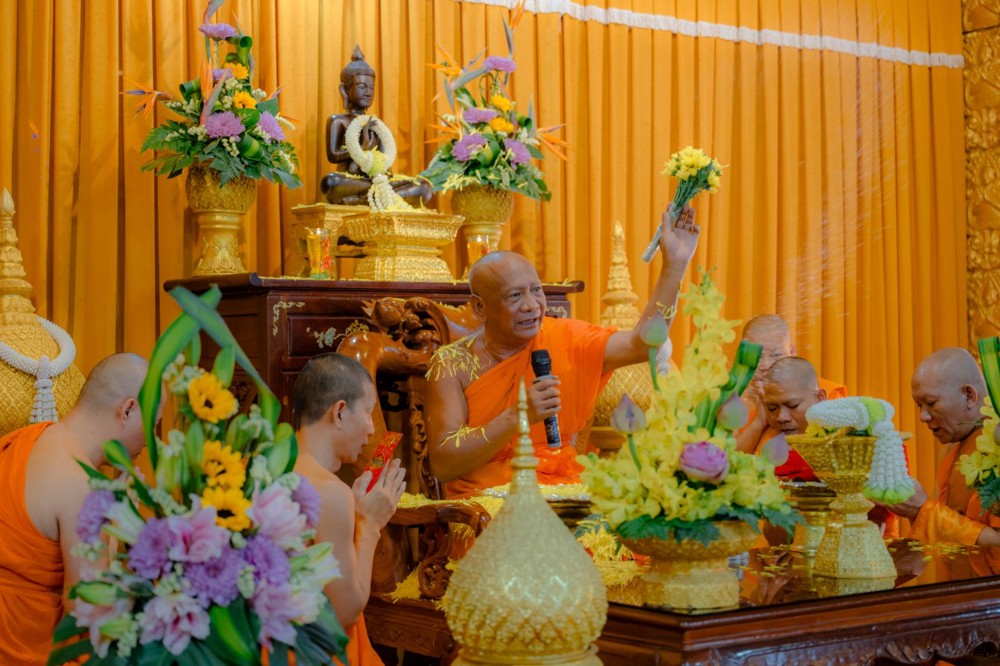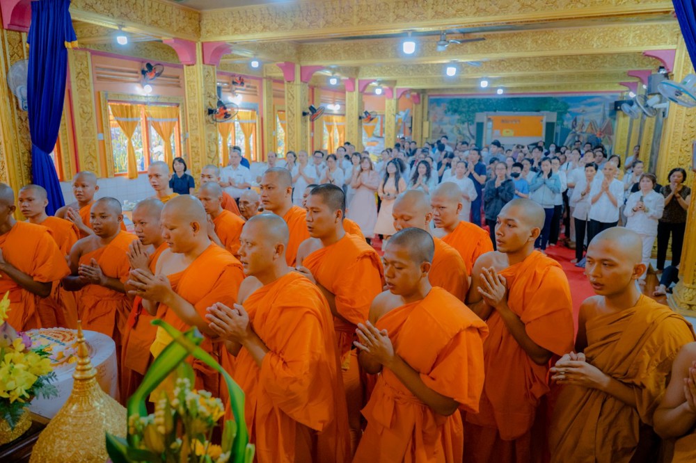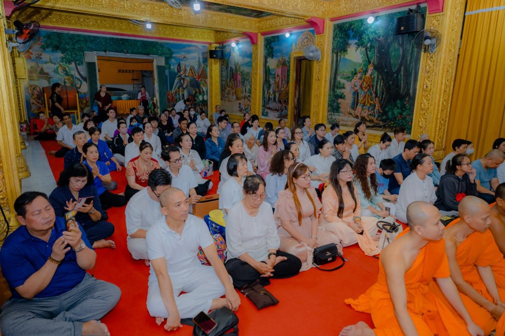 Để lễ khánh tuế, chúc thọ Ân sư được viên mãn đúng pháp, dưới sự chứng minh của Tam Bảo, chư Tăng cùng Phật tử đã trang nghiêm cử hành nghi thức tụng kinh cầu an bằng tiếng Pali theo truyền thống hệ phái Nam tông Khmer. Âm điệu trầm hùng, thanh tịnh của lời kinh ngân vang nơi giảng đường đã khép lại buổi lễ trong niềm hoan hỷ và thành kính.