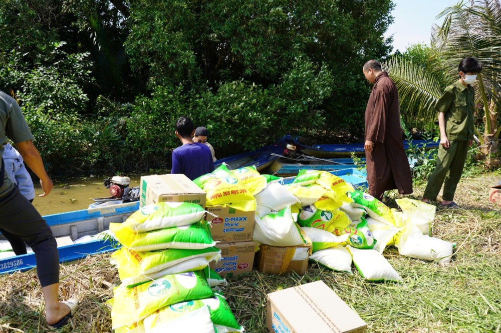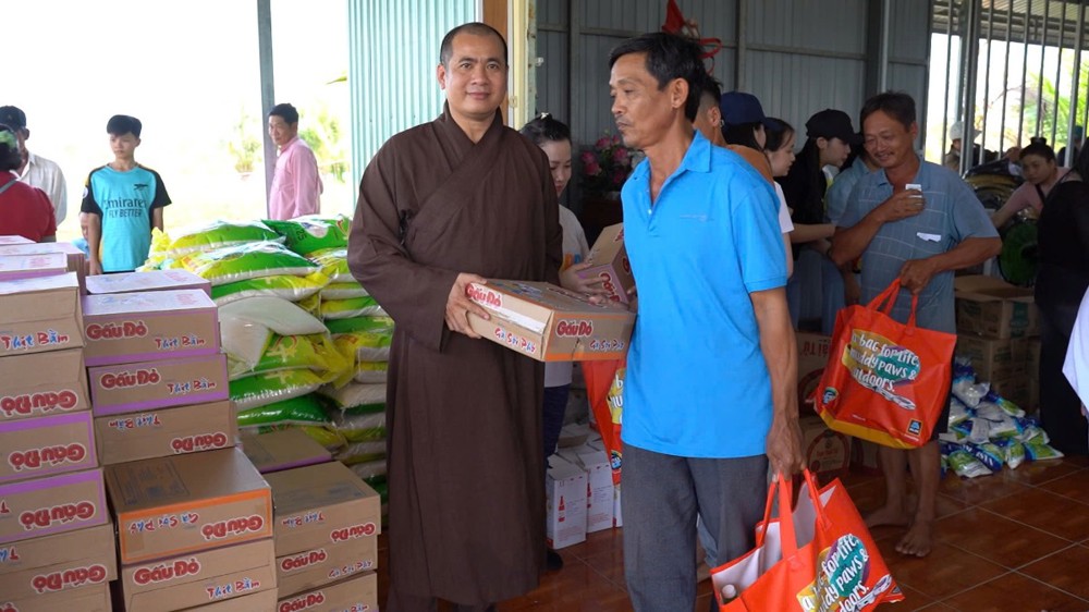 Tại đây, Điểm SHTGTT Khánh Quang đã trao 155 phần quà, mỗi phần gồm: gạo, mì, bánh, các nhu yếu phẩm cùng phong bì tiền mặt trị giá 800.000 đồng, tổng kinh phí là 124 triệu đồng, do Đại đức Thích Tuệ Chánh vận động và kết nối các mạnh thường quân.