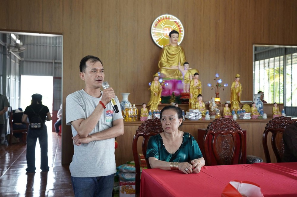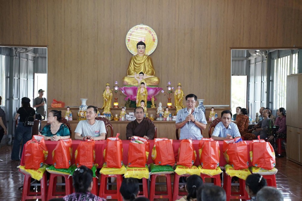 Đại diện nhà tài trợ, ông Bùi Thiên Nhiên gửi lời chúc sức khỏe, chúc xuân cát tường đến Đại đức Thích Tuệ Chánh, quý vị lãnh đạo xã Vĩnh Bình và toàn thể bà con, đồng thời bày tỏ niềm vui khi được góp phần vào công tác an sinh xã hội tại địa phương.