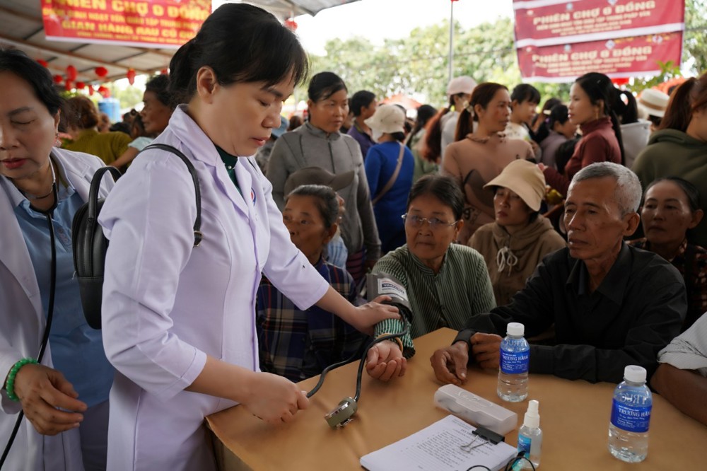 Tại phiên chợ, 250 phần quà với tổng trị giá 180 triệu đồng, gồm gạo, mì, bánh dân gian và các nhu yếu phẩm thiết yếu, đã được trao tận tay bà con. Bên cạnh đó, chương trình còn kết hợp khám bệnh, tư vấn sức khỏe và phát thuốc miễn phí, góp phần giúp người dân khó khăn giảm bớt gánh lo trong những ngày cận Tết.