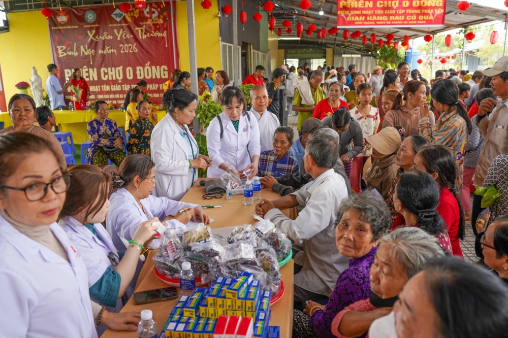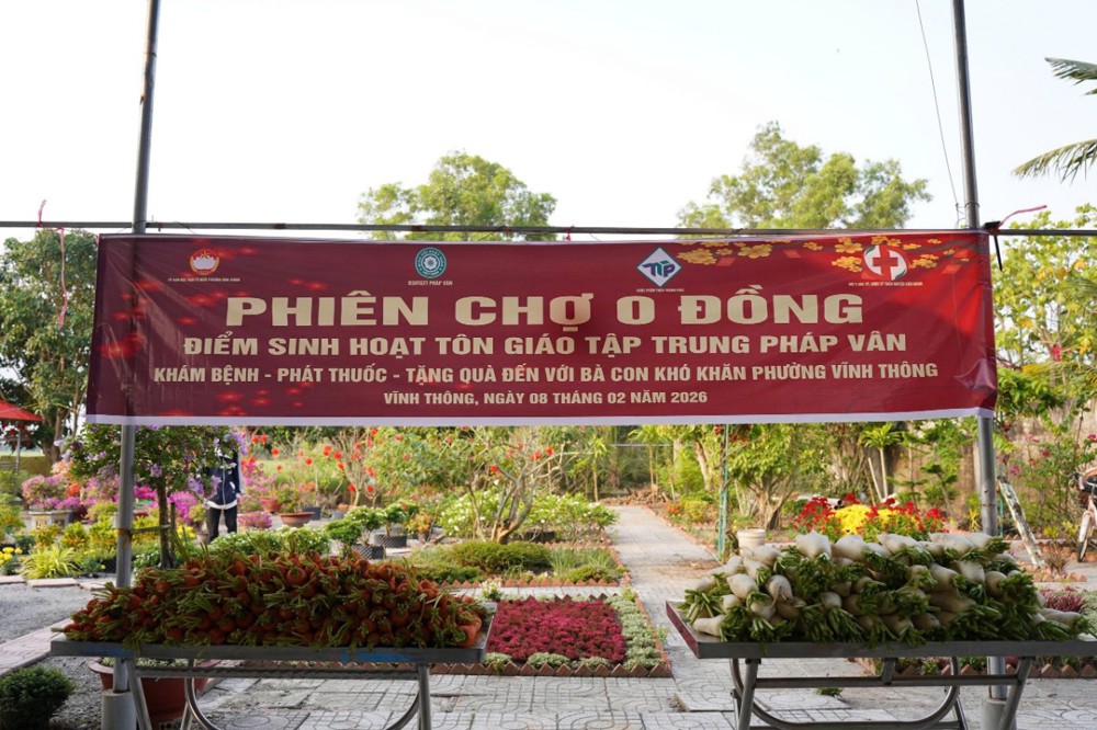 PSO - Ngày 08/02/2026 (nhằm ngày 21 tháng Chạp năm Ất Tỵ), nhị vị Sư cô Thích Nữ Diệu Mỹ và Sư cô Thích Nữ Tâm Hiệp, đại diện Điểm Sinh Hoạt TGTT Pháp Vân (phường Vĩnh Thông, tỉnh An Giang), đã phối hợp cùng Ủy ban MTTQVN phường Vĩnh Thông, Công ty Dược phẩm Thành Phát và Đội y bác sĩ thiện nguyện Kiên Giang tổ chức Phiên chợ 0 đồng, nhằm chăm lo đời sống cho bà con có hoàn cảnh khó khăn nhân dịp Tết Nguyên đán.