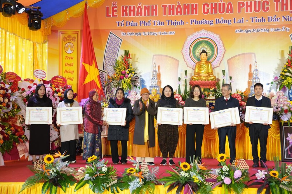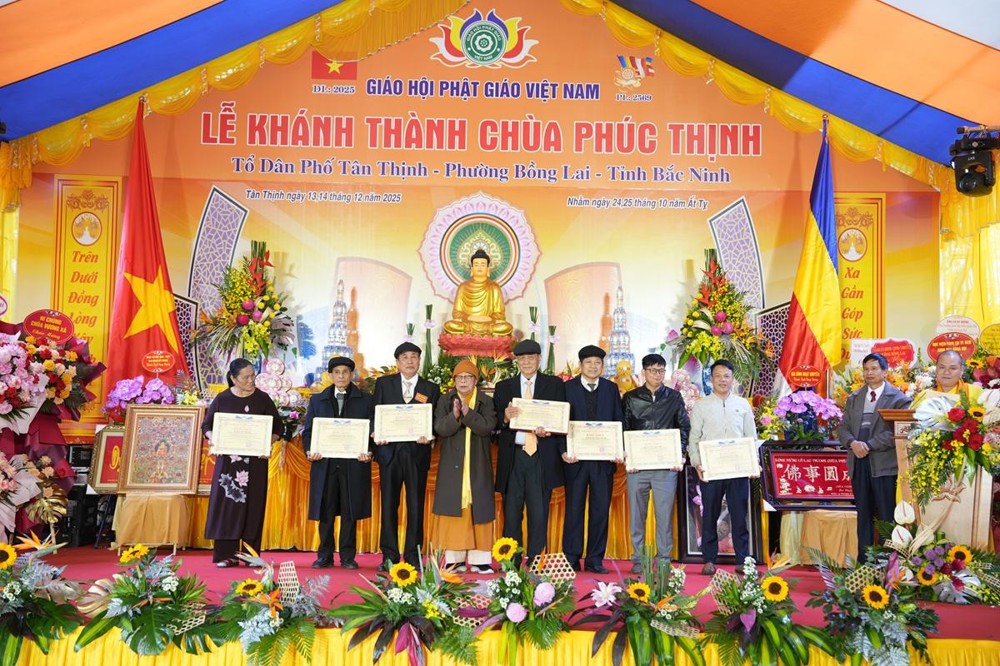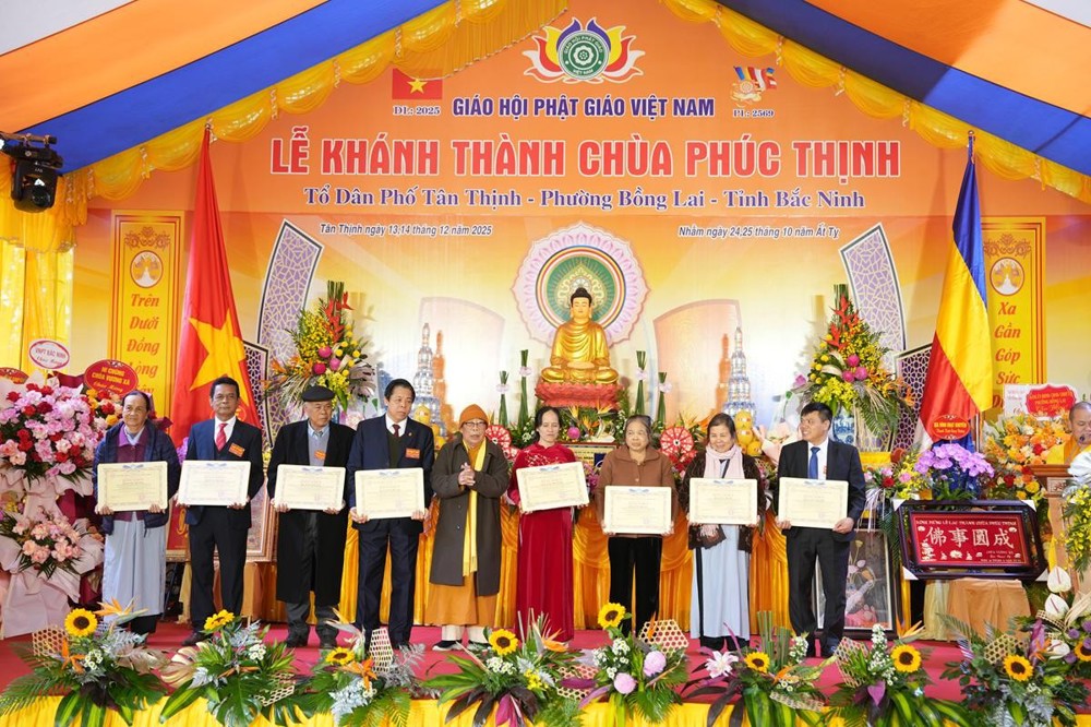 Dịp này, Liên hiệp các hội UNESCO Việt Nam trao quyết định chứng nhận Di sản Văn hóa Tâm linh Việt Nam cho chùa Phúc Thịnh. Đồng thời, BTC cũng đã trao bằng khen, bằng tuyên dương công đức đến 55 tập thể và cá nhân đã có nhiều đóng góp tích cực trong công tác xây dựng chùa.