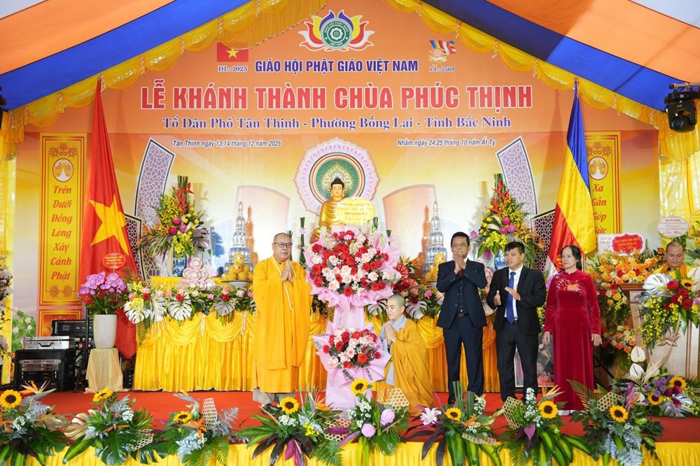 Đại diện chính quyền địa phương, ông Nguyễn Khắc Phụng - Ủy viên Ban Thường vụ Đảng ủy, Phó Chủ tịch UBND phường Bồng Lai nhấn mạnh vai trò quan trọng của chùa Phúc Thịnh trong đời sống tinh thần của nhân dân trên địa bàn. Ông bày tỏ mong muốn nhà chùa sẽ tiếp tục phối hợp chặt chẽ cùng chính quyền và nhân dân Phật tử chung tay gìn giữ, bảo vệ cảnh quan, giá trị văn hóa tâm linh tự viện, qua đó góp phần tạo điều kiện thuận lợi, đáp ứng nhu cầu sinh hoạt tín ngưỡng, tôn giáo chính đáng của nhân dân và Phật tử địa phương.