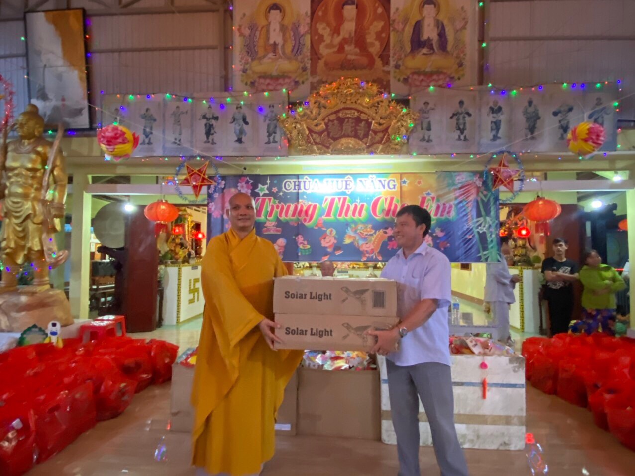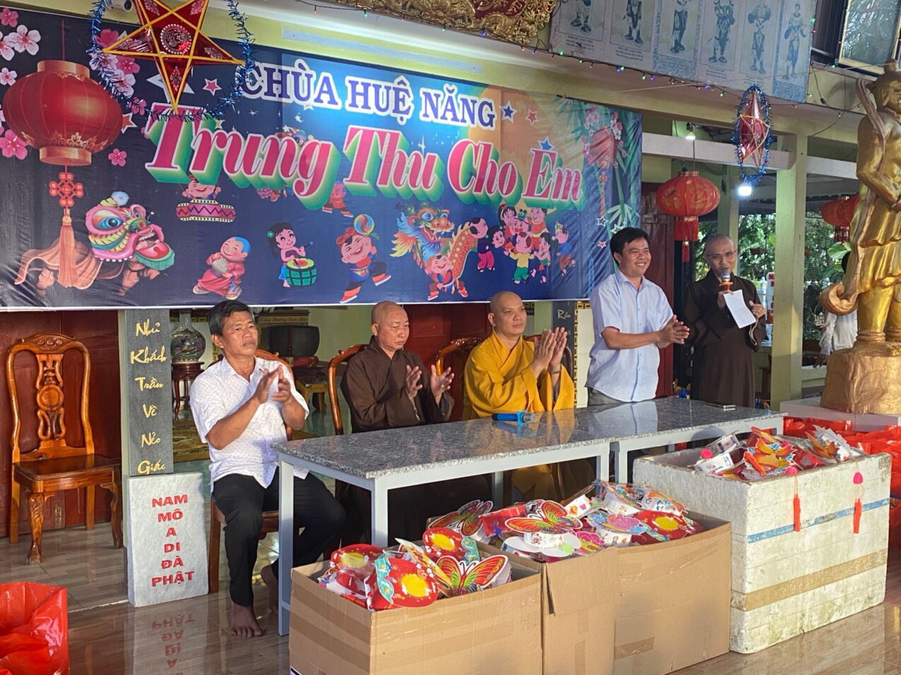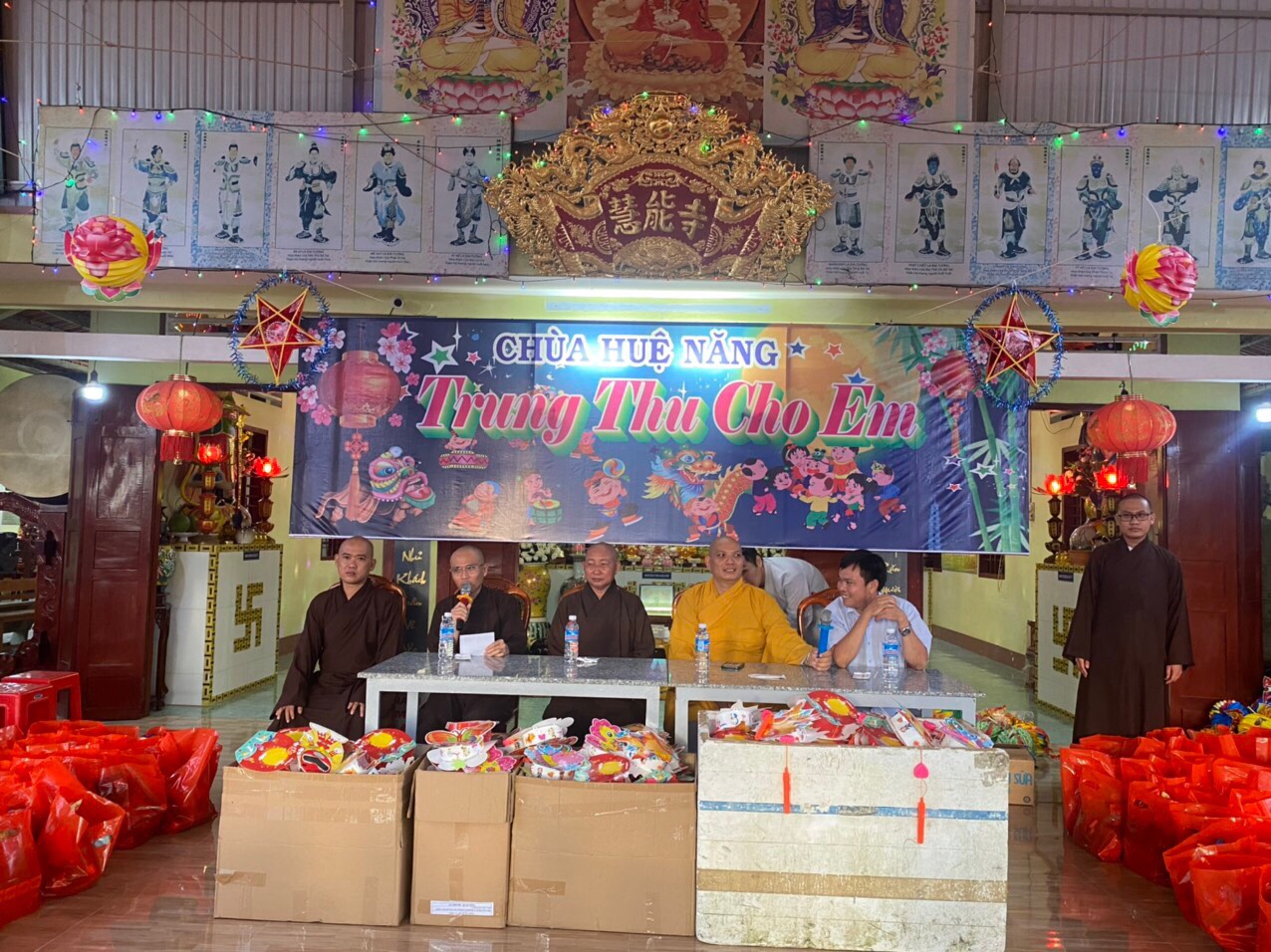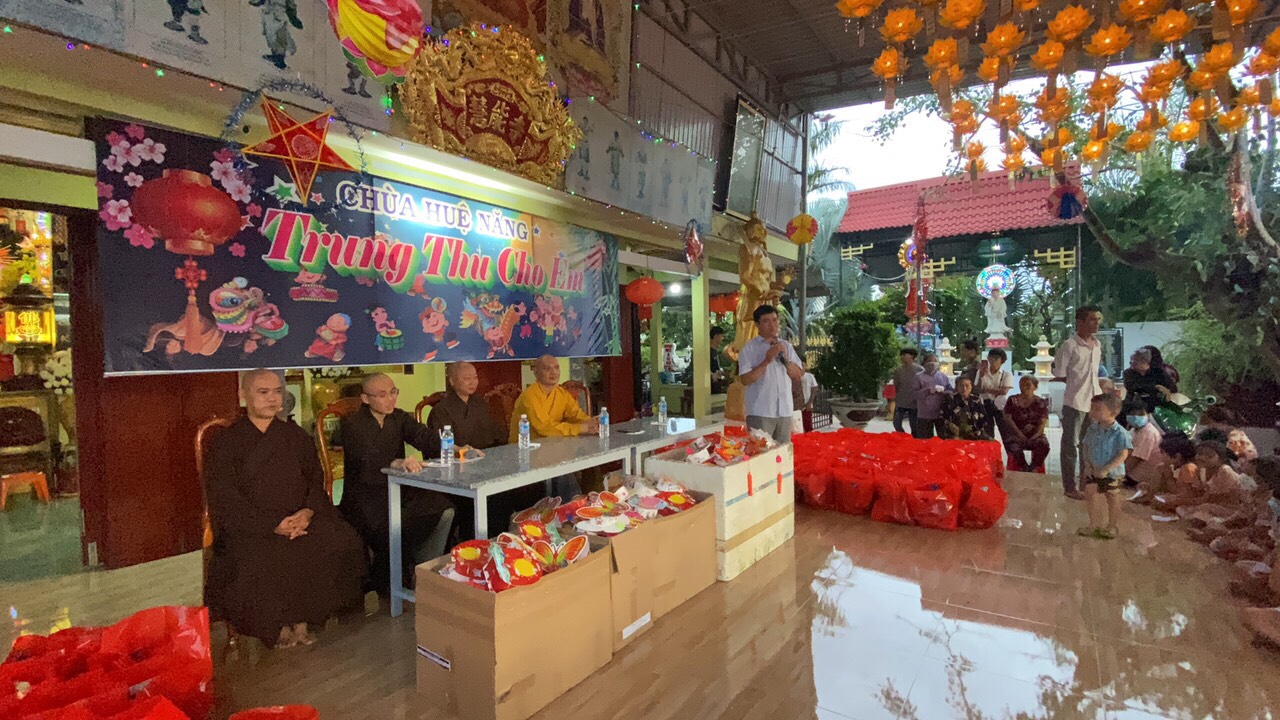 Đây là một trong những hoạt động thiết thực nhằm động viên, sẻ chia, mang lại niềm vui cho các em thiếu nhi có hoàn cảnh khó khăn trong dịp Tết Trung thu. Phần quà Trung thu cho các cháu gồm lồng đèn và bánh trung thu. Hơn 200 phần quà đã được trao đến tay các em trong niềm hân hoan của tất cả mọi người. Dịp này, Chùa Huệ Năng trao tặng đèn năng lượng mặt trời cho Ấp An Quới, xã An Bình Tây để góp phần đem thêm ánh sáng đến bà con nơi địa phương.