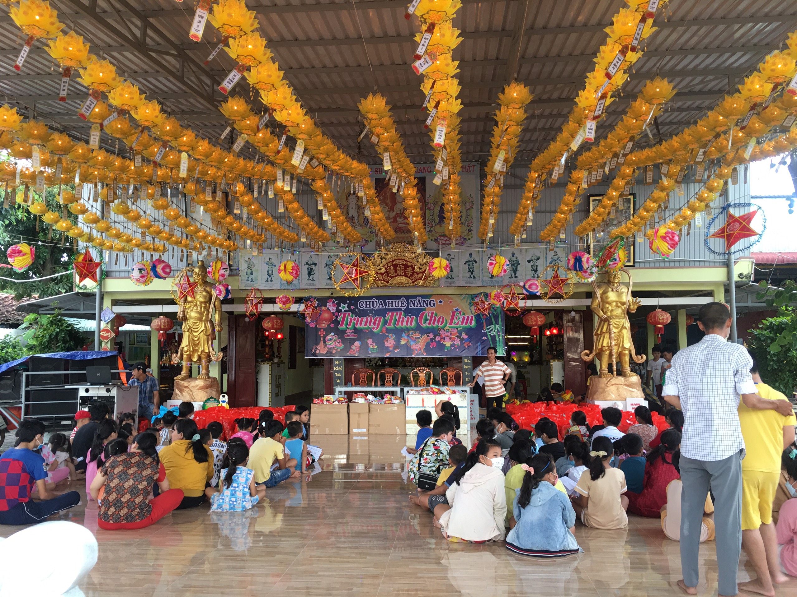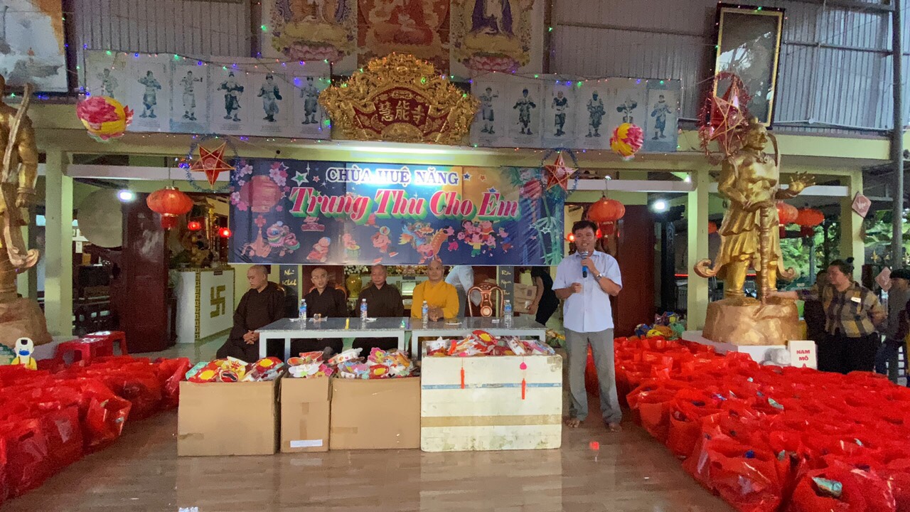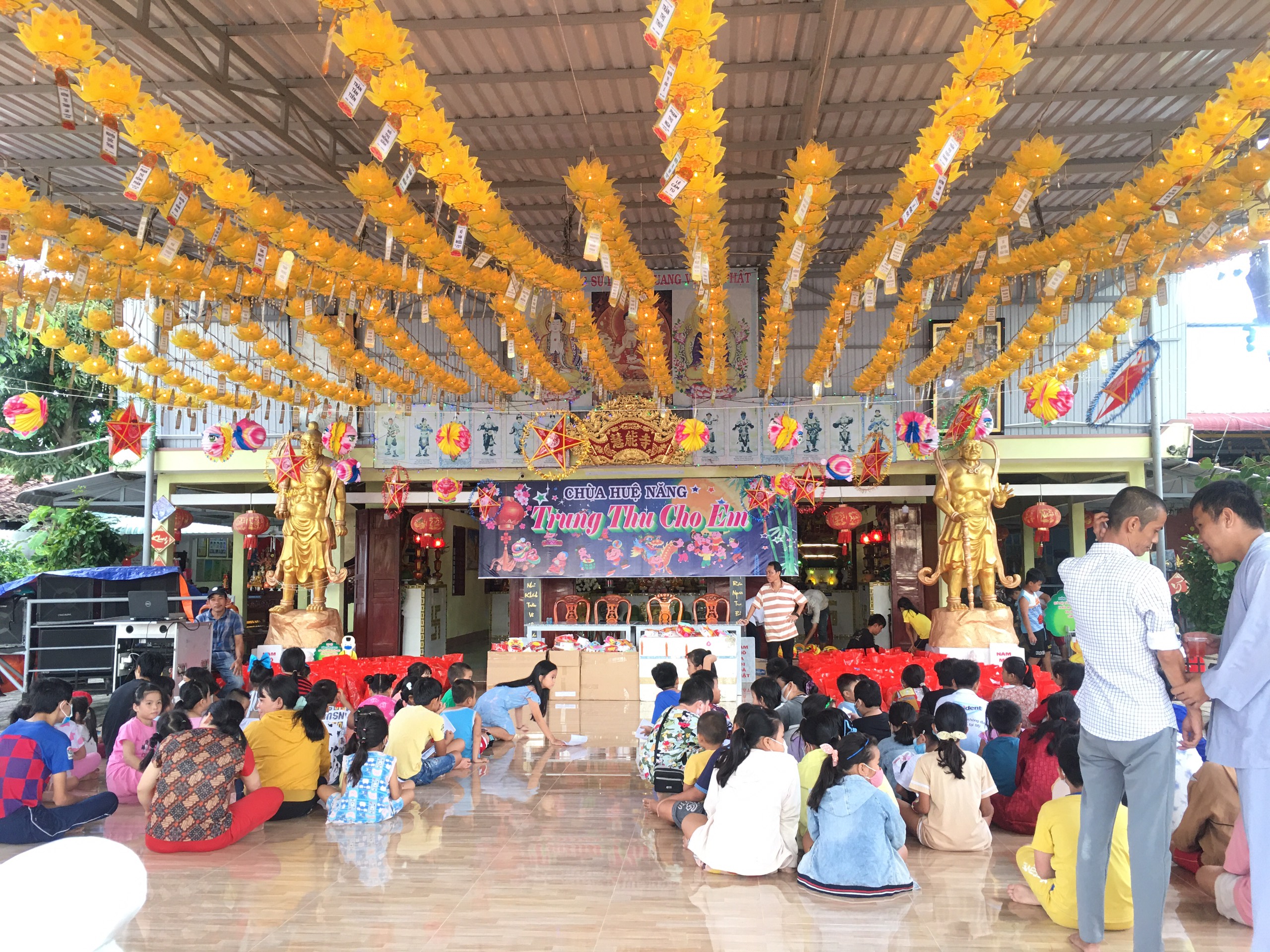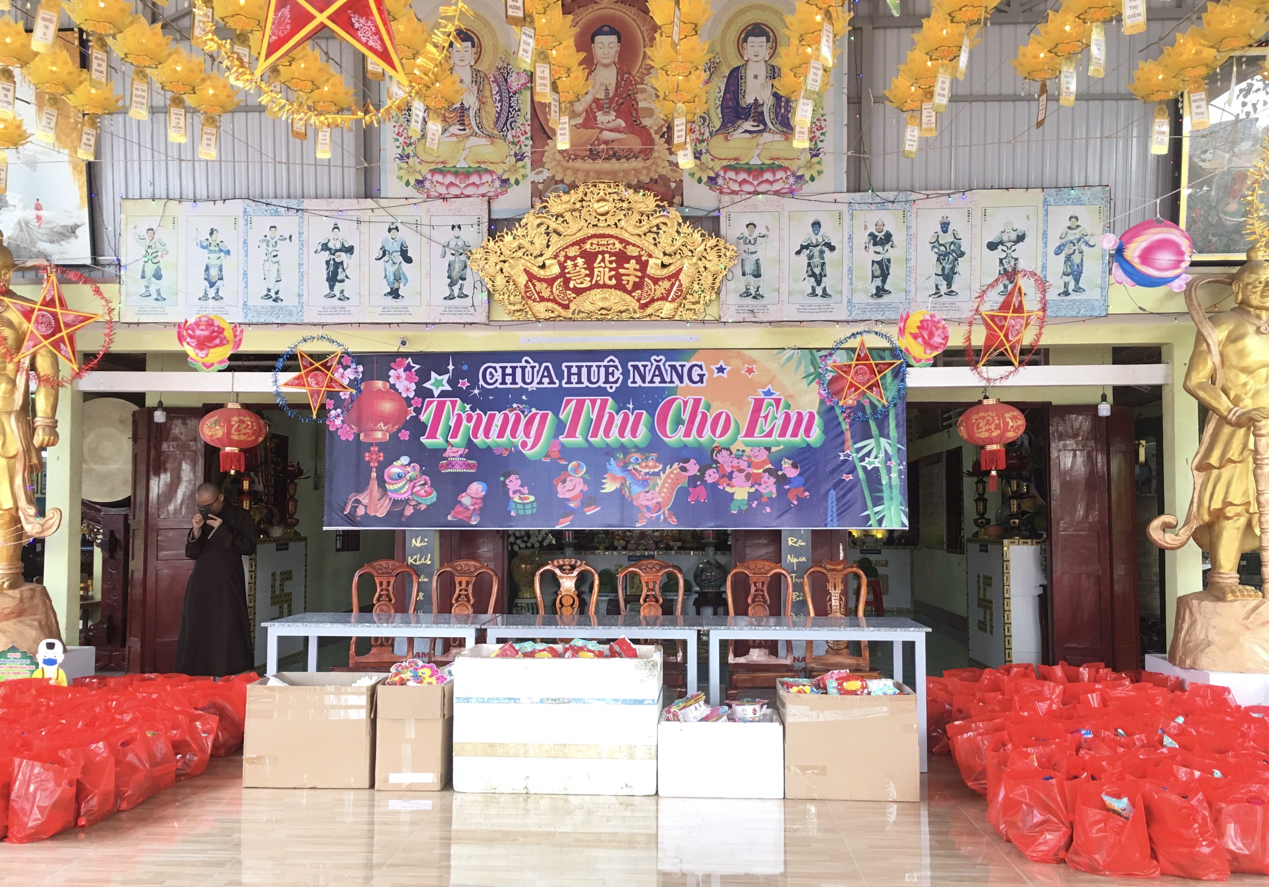 Đây là một trong những hoạt động thiết thực nhằm động viên, sẻ chia, mang lại niềm vui cho các em thiếu nhi có hoàn cảnh khó khăn trong dịp Tết Trung thu. Phần quà Trung thu cho các cháu gồm lồng đèn và bánh trung thu. Hơn 200 phần quà đã được trao đến tay các em trong niềm hân hoan của tất cả mọi người. Dịp này, Chùa Huệ Năng trao tặng đèn năng lượng mặt trời cho Ấp An Quới, xã An Bình Tây để góp phần đem thêm ánh sáng đến bà con nơi địa phương.