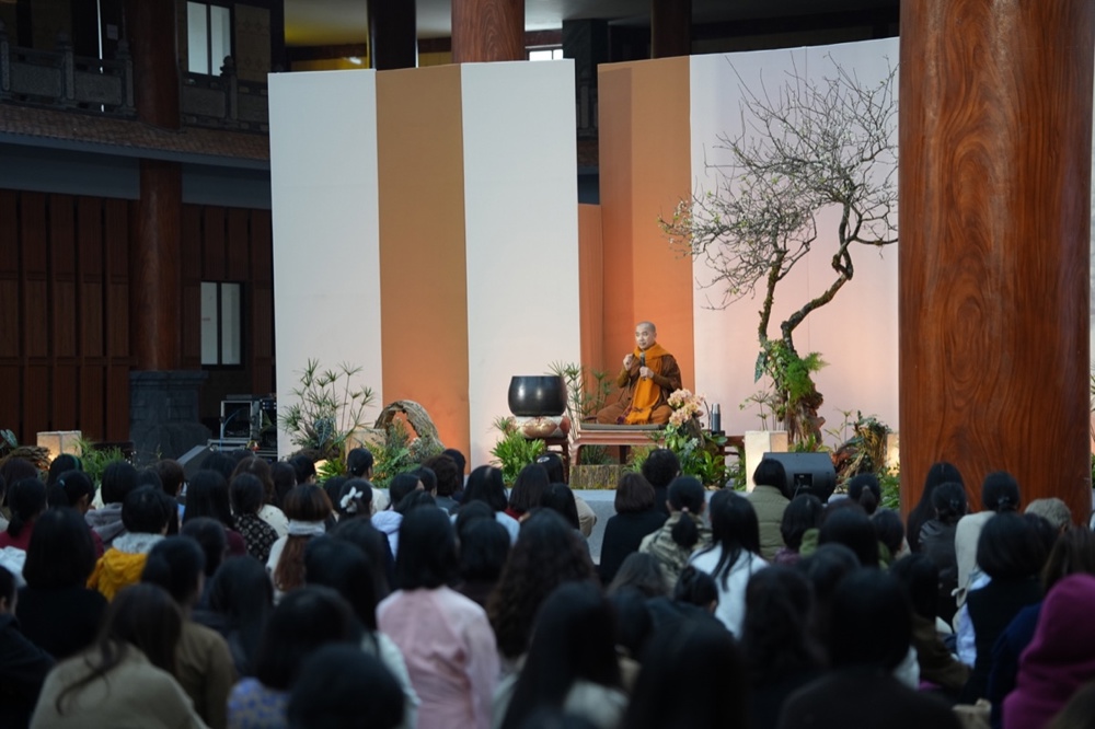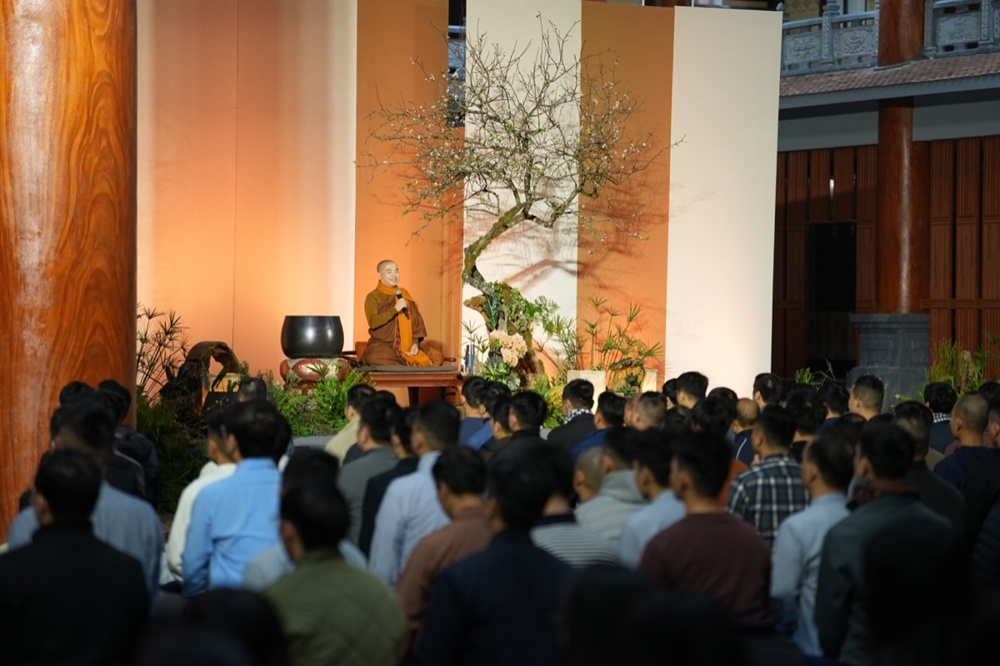 Tại khóa thiền, Thượng tọa Thích Đức Thiện – Phó Chủ tịch, Tổng thư ký HĐTS GHPGVN, Viện chủ chùa Hưng Phúc đã chia sẻ về ý nghĩa của chủ đề “Mắt thương nhìn đời”; gửi gắm trong đó là lòng từ bi, sự bao dung, trí tuệ của Đạo Phật, những lời dạy của Đức Phật. Thông điệp của Đức Phật thấm đẫm tinh thần nhập thế, gắn đạo với đời. Tiếp nối tinh thần ấy, Phật giáo Việt Nam từ quá khứ đến hiện tại, và cả trong tương lai, luôn phát huy mạnh mẽ vai trò ấy, đồng hành cùng dân tộc, góp phần xây dựng đời sống tinh thần, đạo đức và xã hội ngày càng tốt đẹp hơn. Thượng tọa gợi mở rằng, đối với các doanh nhân và doanh nghiệp, khi còn tất bật, bận rộn với công việc cũng có nghĩa là vẫn đang hạnh phúc để cống hiến và tạo dựng giá trị. Điều cốt lõi là mỗi người biết quay về với chính mình, để cảm nhận niềm hỷ lạc và sự bình an, nuôi dưỡng tâm an vui trong từng khoảnh khắc của cuộc sống.