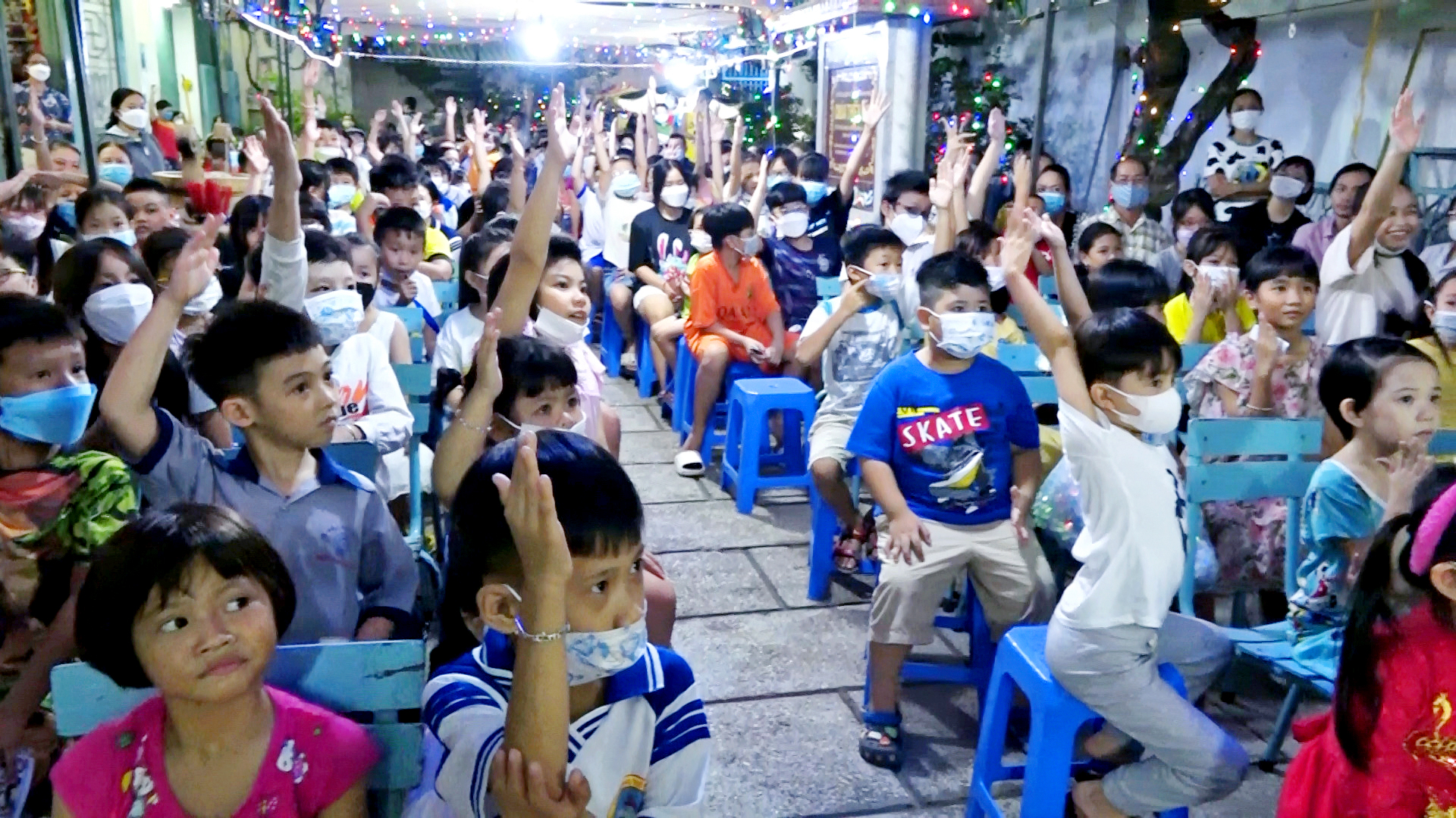 Tiếp đến các em đã được thưởng thức những tiết mục văn nghệ, ảo thuật, và tham gia chơi trò chơi đố vui có thưởng.