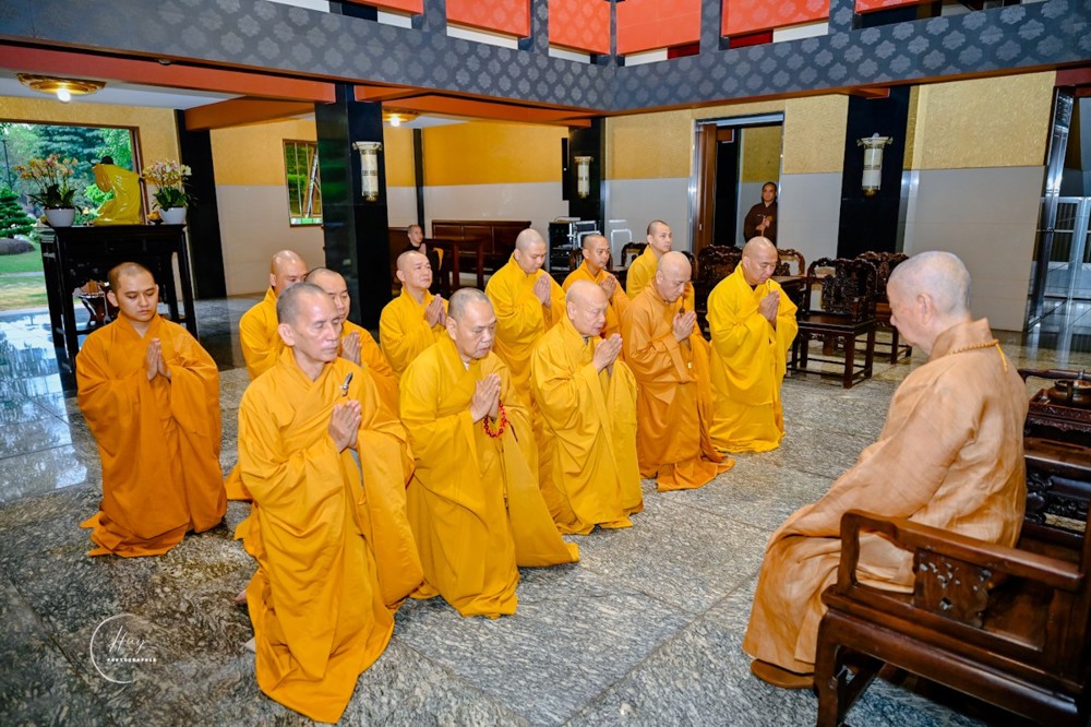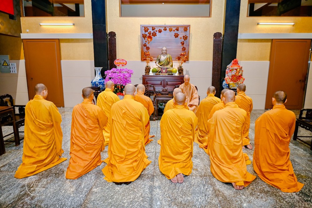 Tại chùa Huê Nghiêm, chư tôn đức Ban Thường trực Hội đồng Trị sự đối trước tôn dung Đức Pháp chủ, Trưởng lão Hòa thượng Chủ tịch dâng lời khánh tuế đạo thọ miên trường, tuệ đăng thường chiếu, để mãi là bậc tòng lâm thạch trụ lãnh đạo về đạo pháp và giới luật, soi đường cho Giáo hội và Tăng Ni, Phật tử xiển dương chánh pháp.