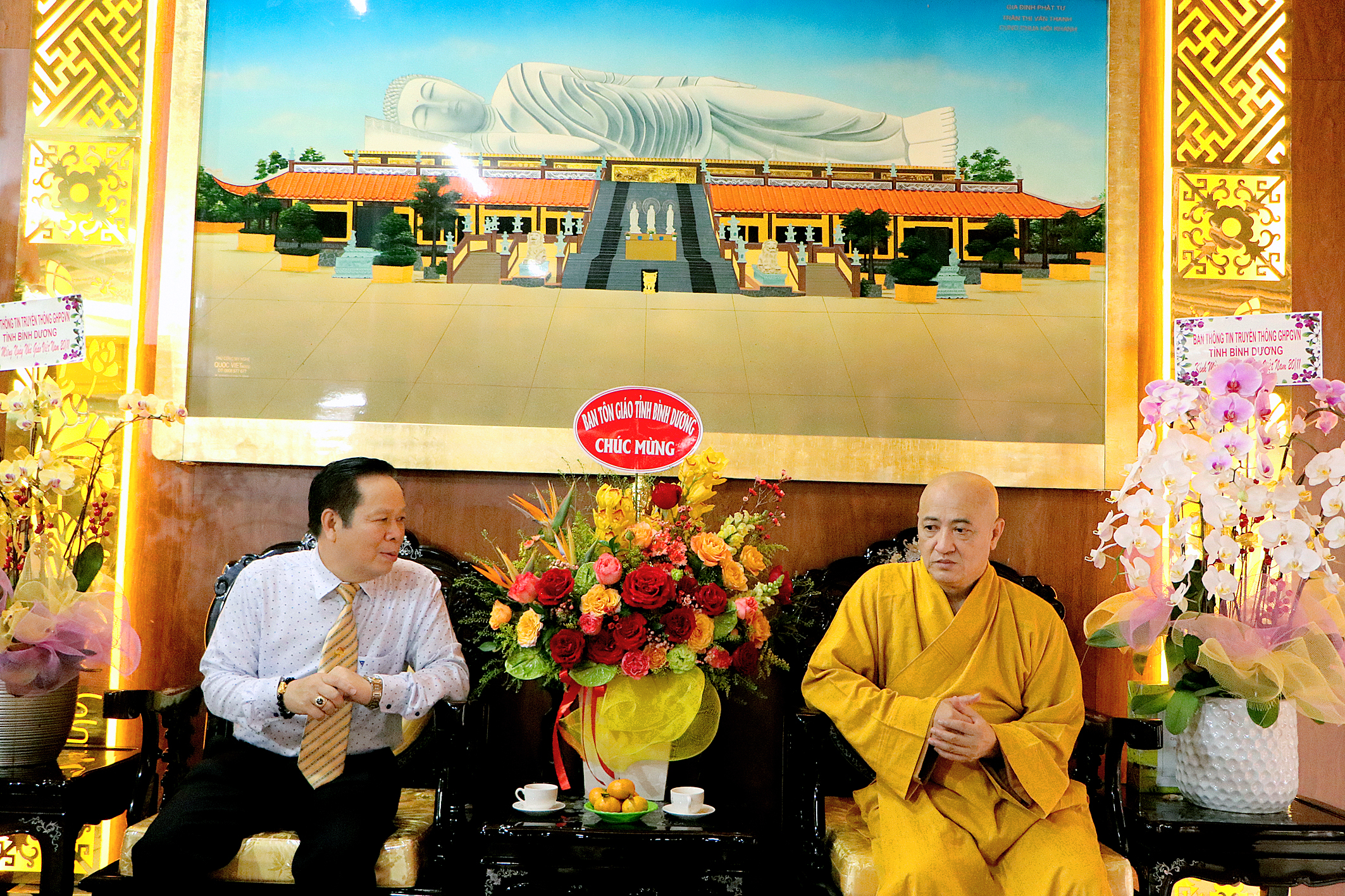 Trong buổi đến thăm, Ông Trần Đức Thịnh - Phó Giám đốc Sở Nội vụ, Trưởng ban Tôn giáo tỉnh Bình Dương bày tỏ sự vui mừng trước thành công của Đại hội Đại biểu Phật giáo Toàn quốc lần thứ IX, nhiệm kỳ 2022-2027 được tổ chức tại Thủ đô Hà Nội. Qua đó, Ông Trần Đức Thịnh trân trọng chúc mừng Hòa thượng Thích Huệ Thông vừa được Đại hội suy cử vào vai trò Phó Chủ tịch HĐTS, Trưởng ban Pháp chế Trung ương Giáo hội Phật giáo Việt Nam và chư Tôn đức Tăng Ni Phật giáo tỉnh Bình Dương được tấn phong hàng Giáo phẩm Hòa thượng, Thượng tọa, Ni trưởng, Ni sư.