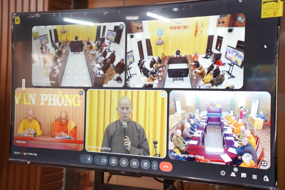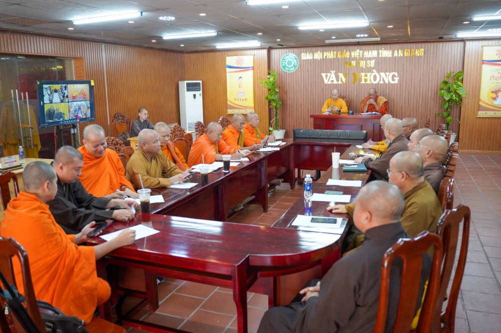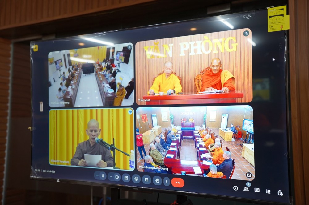 PSO - Sáng ngày 10/10/2025, Ban Thường trực Ban Trị sự GHPGVN tỉnh An Giang đã tổ chức phiên họp trực tuyến nhằm triển khai các công tác Phật sự trọng tâm trong tháng 10. Cuộc họp được kết nối giữa Văn phòng 1 – chùa Tam Bảo (phường Rạch Giá) và Văn phòng 2 – chùa Quảng Đức (phường Long Xuyên).