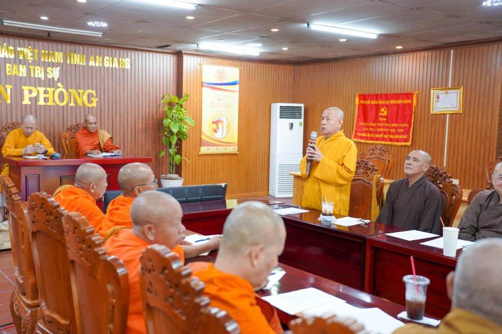 Phiên họp diễn ra dưới sự chủ trì của Hòa thượng Thích Thiện Thống, Phó Chủ tịch HĐTS, Trưởng ban Trị sự GHPGVN tỉnh An Giang. Tham dự phiên họp có Thượng tọa Thích Minh Nhẫn, Ủy viên Thư ký HĐTS, Phó Văn phòng 2 TƯGH, Phó Trưởng ban Thường trực Ban Trị sự GHPGVN tỉnh; Thượng tọa Thích Viên Quang, Phó Trưởng ban Thường trực Ban Trị sự GHPGVN tỉnh; Hòa thượng Danh Lân, Ủy viên HĐTS, Phó ban Trị sự GHPGVN tỉnh đặc trách Nam tông Khmer; cùng chư Tôn đức Tăng Ni Ban Thường trực Ban Trị sự GHPGVN tỉnh An Giang.