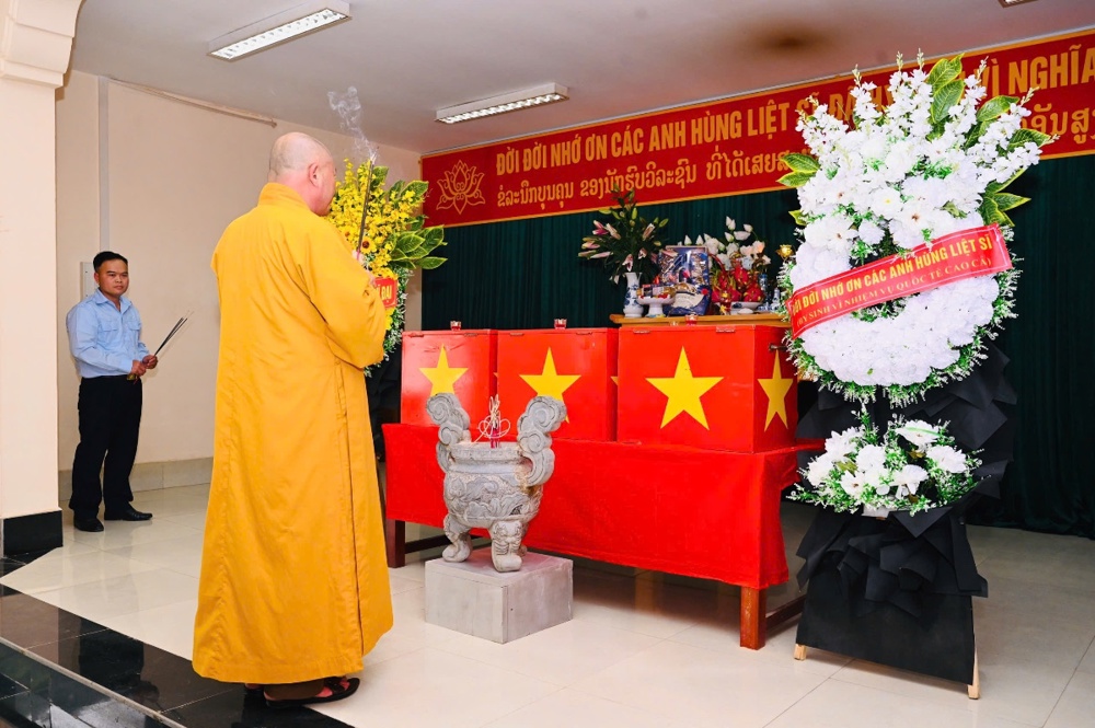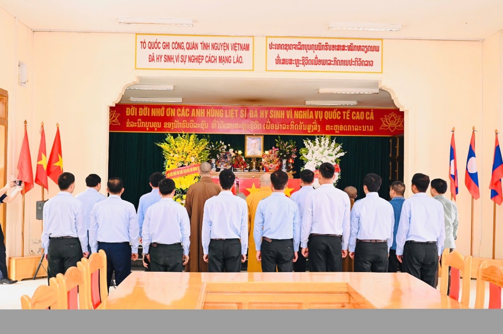 Cùng ngày, đoàn đã đến thăm, chúc mừng năm mới, tặng quà đến chư Tôn đức Tăng chùa Ông Từ Si Bun Hương; Hội Quy tập hài cốt liệt sĩ tỉnh Thanh Hóa và dâng hương tưởng niệm, tri ân các Anh hùng liệt sĩ, quân tình nguyện Việt Nam đã hy sinh, vì sự nghiệp cách mạng Lào.