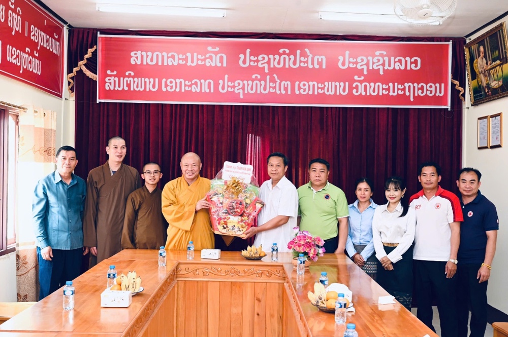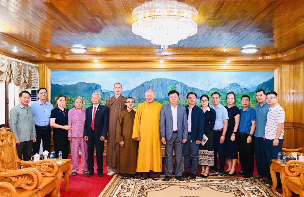 PSO - Sáng ngày 13/4/2026, trong không khí hân hoan đón Tết cổ truyền Bunpimay của nhân dân các bộ tộc Lào, đoàn Ban Trị sự Giáo hội Phật giáo Việt Nam tỉnh Thanh Hoá đã tổ chức chuyến thăm, tặng quà và chúc mừng năm mới tới lãnh đạo chính quyền tỉnh Hủa Phăn cùng đại diện các sở, ban, ngành của tỉnh.