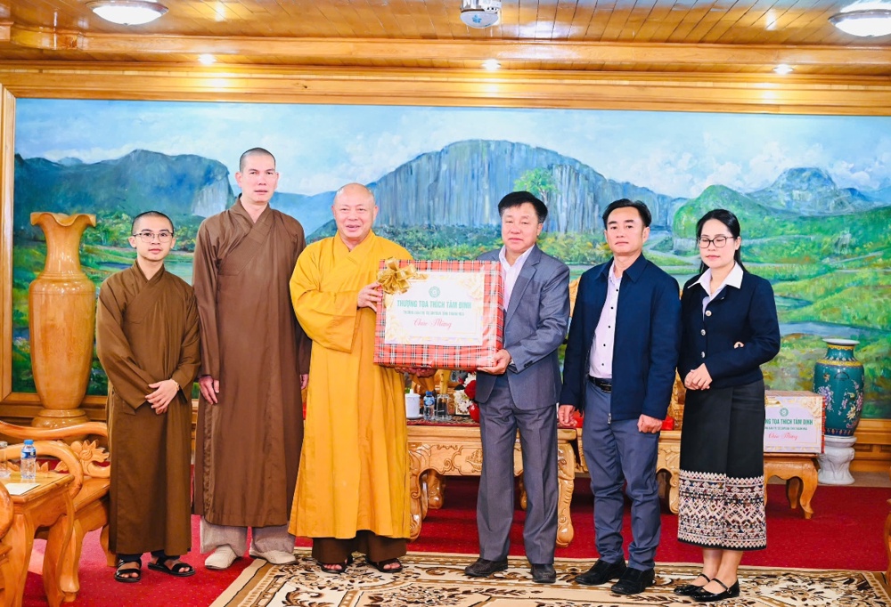 Đoàn do Thượng toạ Thích Tâm Định - Uỷ viên HĐTS, Trưởng BTS Phật giáo tỉnh, chư Tôn đức Tăng, quý Phật tử tháp tùng mang theo những phần quà ý nghĩa cùng tình cảm chân thành, thể hiện tinh thần từ bi, đoàn kết và gắn bó giữa hai địa phương có mối quan hệ hữu nghị truyền thống lâu đời.