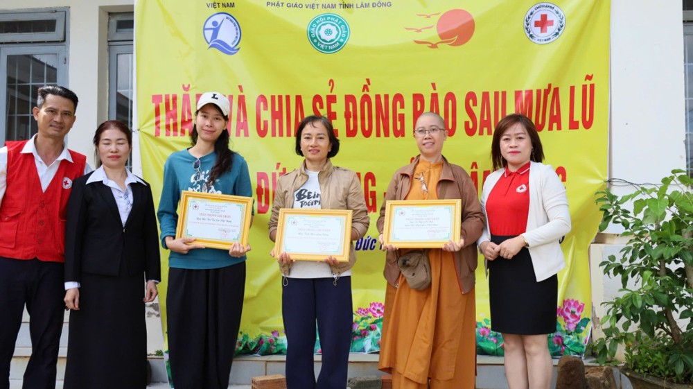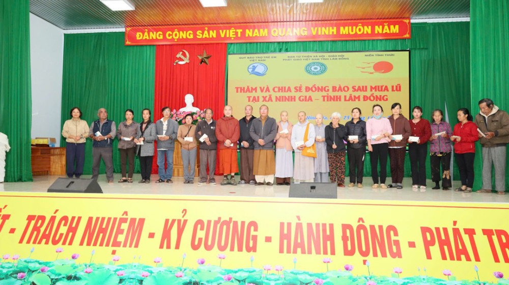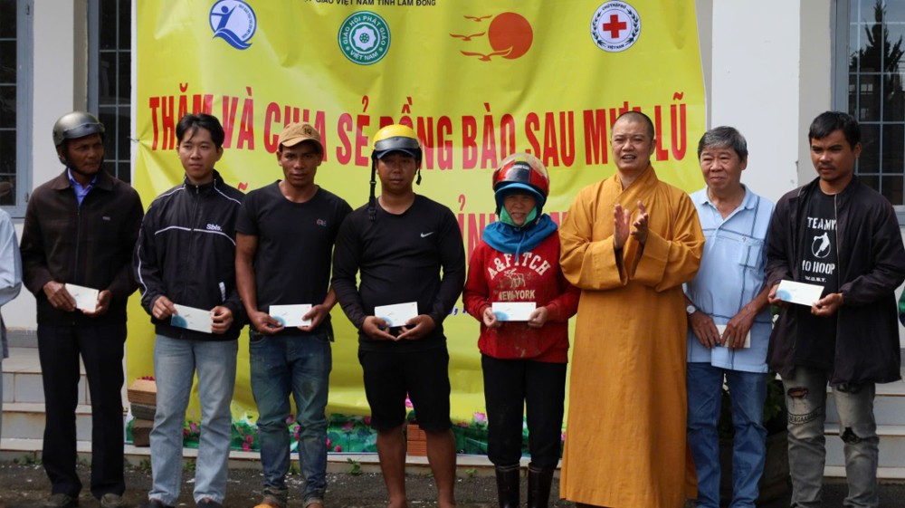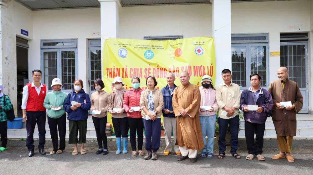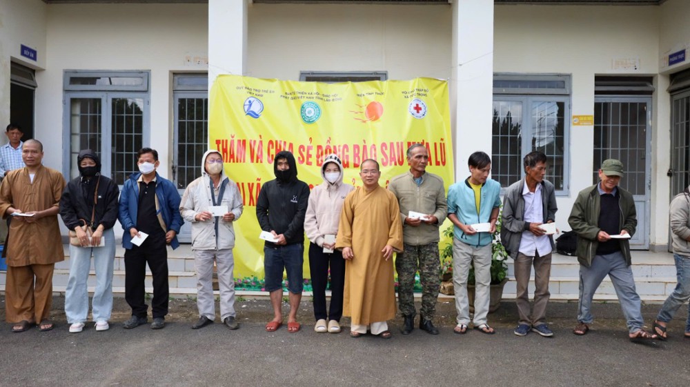 Trên hành trình cứu trợ tại tỉnh Lâm Đồng, đoàn còn đến thăm các tịnh thất nhỏ của quý sư cô đang tu tập và bị ảnh hưởng trong cơn bão vừa qua, cúng dường tịnh tài để sửa sang nơi tu học, giúp Phật tử sớm ổn định sinh hoạt.