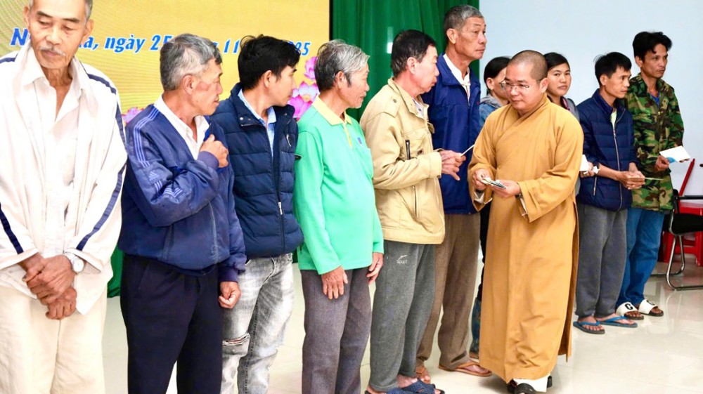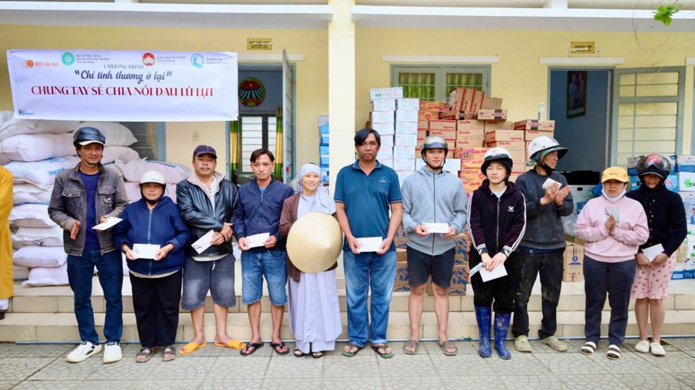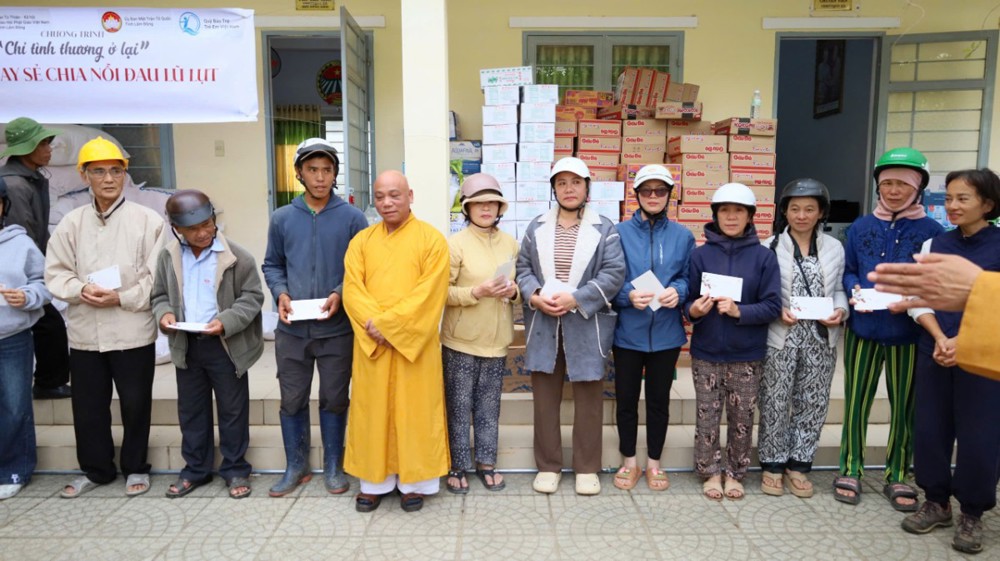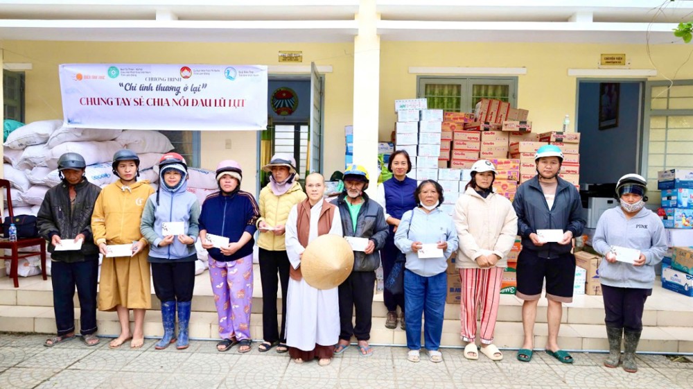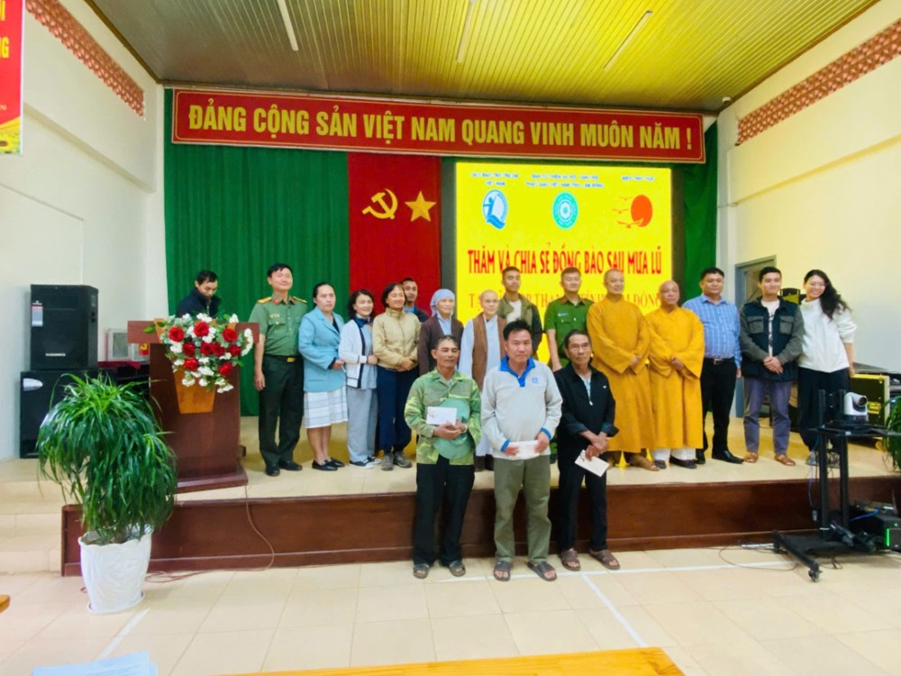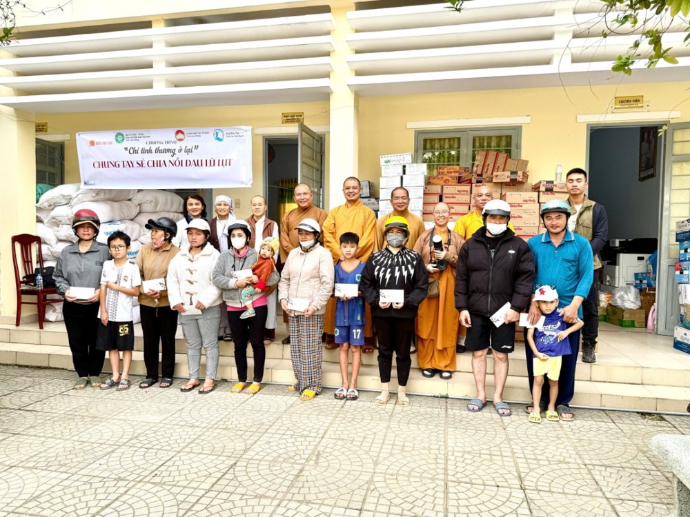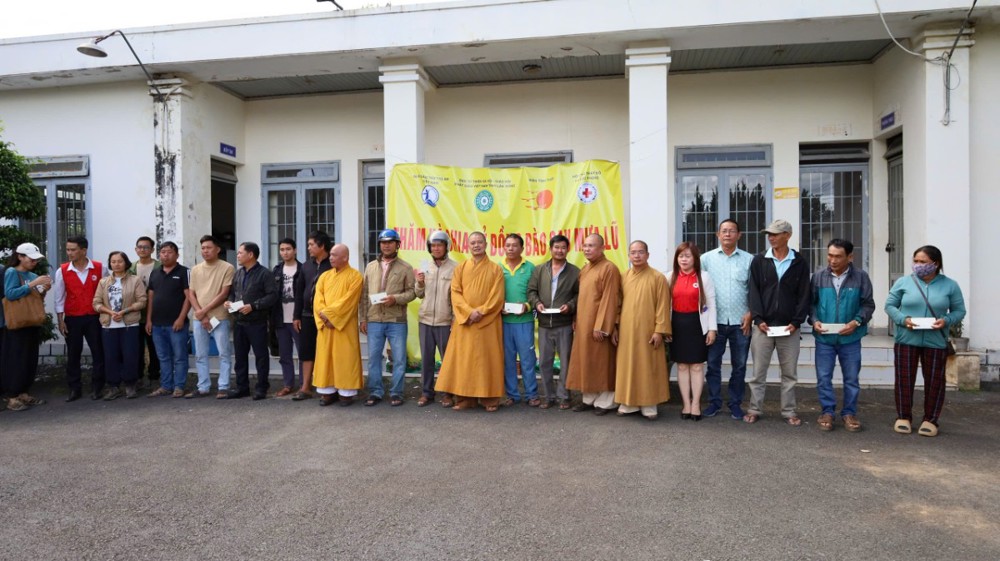 Tổng cộng, đoàn đã trao 450 phần quà và hỗ trợ 25 hộ thiệt hại nặng, đồng thời thăm viếng, cúng dường các tịnh thất bị hư hại do mưa bão.