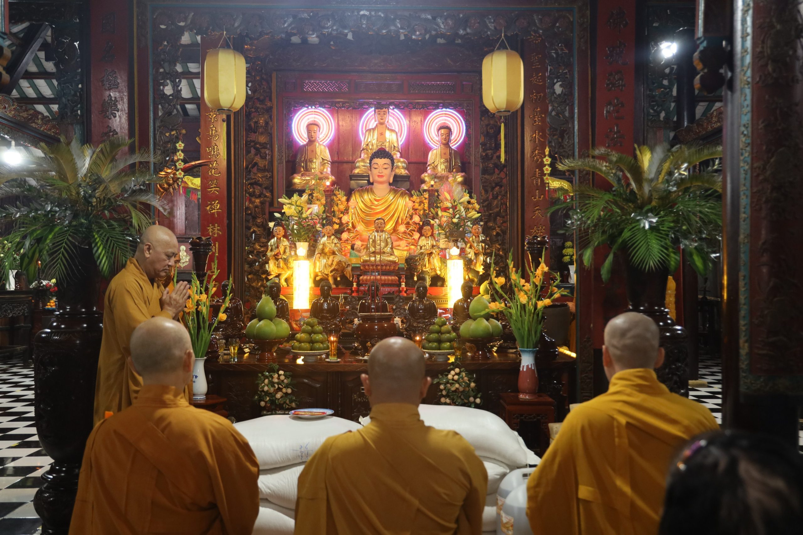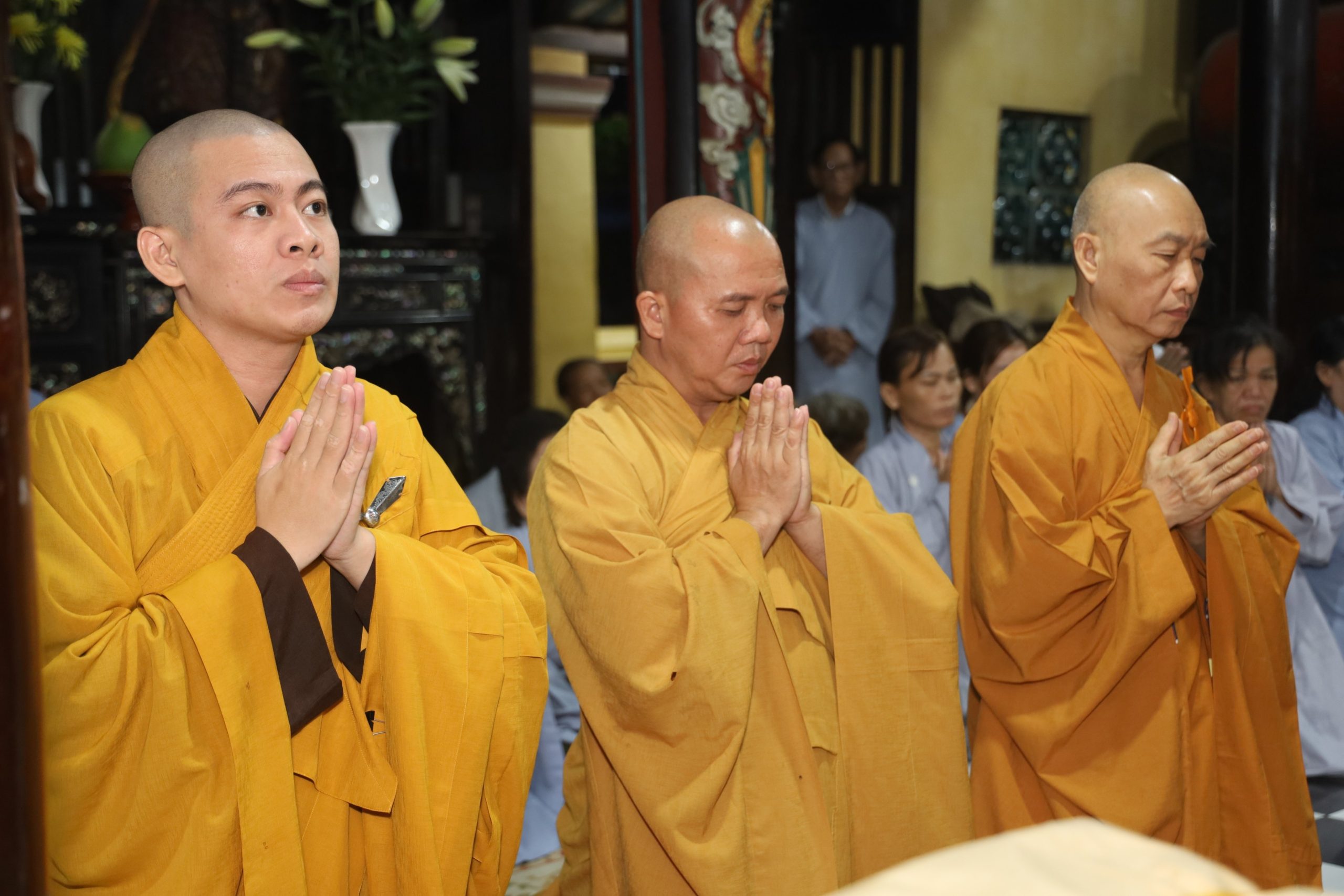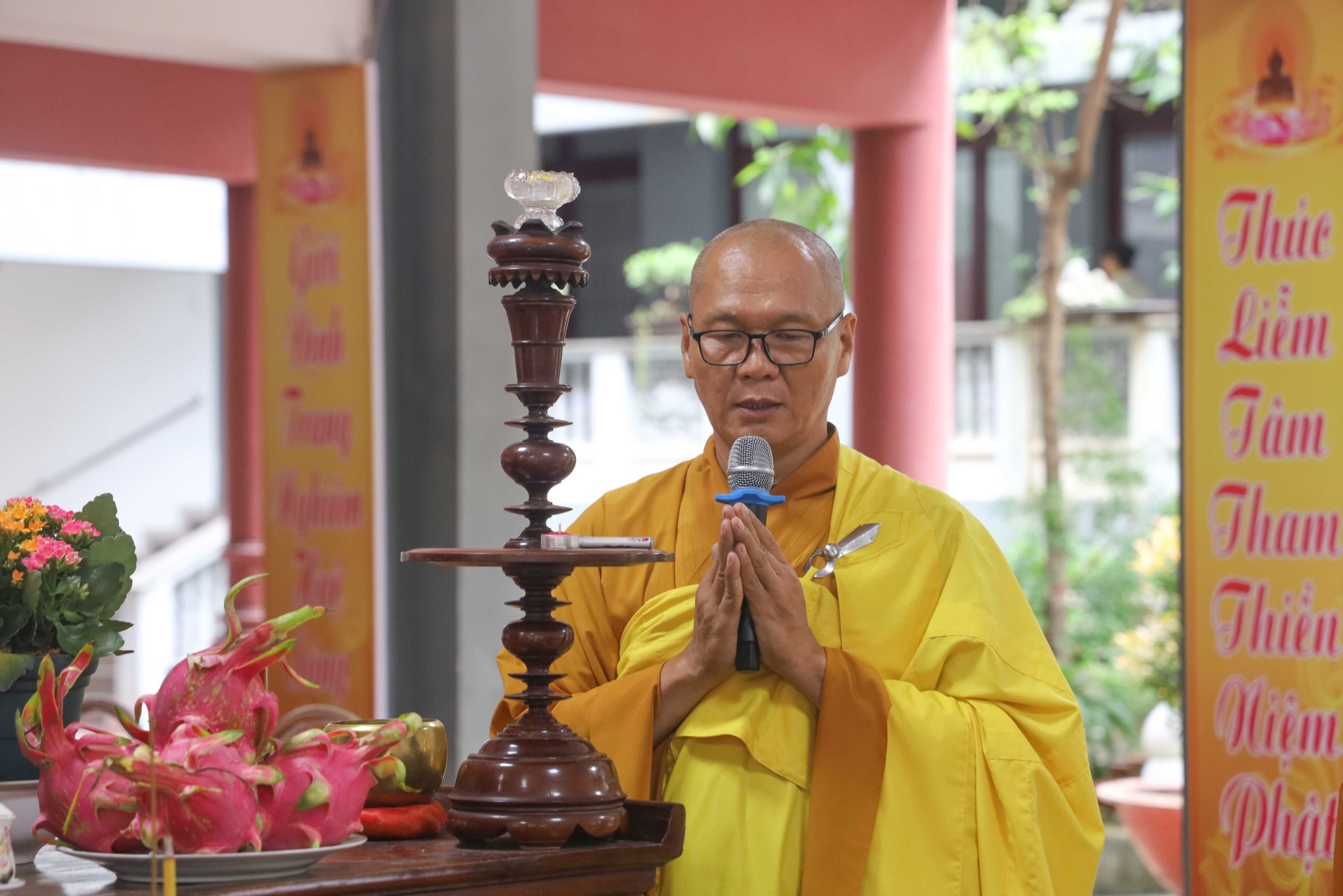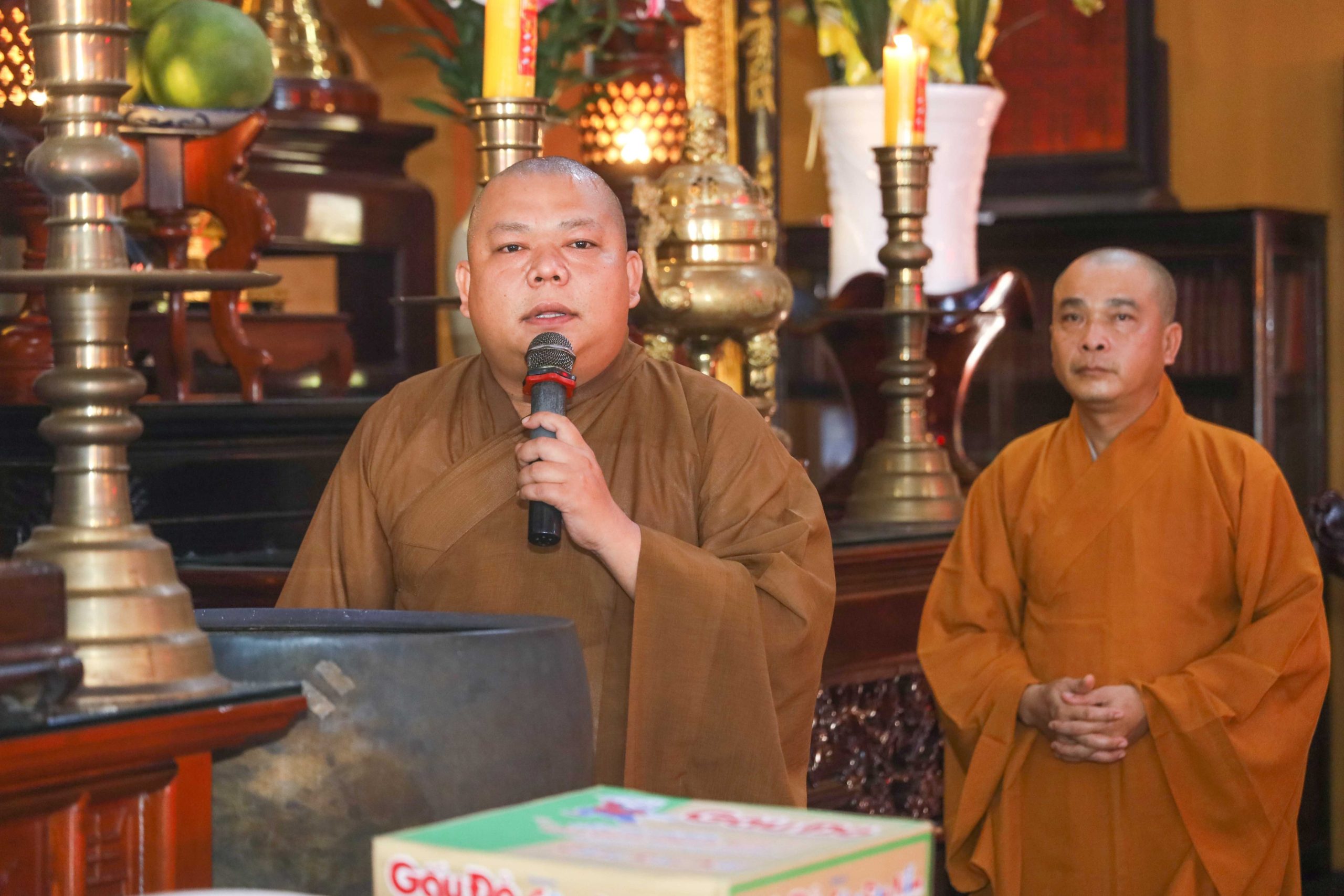 Tháp tùng có TT. Thích Giác Quang - Thành viên tổ Công nghệ thông tin VP2 TƯGH, Trưởng Ban Nghi lễ Phật giáo huyện Bình Chánh, trụ trì chùa Từ Quang; ĐĐ. Thích Như Phát - Thành viên tổ Công nghệ thông tin VP2 TƯGH, Chánh Thư ký Ban TT-XH PG huyện, Phó trụ trì Tu viện Kim Cang; NS. Thích Nữ Huệ Bảo - UVTT Ban TT-XH PG huyện, Trụ trì chùa Liên Nghiêm; CTY TNHH TM-SX Tàu Hủ Tươi Nắng Mai Phát, cùng chư Tôn đức Tăng Ni, thành viên Ban TT-XH, Ban Nghi lễ, quý Phật tử đi cùng.