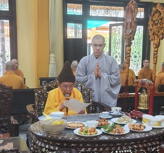 Tại đây đạo tràng tứ chúng – phái đoàn được đón nhận đạo từ pháp âm cao quý của Đức Trưởng lão Hoà thượng Phó Pháp chủ GHPGVN thượng Đức hạ Nghiệp.