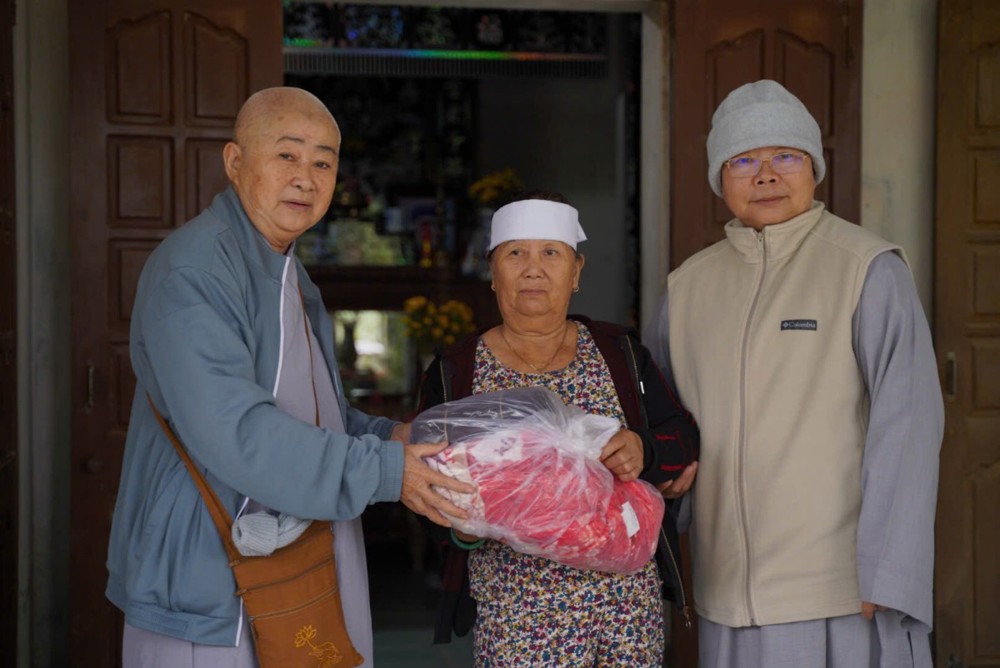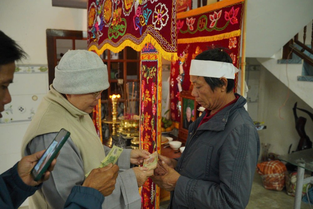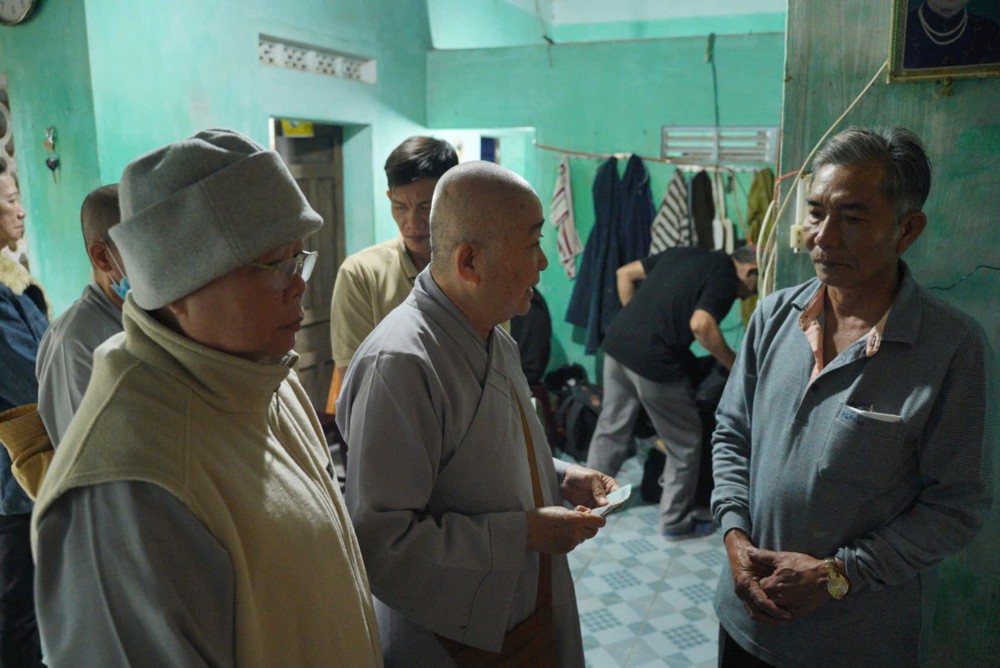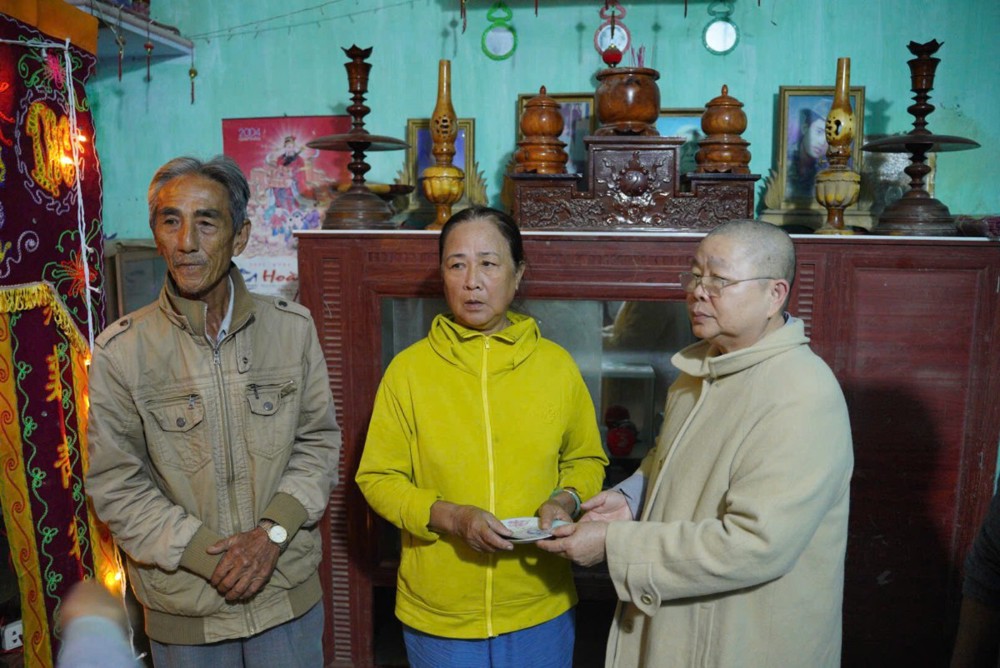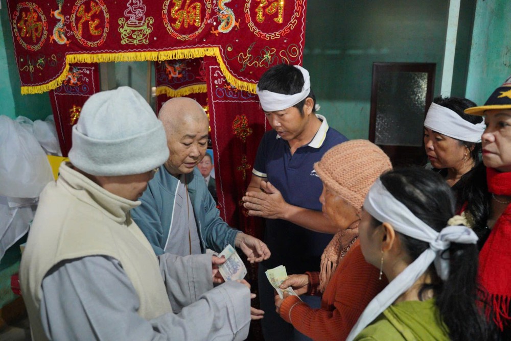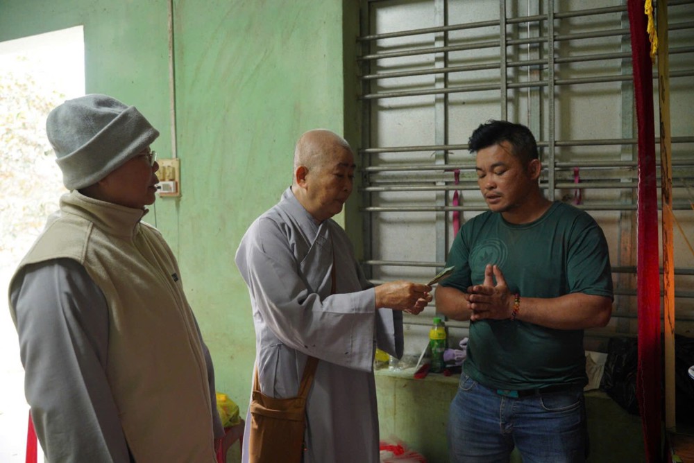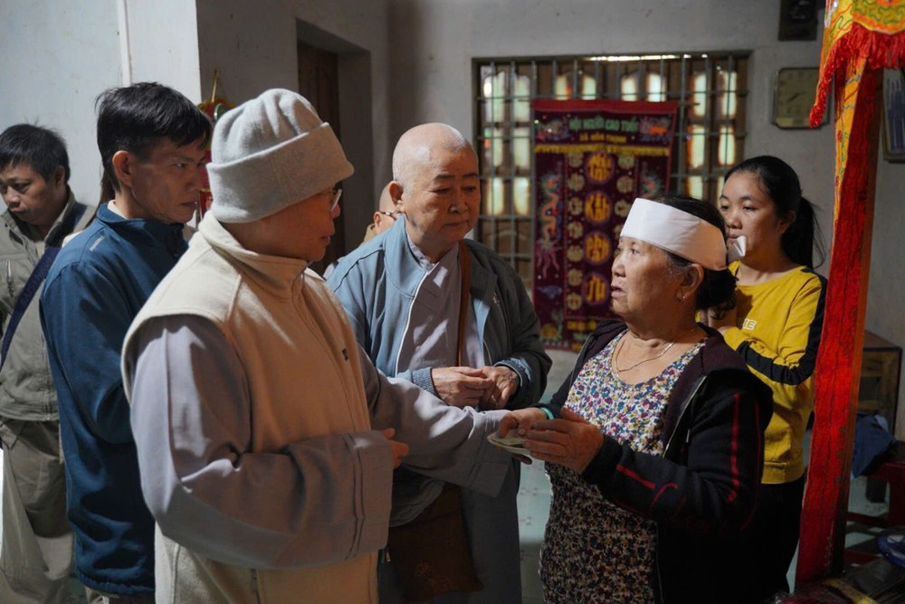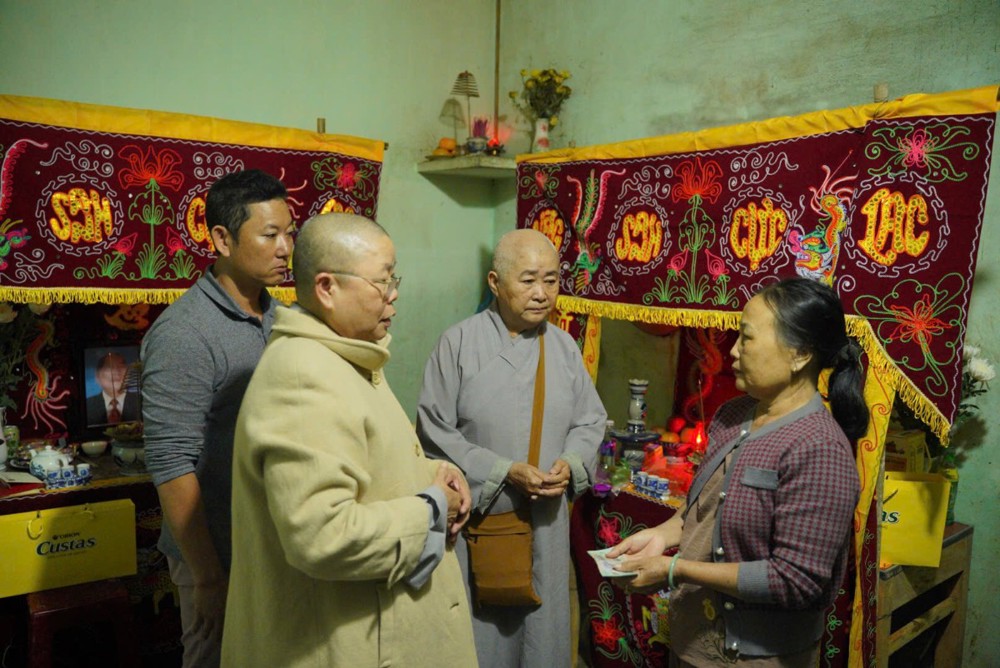 Bên cạnh đó, đoàn cũng đã trở về các phường, xã của tỉnh Đắk Lắk thăm và kính viếng 47 hộ gia đình có người thân không may qua đời trong đợt lũ lụt vừa qua. Với tấm lòng cảm thông sâu sắc, đoàn đã dâng hương tưởng niệm, cầu nguyện cho hương linh các nạn nhân được siêu thoát. Mỗi gia đình được đoàn gửi tặng một áo ấm, chăn mền cùng một phần tịnh tài hỗ trợ chi phí hương khói, như lời chia sẻ đầy nhân ái đối với những mất mát không thể bù đắp. Hoạt động này cũng thể hiện rõ tinh thần từ bi của Phật giáo, luôn đồng hành và sẻ chia với những hoàn cảnh kém may mắn trong những thời điểm khó khăn nhất.