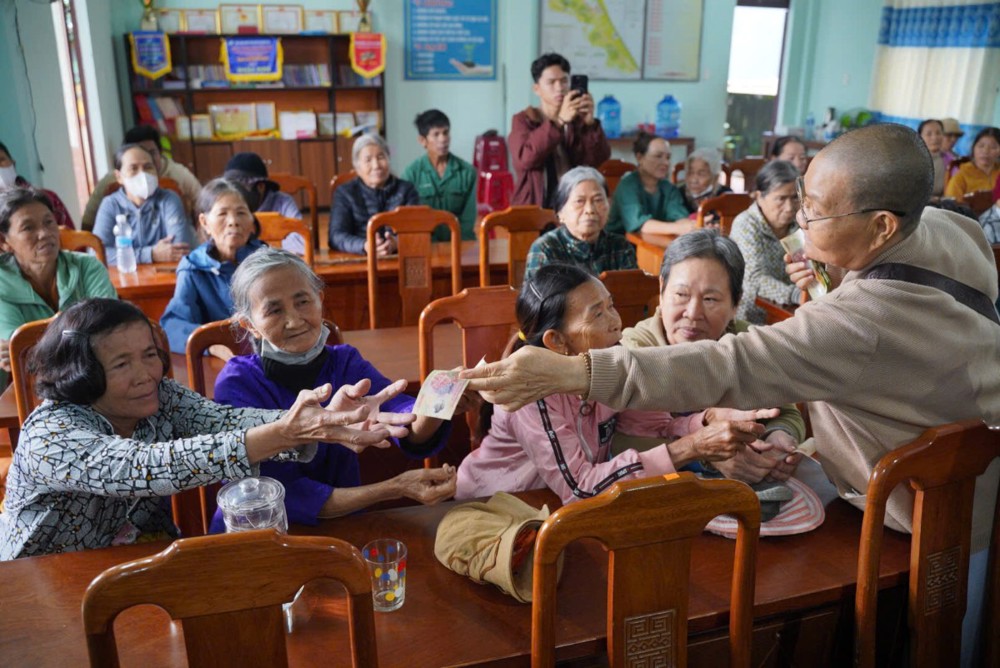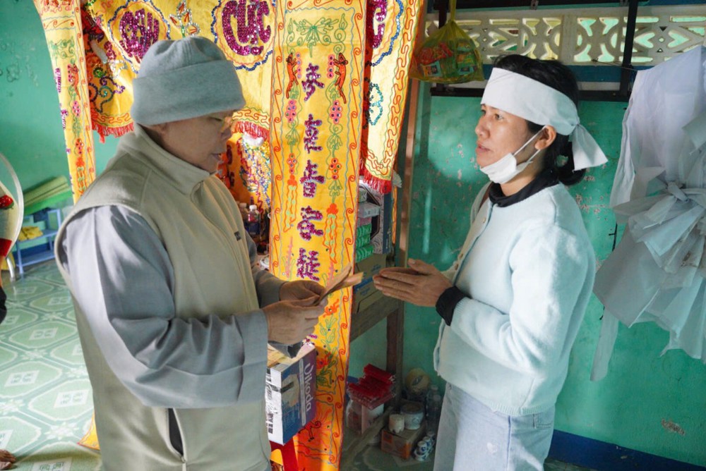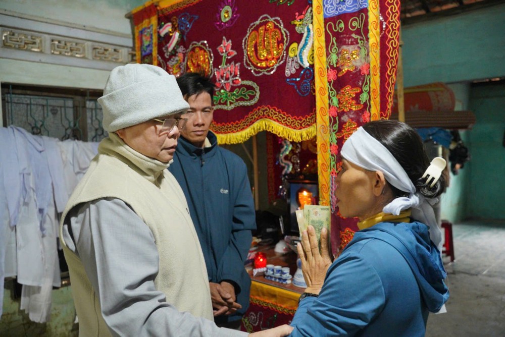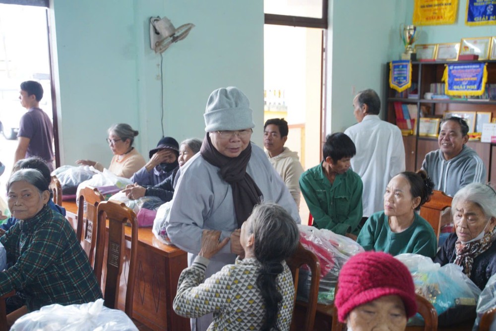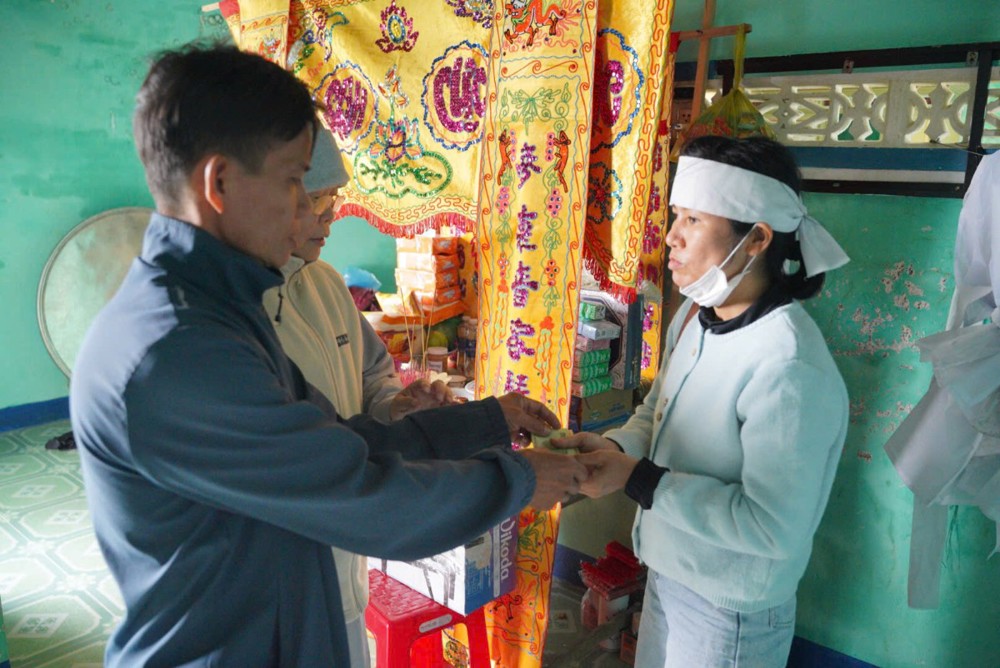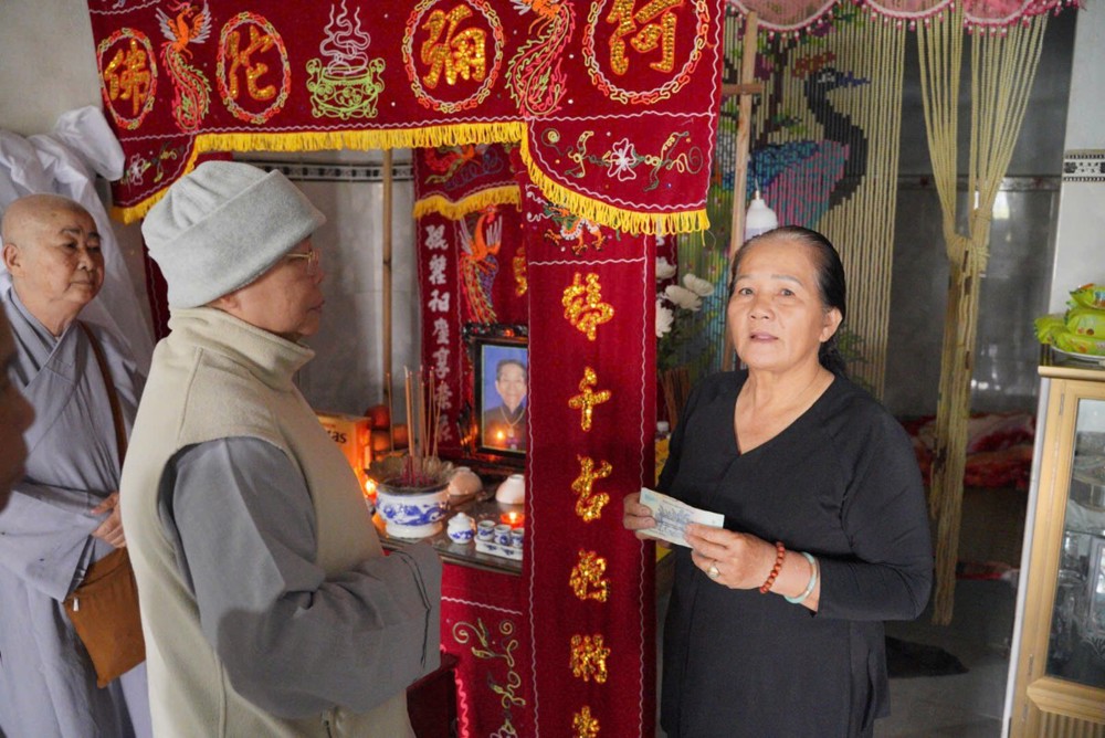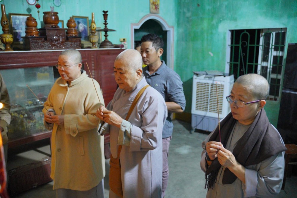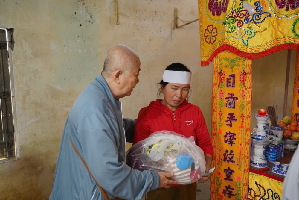 Bên cạnh đó, đoàn cũng đã trở về các phường, xã của tỉnh Đắk Lắk thăm và kính viếng 47 hộ gia đình có người thân không may qua đời trong đợt lũ lụt vừa qua. Với tấm lòng cảm thông sâu sắc, đoàn đã dâng hương tưởng niệm, cầu nguyện cho hương linh các nạn nhân được siêu thoát. Mỗi gia đình được đoàn gửi tặng một áo ấm, chăn mền cùng một phần tịnh tài hỗ trợ chi phí hương khói, như lời chia sẻ đầy nhân ái đối với những mất mát không thể bù đắp. Hoạt động này cũng thể hiện rõ tinh thần từ bi của Phật giáo, luôn đồng hành và sẻ chia với những hoàn cảnh kém may mắn trong những thời điểm khó khăn nhất.