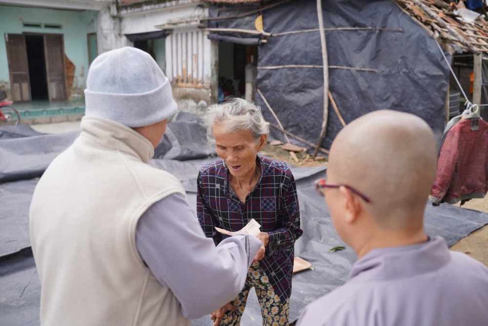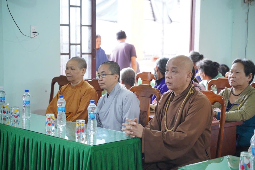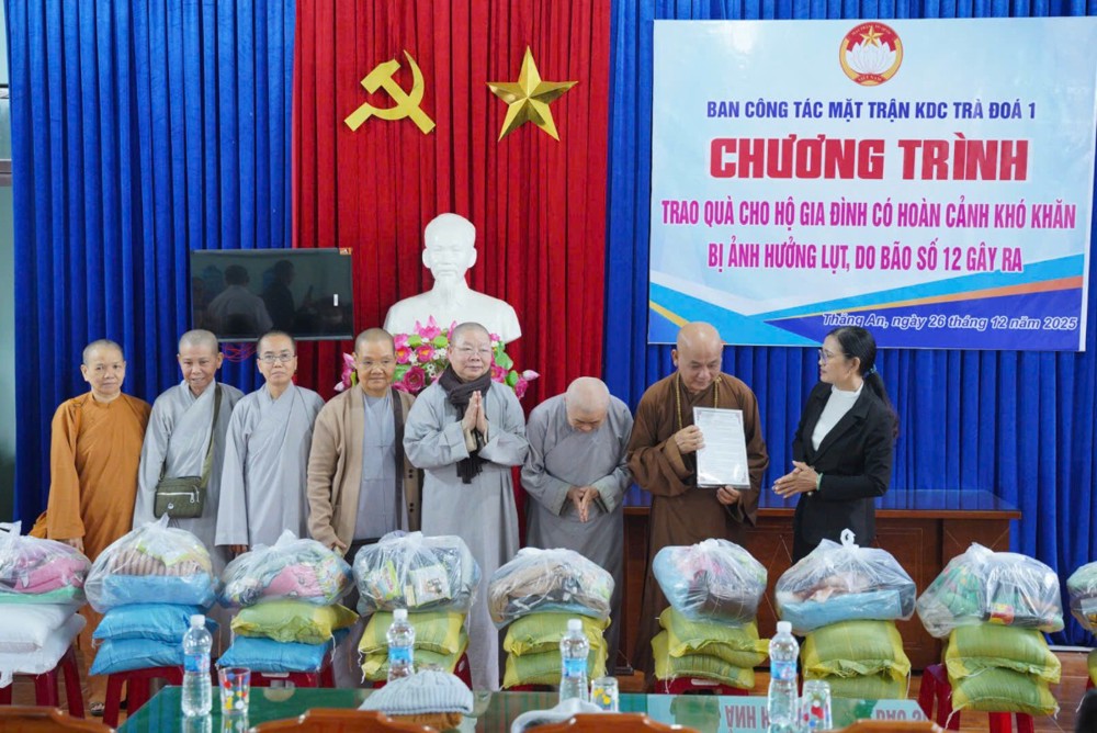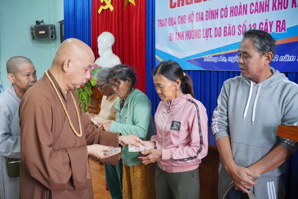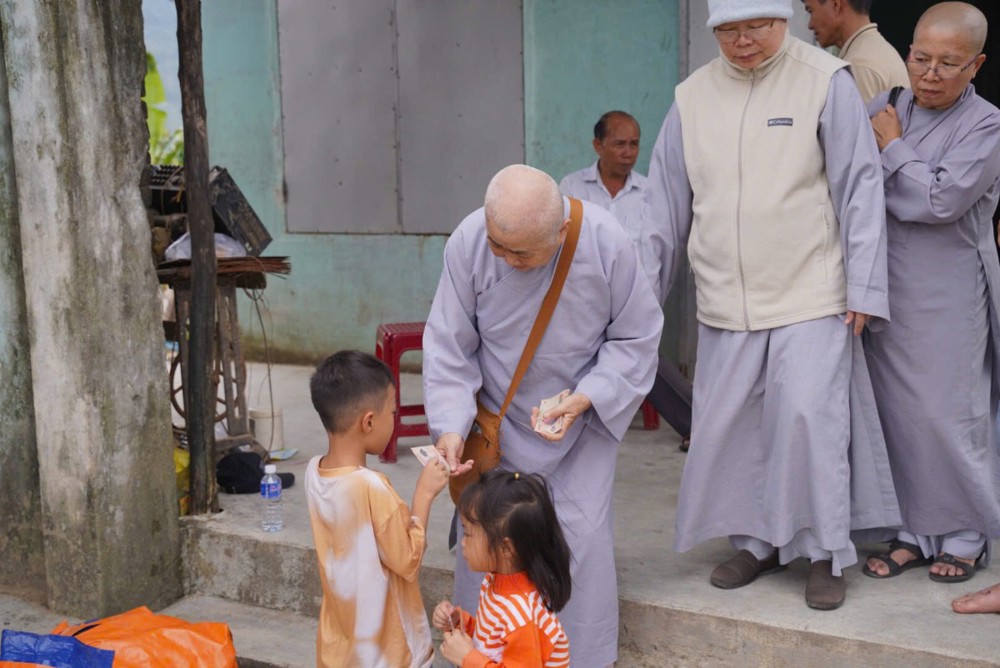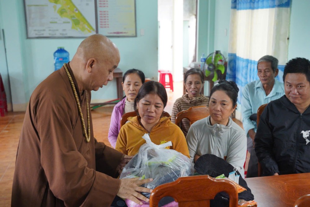 Phát biểu tại buổi trao quà, Thượng tọa gửi lời thăm hỏi ân cần và chia sẻ sâu sắc đến bà con vùng lũ, động viên mọi người giữ vững tinh thần trước những mất mát do thiên tai gây ra. Thượng tọa bày tỏ niềm cảm thông đối với những khó khăn mà từng hộ dân đang đối diện, đồng thời khuyến tấn bà con chăm lo sức khỏe, đoàn kết hỗ trợ lẫn nhau để sớm vượt qua giai đoạn khó khăn này.