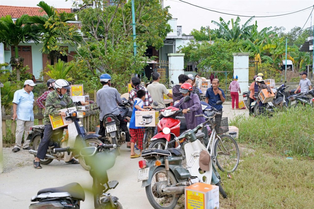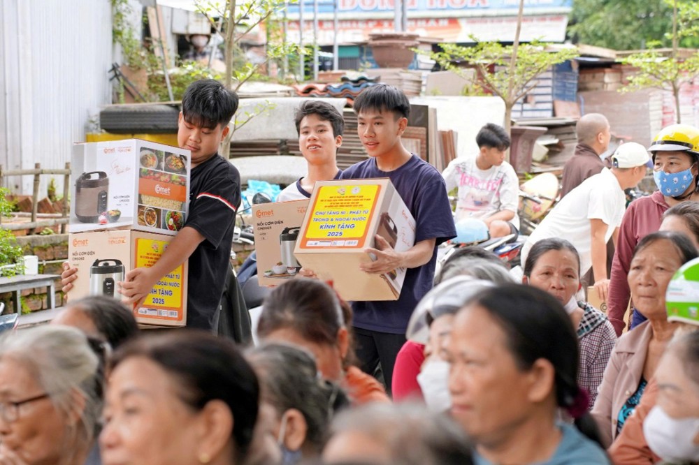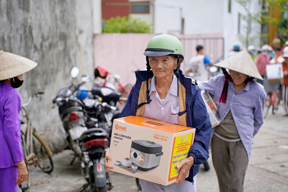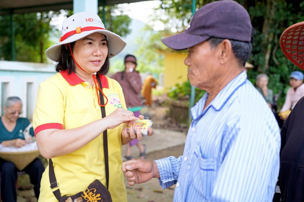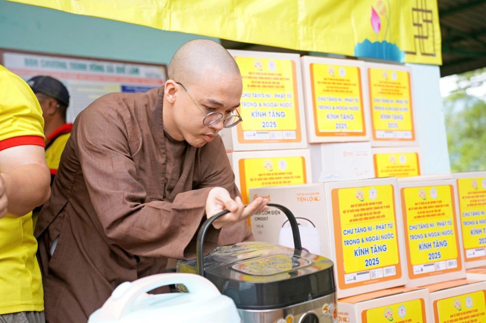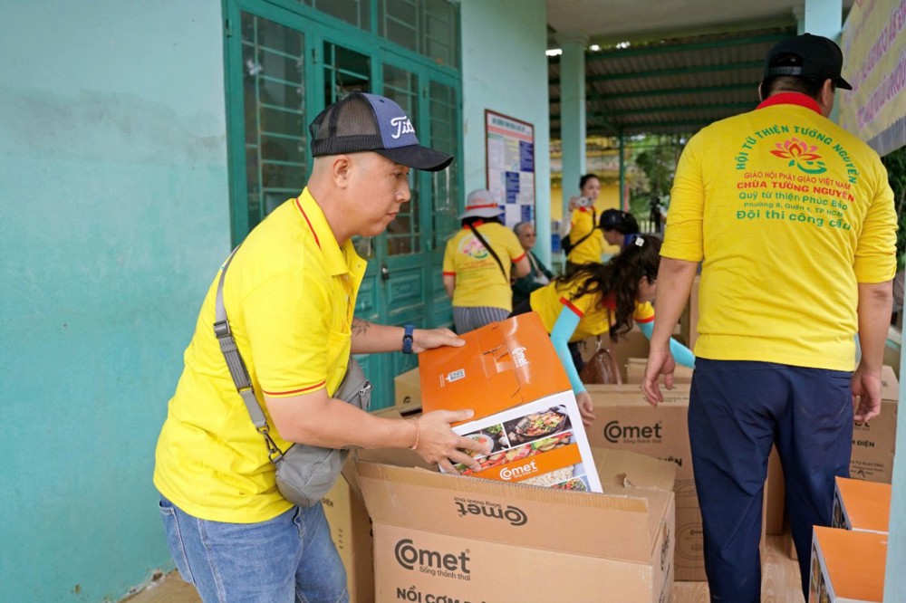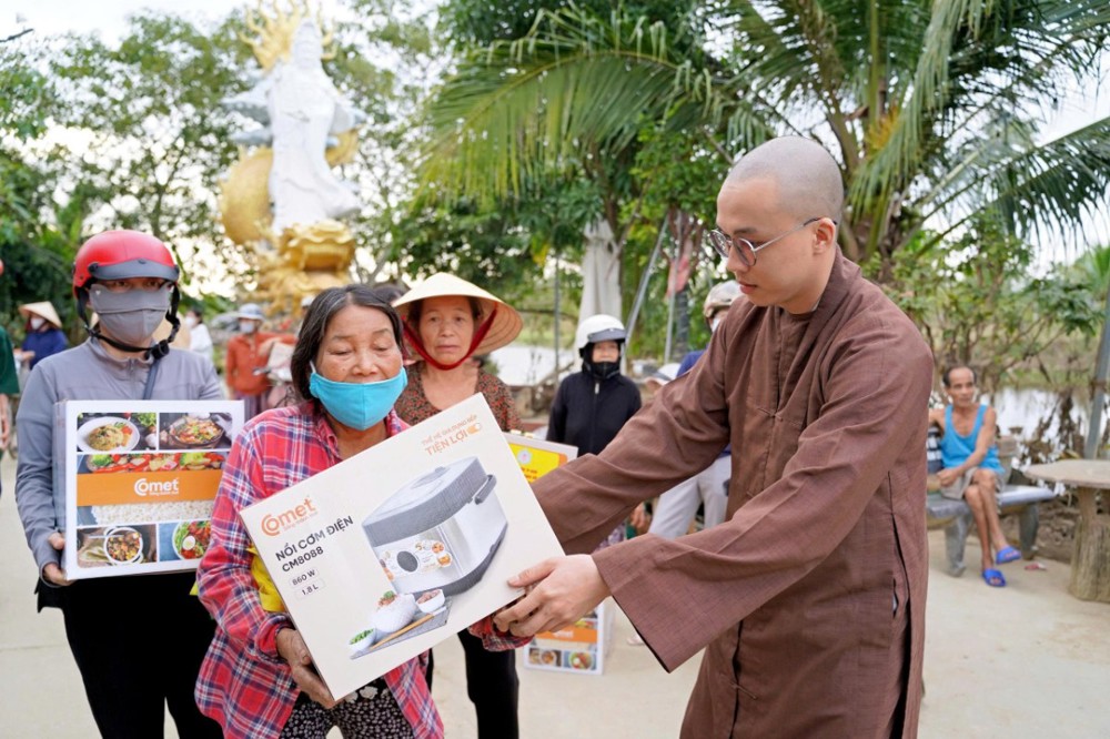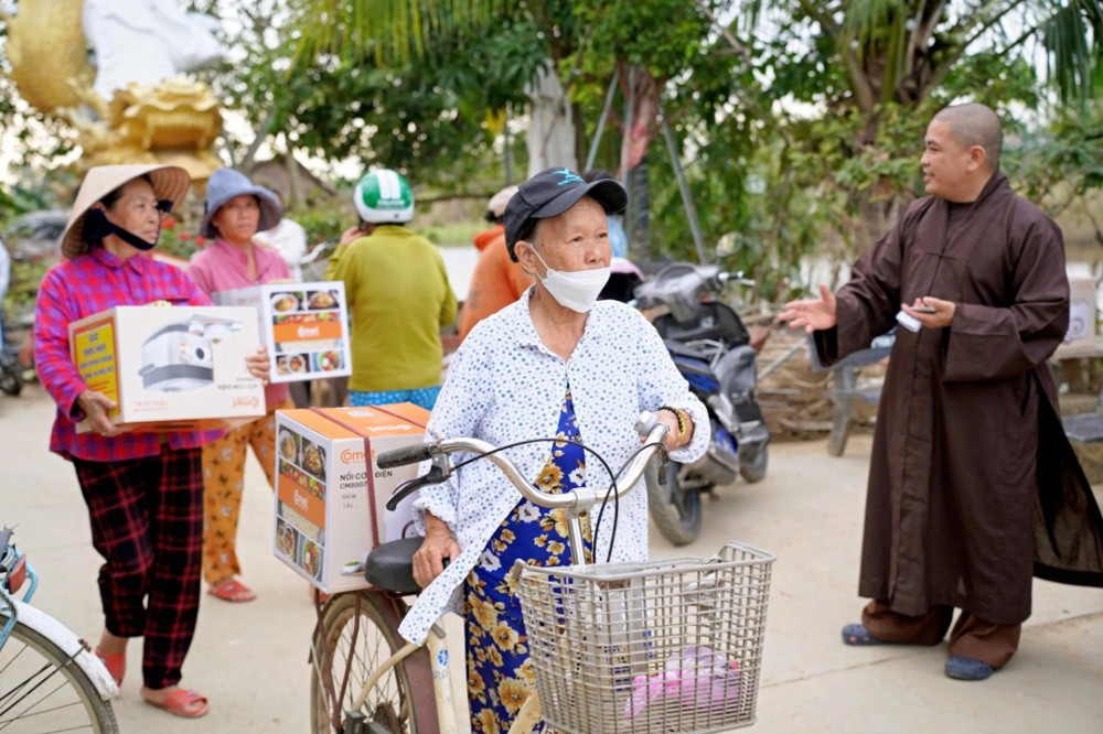 Tại Đà Nẵng và các xã lân cận, đoàn đã trao 1.500 phần quà tại xã Quế Phước, chùa Liên Hương (xã Quế Xuân 1), chùa Thạnh Bình (xã An Hương) và chùa Khánh An (xã Duy Xuyên). Mỗi phần quà gồm một nồi cơm điện, chăn đắp và dầu xoa, tổng kinh phí thực hiện hơn 1,5 tỷ đồng – tất cả được đóng góp từ tấm lòng từ bi của Tăng Ni, Phật tử, mạnh thường quân trong và ngoài nước.