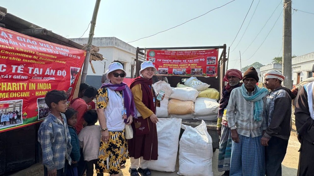 PSO - Nhân dịp chương trình Hành hương – Từ thiện Ấn Độ, diễn ra từ ngày 09/01 đến 17/01/2026, đoàn Ban Từ thiện Xã hội Trung ương GHPGVN do Ni sư Thích Nữ Huệ Thiện – Phó Ban Từ thiện Xã hội Trung ương, Trưởng Phân ban Quản lý các cơ sở từ thiện xã hội Trung ương làm Trưởng đoàn, đã tổ chức nhiều hoạt động ý nghĩa tại miền đất Phật, kết hợp chiêm bái thánh tích và thực hiện công tác an sinh xã hội.