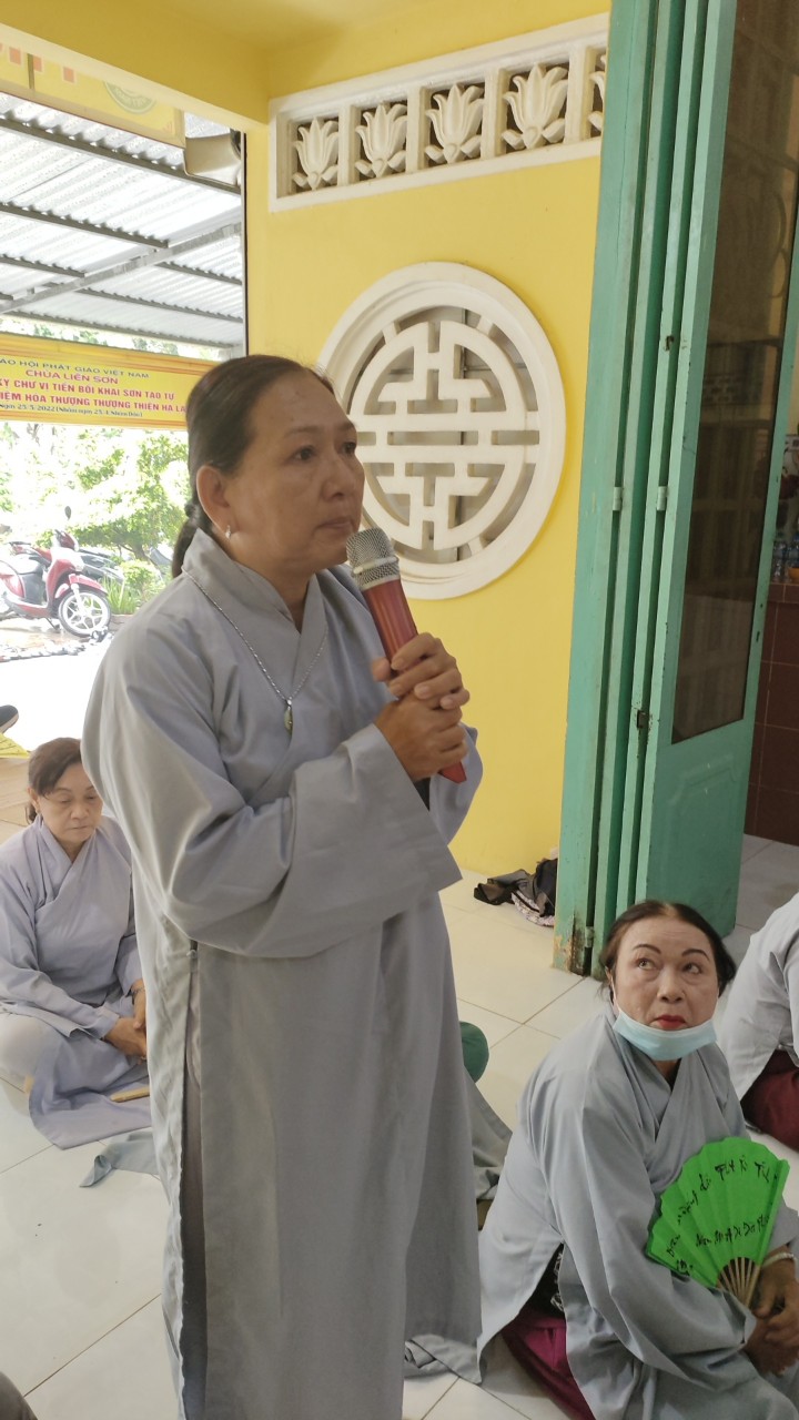 Đáp lại lời chào đón, Đại đức Thích Pháp Thông đã thay lời cho Chư Tôn đức trong đoàn cảm niệm Đại đức trụ trì đã tạo điều kiện để Ban Hướng dẫn đến thăm và tặng quà tại đạo tràng chùa Liên Sơn, Đại đức cho biết: “Trước khi dịch bệnh diễn ra thì trên toàn tỉnh có hơn 140 đạo tràng tu học, nhưng kể từ sau khi dịch bệnh được kiểm soát thì số lượng đạo tràng tu học trở lại rất ít, chỉ khoảng gần 40 đạo tràng trên toàn tỉnh. Đặc biệt, tại Tp. Bến Tre thì ngoài lớp Giáo Lý tại chùa Viên Minh đã khai giảng cách nay 02 tuần thì chỉ có chùa Liên Sơn là một trong những đạo tràng hoạt động lại sớm nhất”.