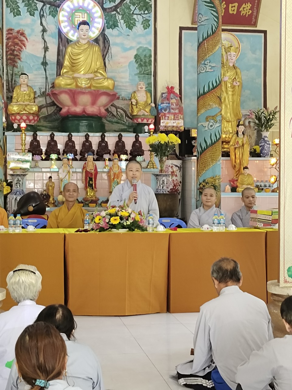 Nhân đây, Ban Hướng dẫn Phật tử tỉnh cũng trao tặng đến Đại đức trụ trì bó hoa tươi thắm nhằm để ghi nhận công đức tạo lập, duy trì và phát triển đạo tràng tới ngày hôm nay. Bên cạnh đó, để khích lệ tinh thần tu học của quý Phật tử, Ban Hướng dẫn Phật tử tỉnh cũng đã trao trặng bằng Tuyên dương công đức đến với đạo tràng. Và Chư Tôn đức cũng đã tận tay trao đến mỗi một Phật tử phần quà tinh thần, đây sẽ là động lực to lớn giúp quý Phật tử tinh tấn tu học.