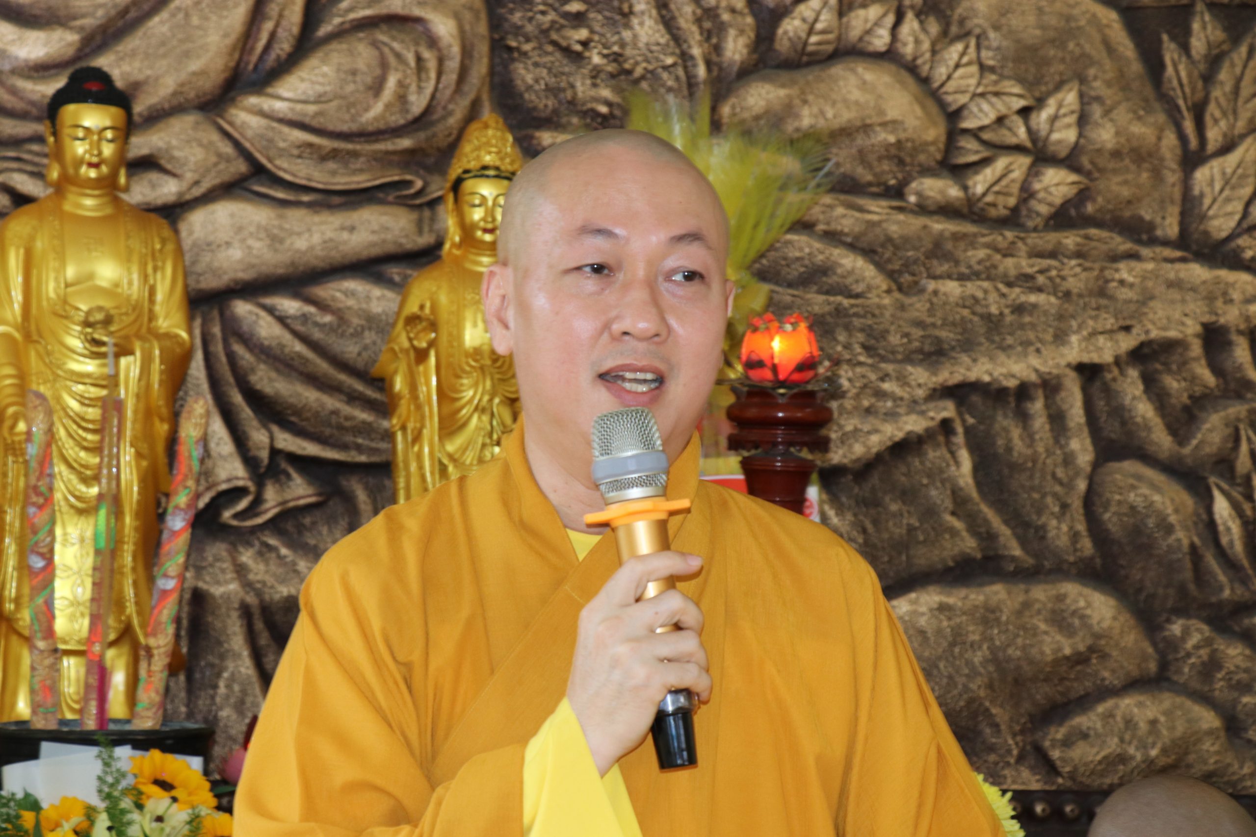 Sau lời phát biểu tiếp đoàn của TT. Thích Huệ Định, ĐĐ. Thích Pháp Thông đã phát biểu viếng thăm với lời chúc sức khỏe và lời tán thán công đức đến quý Phật tử tham dự khóa tu.