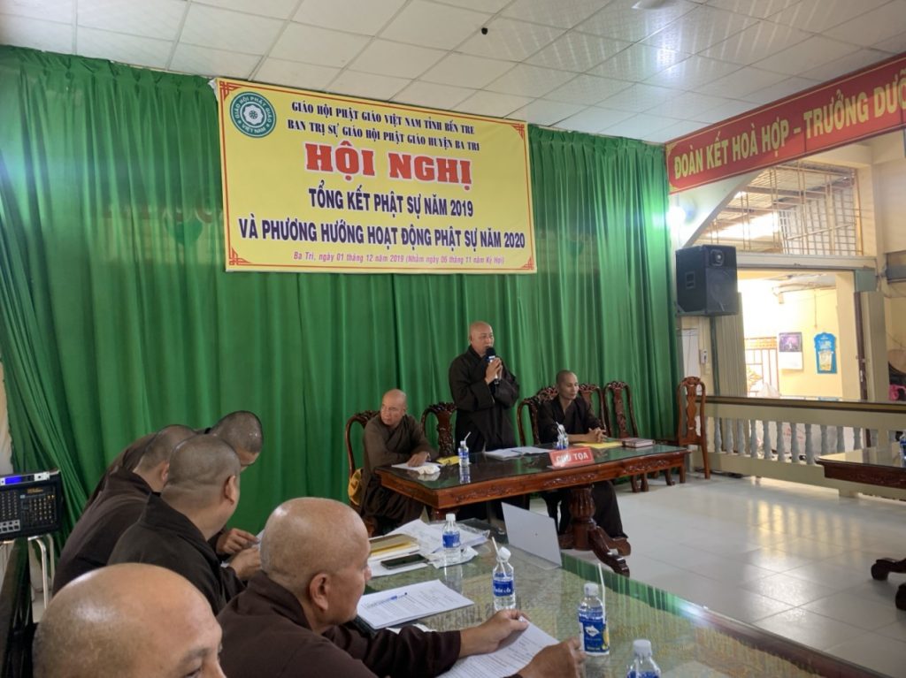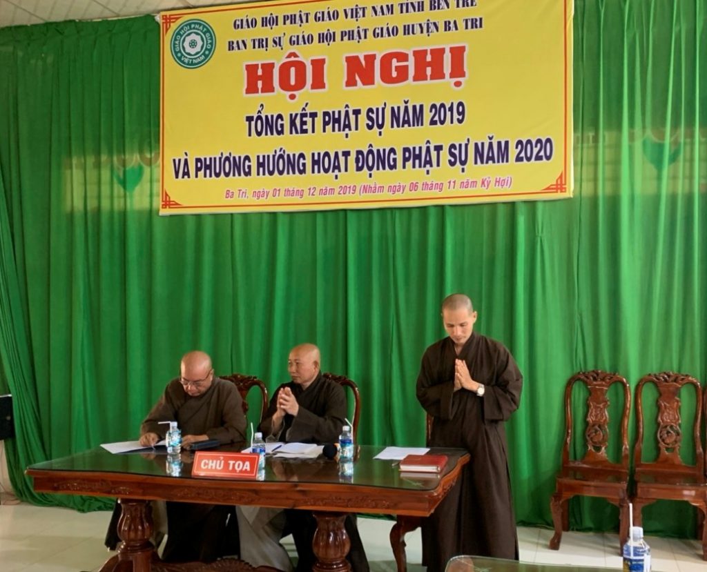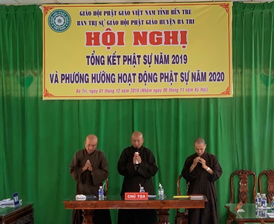 PSO - Vào lúc 8h30 ngày 01/12/2019 (nhằm ngày 06/11/Kỷ Hợi) tại văn phòng Ban Trị Sự GHPGVN huyện Ba Tri (chùa Long Phước), xã An Đức, huyện Ba Tri, tỉnh Bến Tre, Thường trực Ban Trị sự GHPGVN (BTS PG) huyện đã tổ chức Hội nghị tổng kết công tác Phật sự năm 2019 và triển khai kế hoạch hoạt động năm 2020.