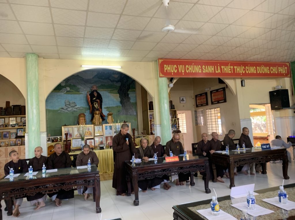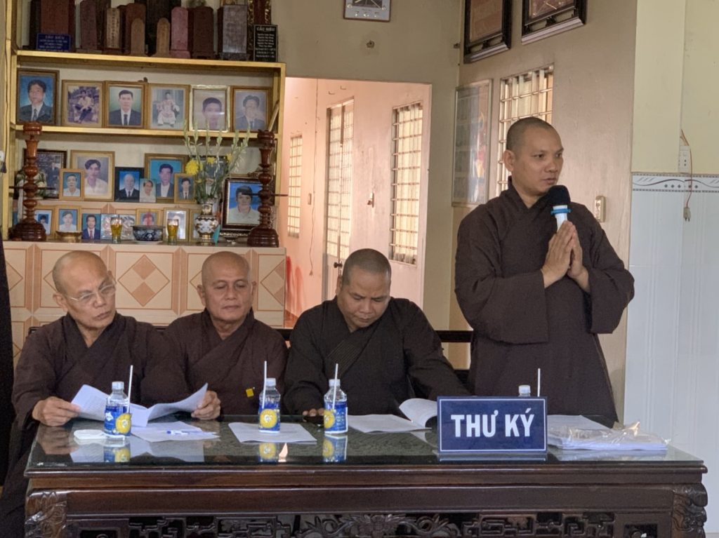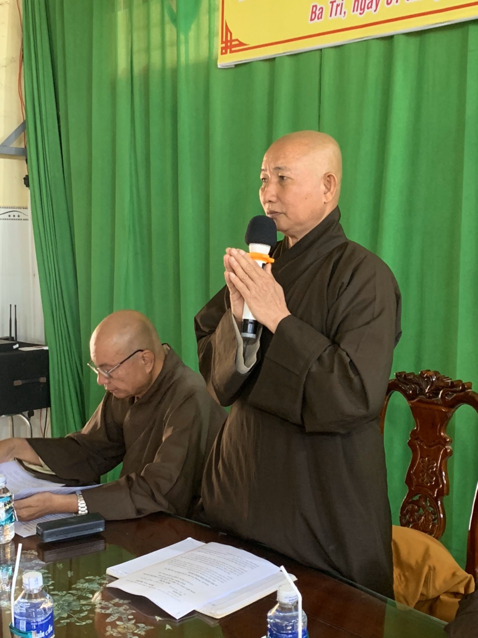 ĐĐ. Thích Trí Thanh - UV BTS PG tỉnh, Chánh Thư ký BTS PG huyện, thông qua báo cáo tổng kết công tác Phật sự năm 2019 và nêu một số phương hướng hoạt động Phật sự năm 2020.