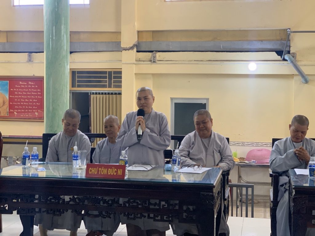 Thay mặt Ban Chủ tọa, TT. Thích Minh Hoàng - Trưởng BTS PG huyện, đúc kết những ý kiến lại, tán dương những công tác đóng góp của các tự viện cho BTS trong năm qua và chia sẻ sách tấn Tăng Ni nỗ lực làm tốt công tác Phật sự trong năm 2020 sắp tới.