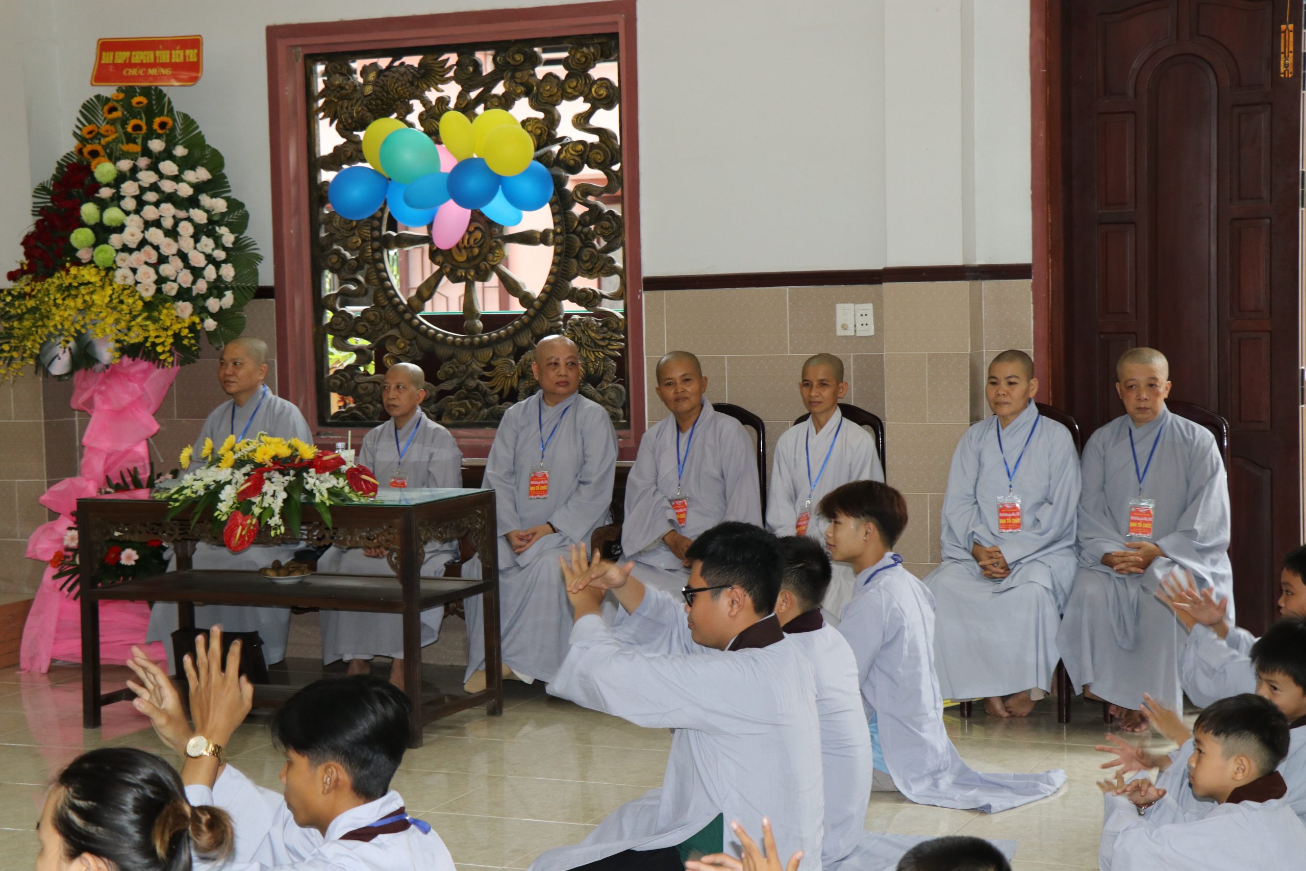 Chứng minh và tham dự : HT.Thích Lệ Linh, HT.Thích Lệ Đức – Đồng Thành viên HĐCM GHPGVN, Chứng minh BTS GHPGVN tỉnh Bến Tre; HT.Thích Nhựt Tấn – UV Thường trực HĐTS, Trưởng BTS GHPGVN tỉnh; TT.Thích Thanh Mẫn – Phó BTS tỉnh Bến Tre, Trưởng BTS PG huyện Châu Thành; ĐĐ.Thích Long Bình – Trưởng ban Thông tin truyền thông GHPGVN tỉnh; TT.Thích Minh Dũng – Phó TT BTS PG huyện; TT.Thích Nhuận Bình, ĐĐ. Thích Minh Hải – đồng Phó BTS PG huyện; NS.Thích nữ Như Nguyệt – Phó thư ký, Trưởng ban Kinh tế tài chính GHPGVN tỉnh; NS.Thích nữ Như Uyên – Phó thường trực Phân ban Ni giới tỉnh; ông Phan Minh Đạt – UV TT MTTQVN huyện Châu Thành; ông Nguyễn Trung Chánh – Phó đội trưởng Đội An ninh huyện; ông Võ Đặng Quang Vinh – Phó trưởng Phòng Nội vụ huyện; cùng Chư Tôn đức Tăng Ni trong ban tổ chức khóa tu mùa hè đồng chứng minh tham dự với hơn 150 các em khóa sinh đồng về tham dự.