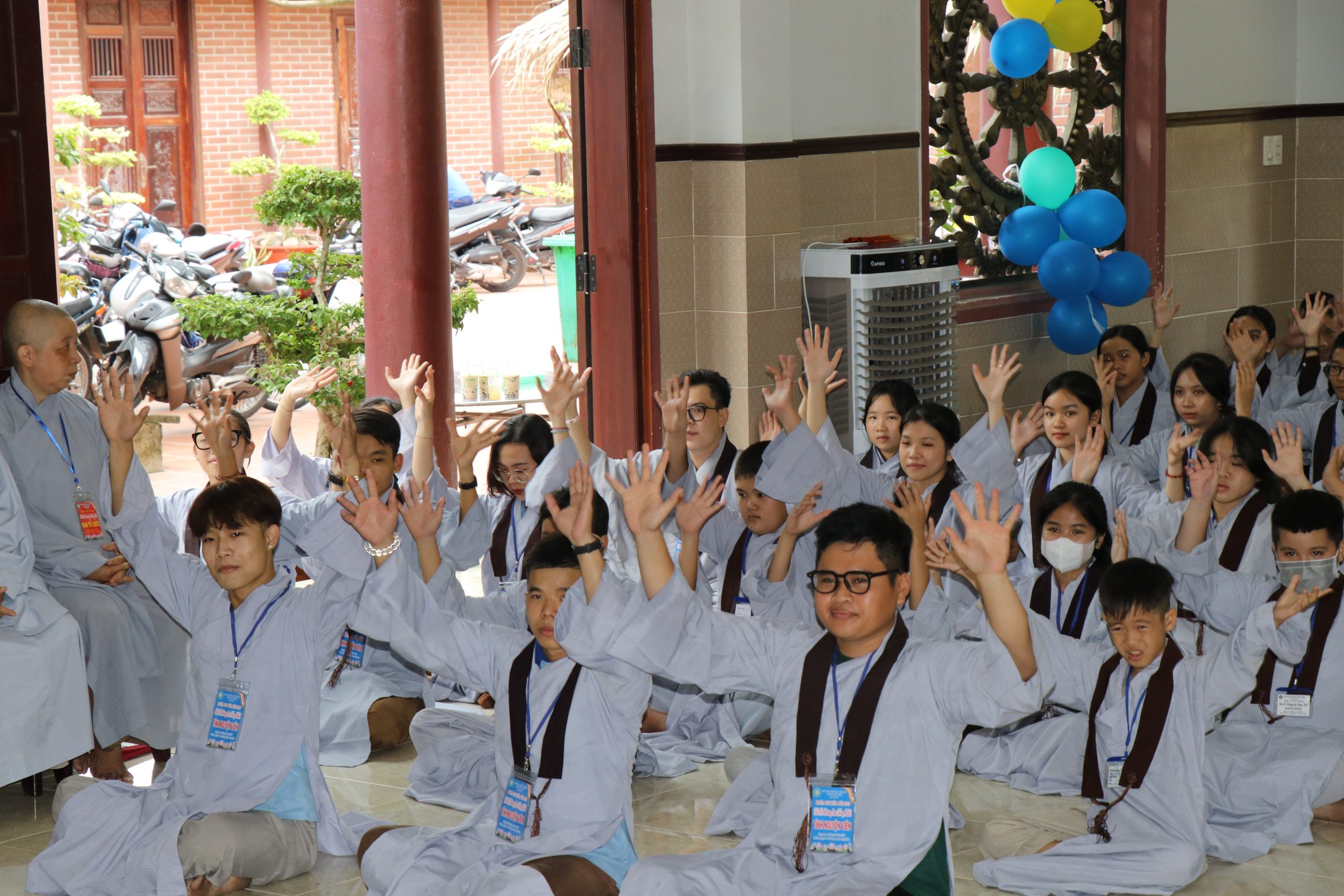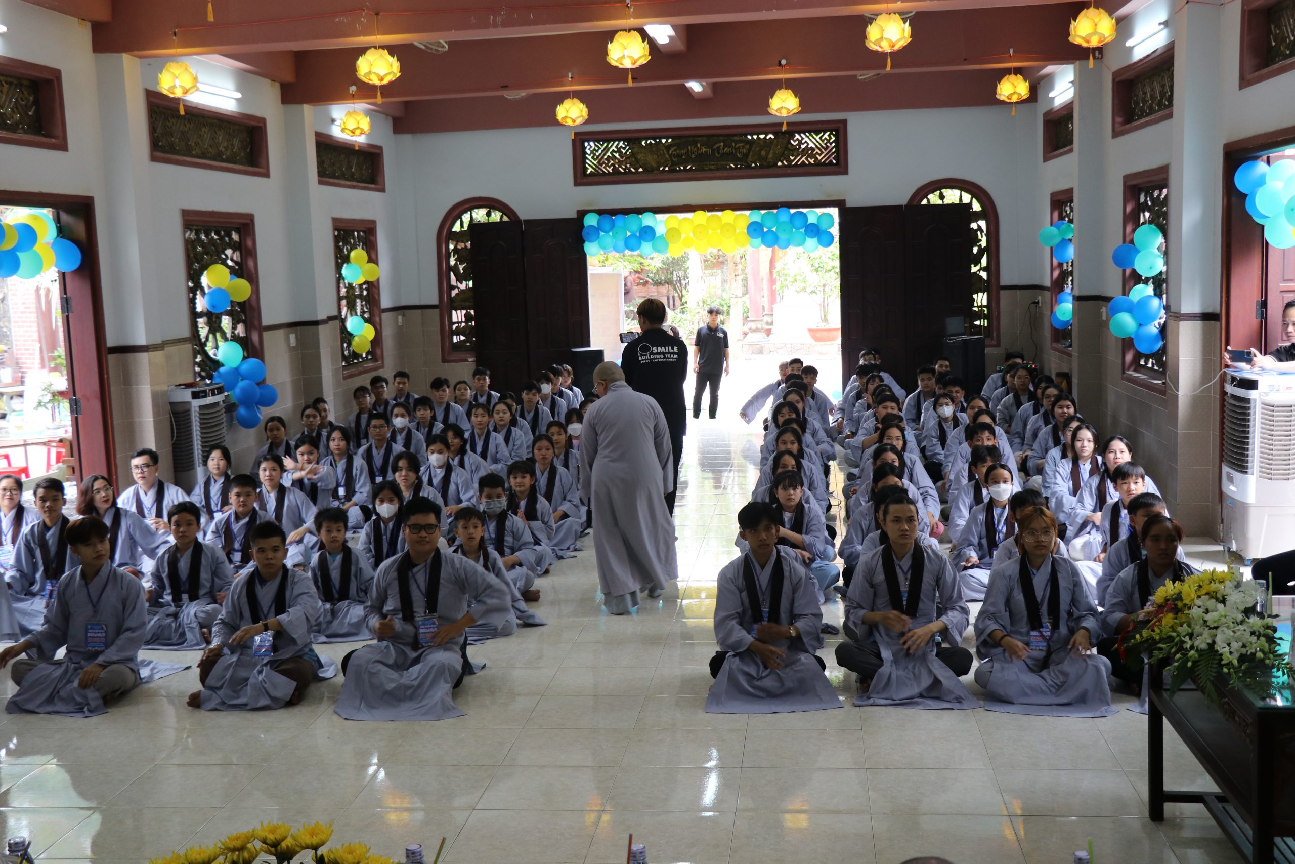 Sau buổi lễ hành chính là phần sinh hoạt thời khóa tu tập tạo năng lượng thiện lành cho các em như: tụng kinh Phước Đức, ngồi thiền an trú tâm, các anh chị tình nguyện viên và đoàn thanh niên của xã hướng dẫn các em tập múa văn nghệ và chơi trò chơi… với rất nhiều các hoạt động vui tươi bổ ích.