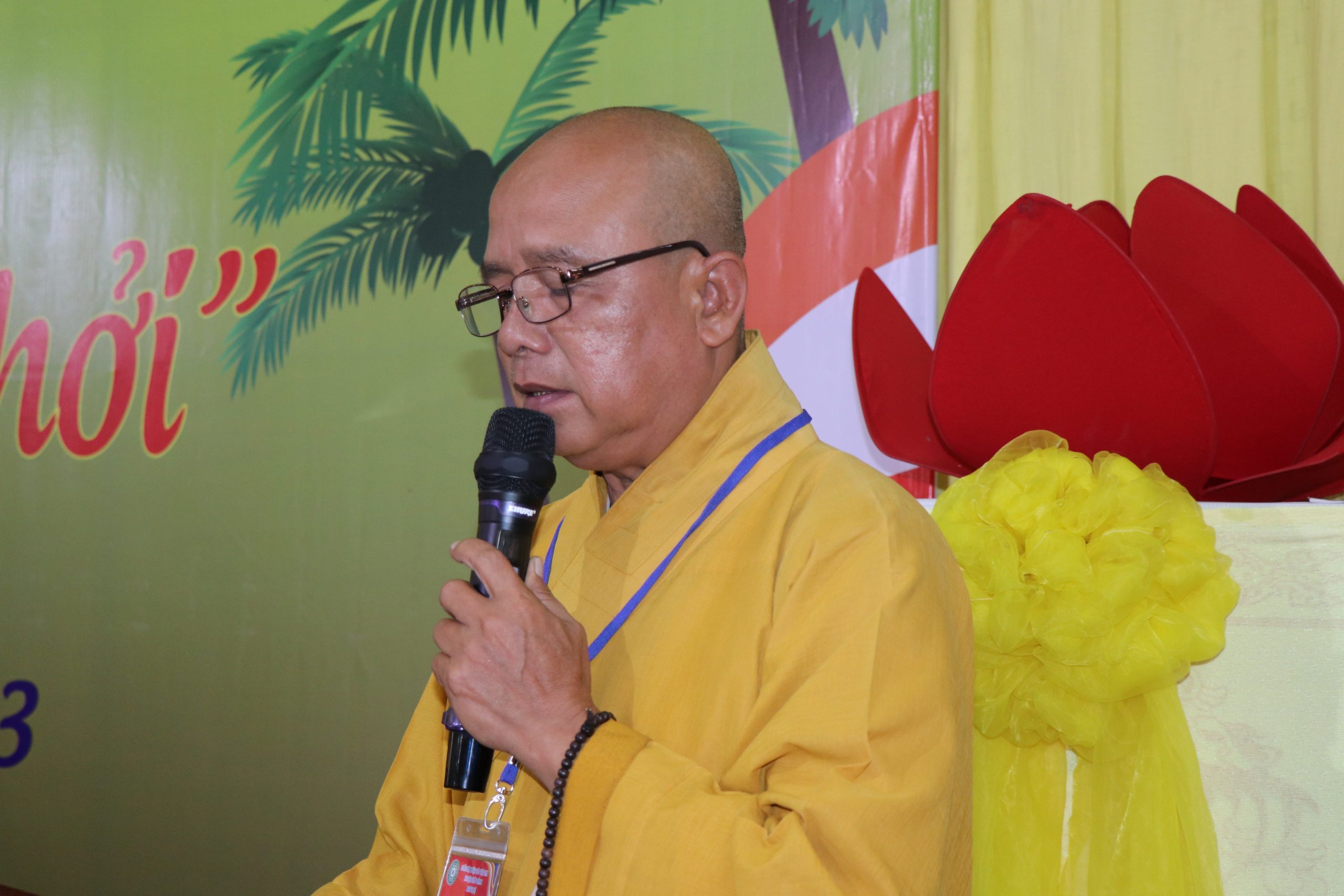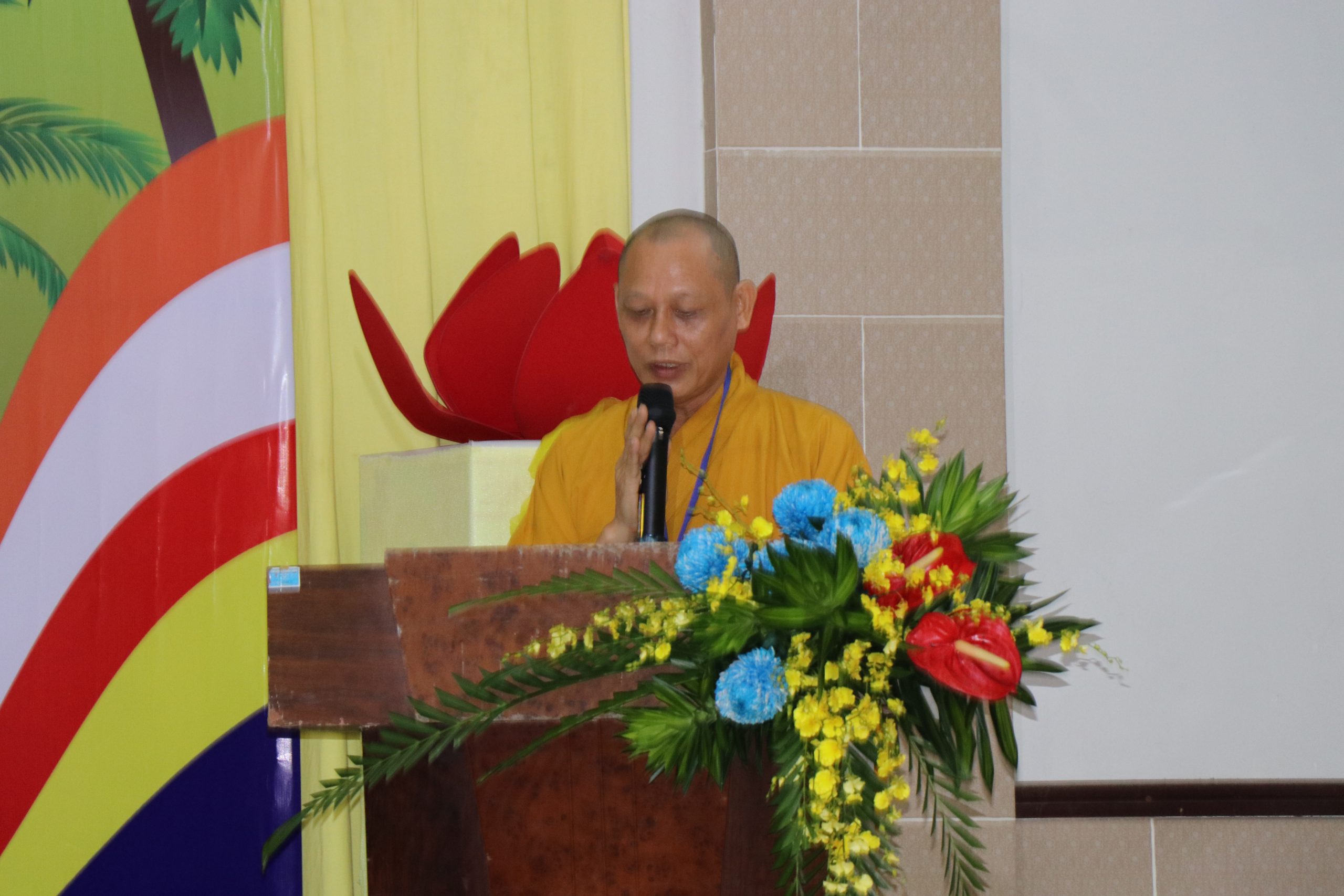 HT.Thích Lệ Đức đã có những lời đạo từ tán thán công đức của BTS GHPGVN huyện Châu Thành và có những lời sách tấn tu học đến các bạn khóa sinh và những lời chúc phúc lành thành tựu khóa tu được nhiều kết quả tốt.