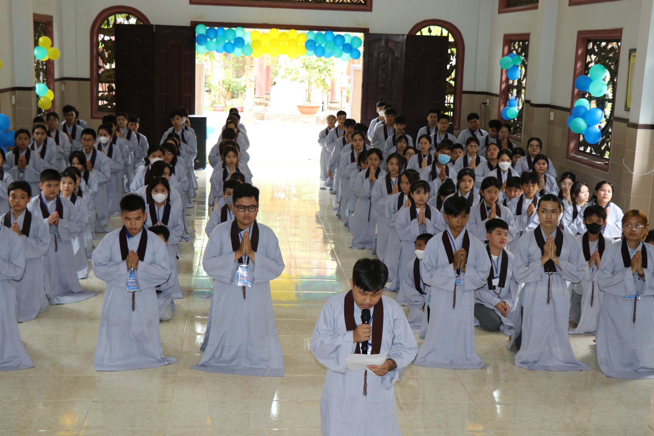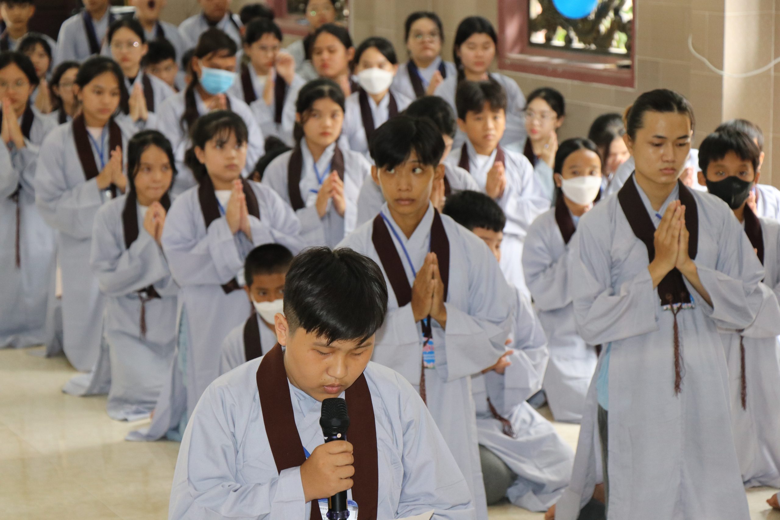 Đối trước chư Tôn Đức chứng minh, đại diện cho hơn 150 bạn khóa sinh đã phát nguyện cố gắng giữ gìn tốt những quy định trong suốt quá trình tu học.