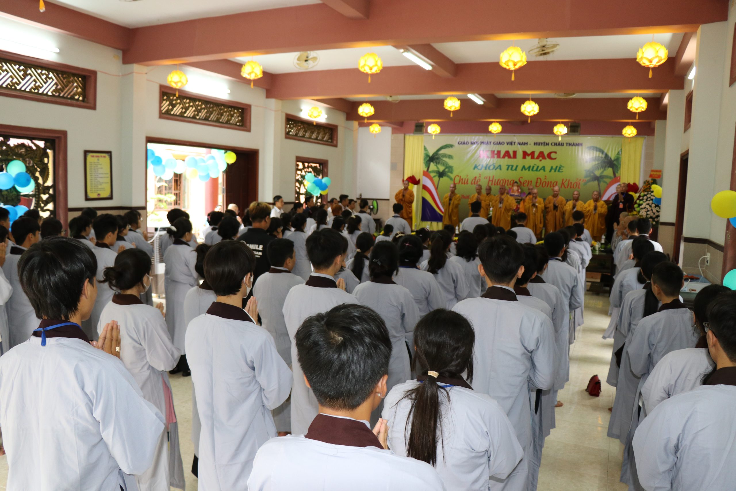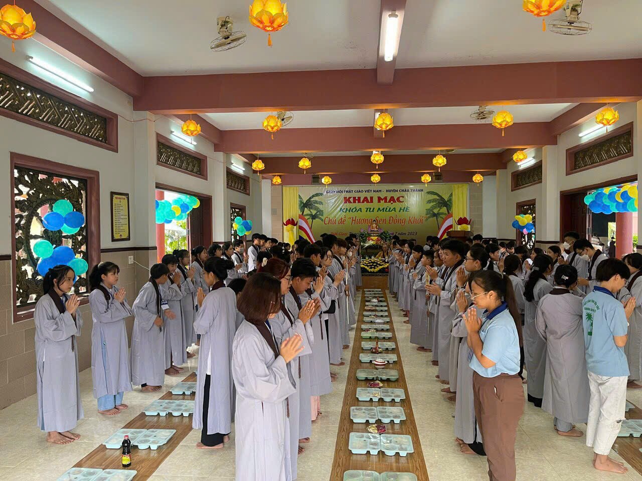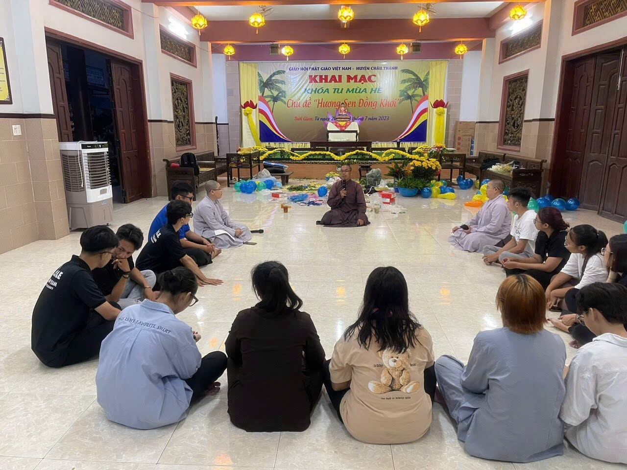 PSO-Chiều ngày 20/7/2023 Ban Trị sự GHPGVN huyện Châu Thành khai mạc khóa tu mùa hè với chủ đề "Hương Sen Đồng Khởi". Nhằm tạo điều kiện tu học và môi trường sinh hoạt vui chơi những ngày hè trong chốn già lam, để nuôi dưỡng những mầm non Phật pháp, khóa tu được tổ chức tại Chùa Bửu Thành II - huyện Châu Thành, tỉnh Bến Tre.
