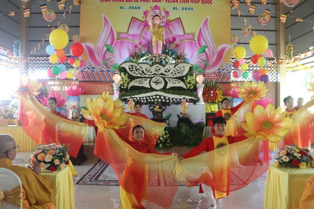 Tại lễ đài Phật đản, HT.Thích Lệ Đức – Thành viên HĐCM GHPGVN, Chứng minh BTS GHPGVN tỉnh tuyên đọc bức Thông Điệp Đại lễ Phật Đản của Đức Pháp chủ GHPGVN gửi Tăng Ni và Phật tử nhân Đại lễ Phật Đản PL.2569 và chào mừng Đại lễ Vesak 2025.