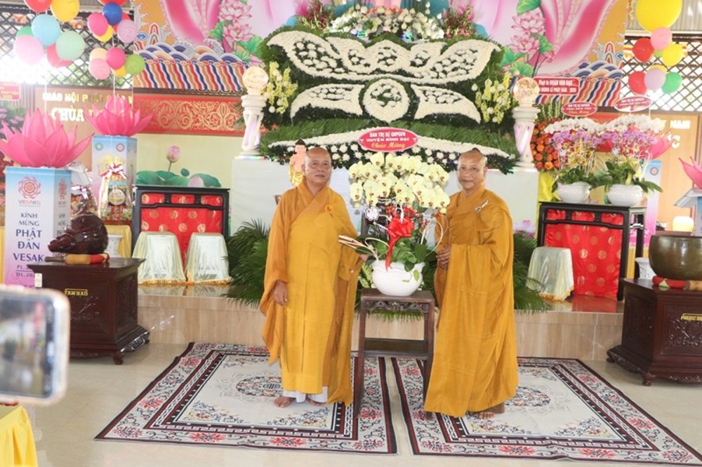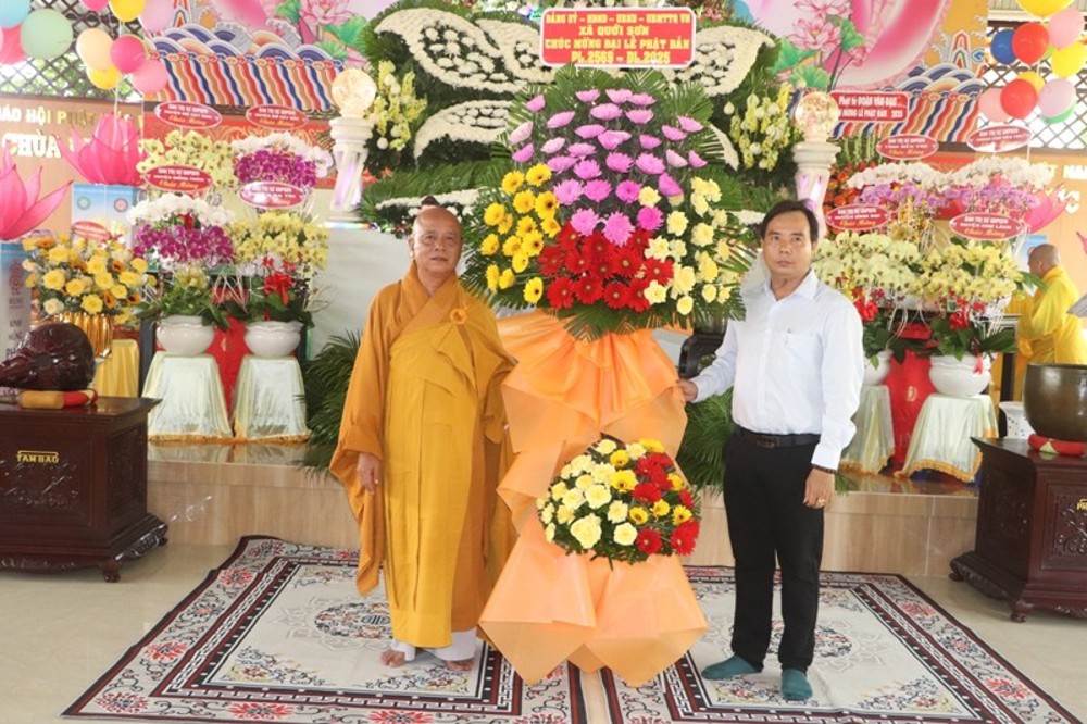 Trong niềm hân hoan, Ban Trị sự GHPGVN huyện đón nhận nhiều hoa từ chư Tôn giáo phẩm Tăng Ni, Lãnh đạo Chính quyền các cấp chúc mừng trong ngày Đại lễ Phật Đản.