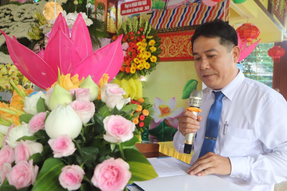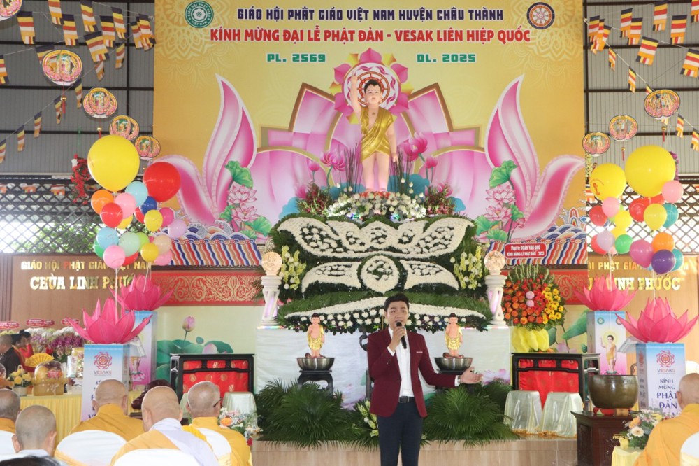 Thay mặt lãnh đạo chính quyền Ông Võ Thanh Tùng – Ủy viên Ban Thường vụ Huyện ủy, phó Chủ tịch UBND huyện có đôi lời phát biểu và chia sẻ “Đại lễ Vesak Liên Hợp Quốc 2025 rất có ý nghĩa khi được tổ chức đúng dịp Việt Nam vừa long trọng kỷ niệm 50 năm Ngày Giải phóng miền Nam (30/4/1975 – 30/4/2025), thống nhất đất nước và hướng tới kỷ niệm 135 năm ngày sinh Chủ tịch Hồ Chí Minh (19/5/1890 – 19/5/2025). Ngày Phật đản là ngày lễ thiêng liêng, mang nhiều ý nghĩa đối với xã hội, đặc biệt là những người theo Phật giáo, là dịp để tôn vinh những giá trị cao đẹp mà Phật giáo mang đến cho đời sống con người, đó là tinh thần từ bi, trí tuệ, đoàn kết và phát triển bền vững, nhân văn. Thay mặt lãnh đạo huyện nhà, chúng tôi xin ghi nhận và đánh giá rất cao những kết quả hoạt động Phật sự trong thời gian qua, cũng như ghi nhận sâu sắc những tình cảm mà Nhân dân Châu Thành đã đồng tâm hiệp lực cùng chính quyền xây dựng nên những giá trị truyền thống và bản sắc văn hóa của quê hương.”