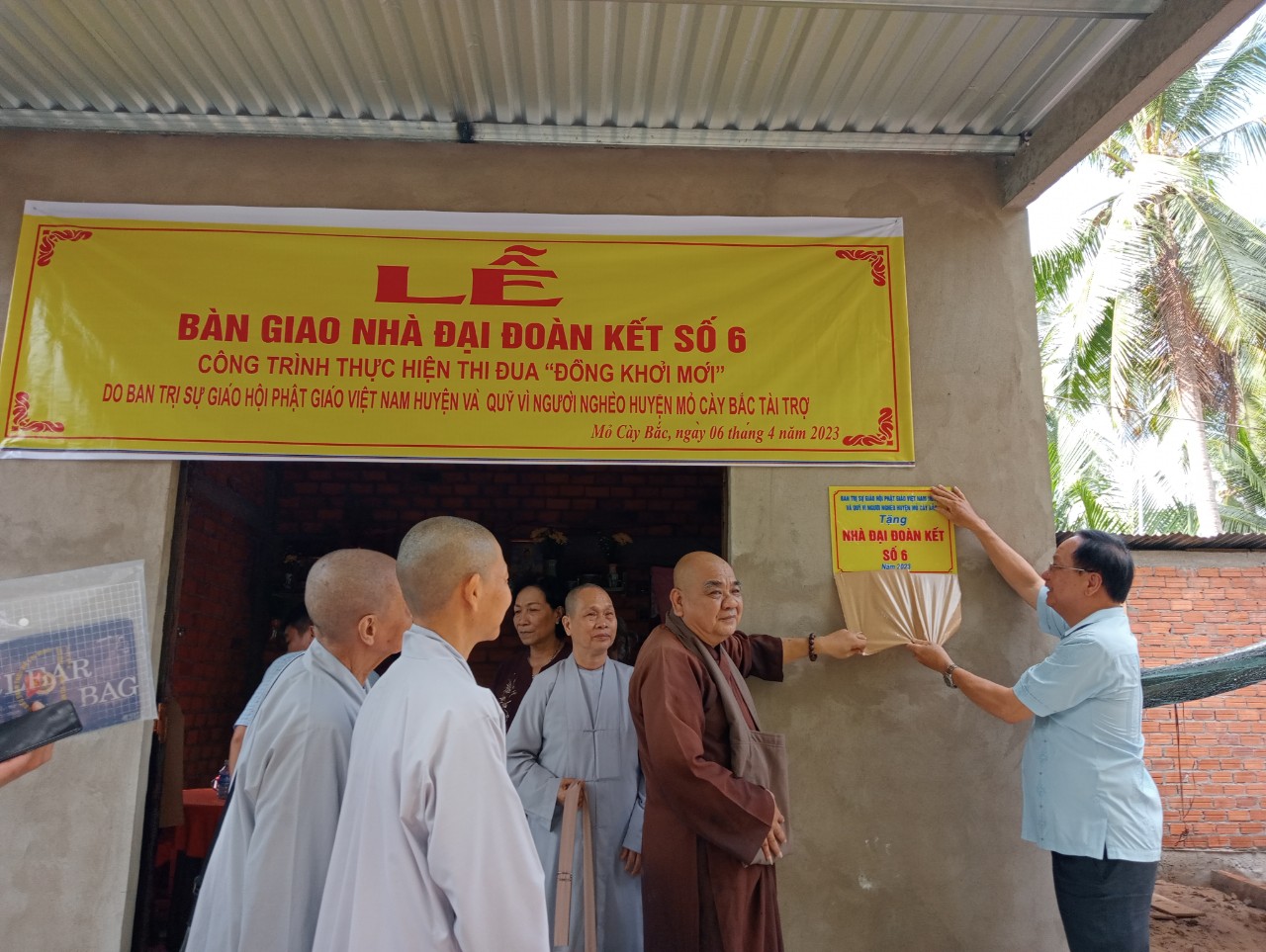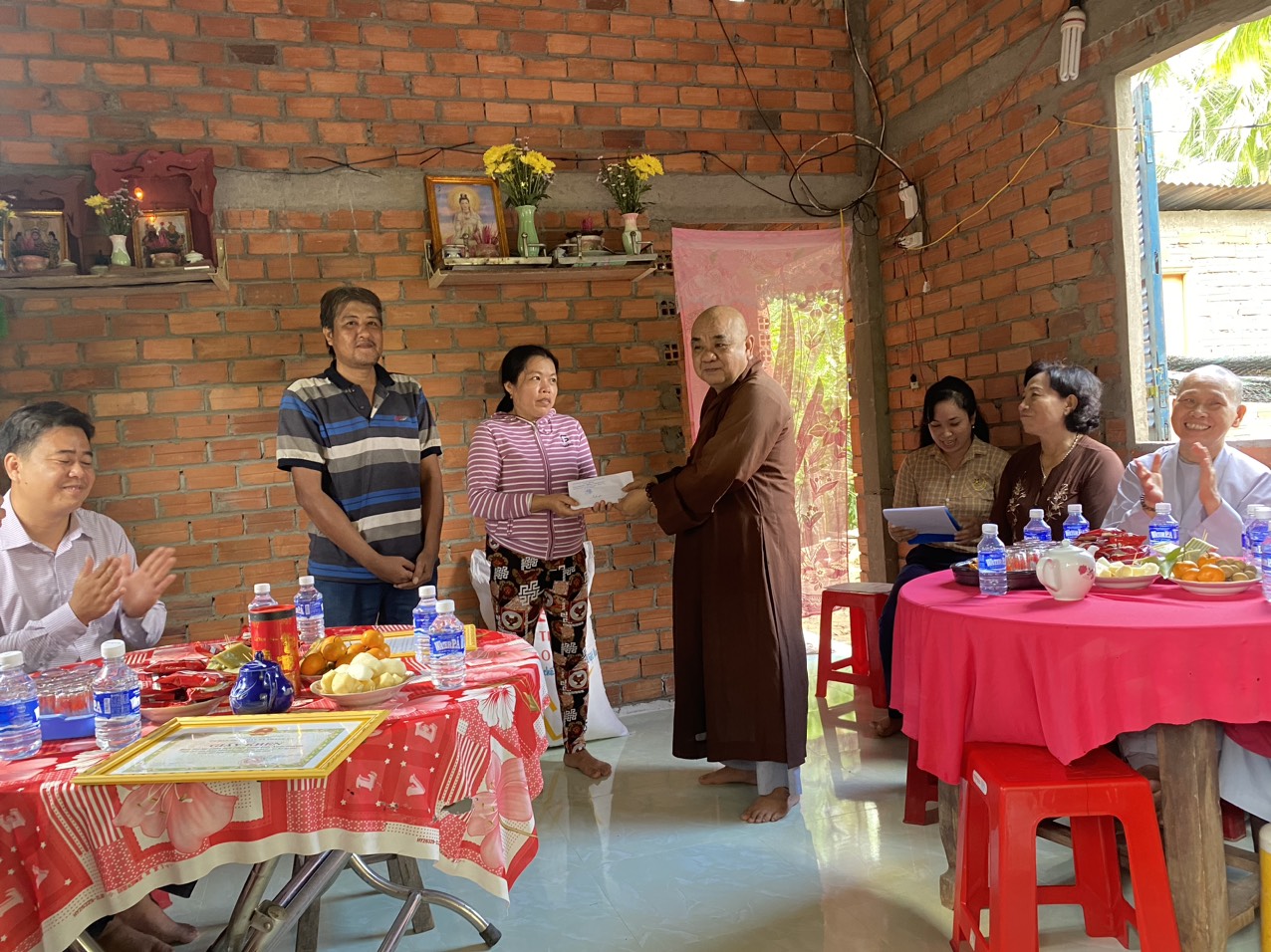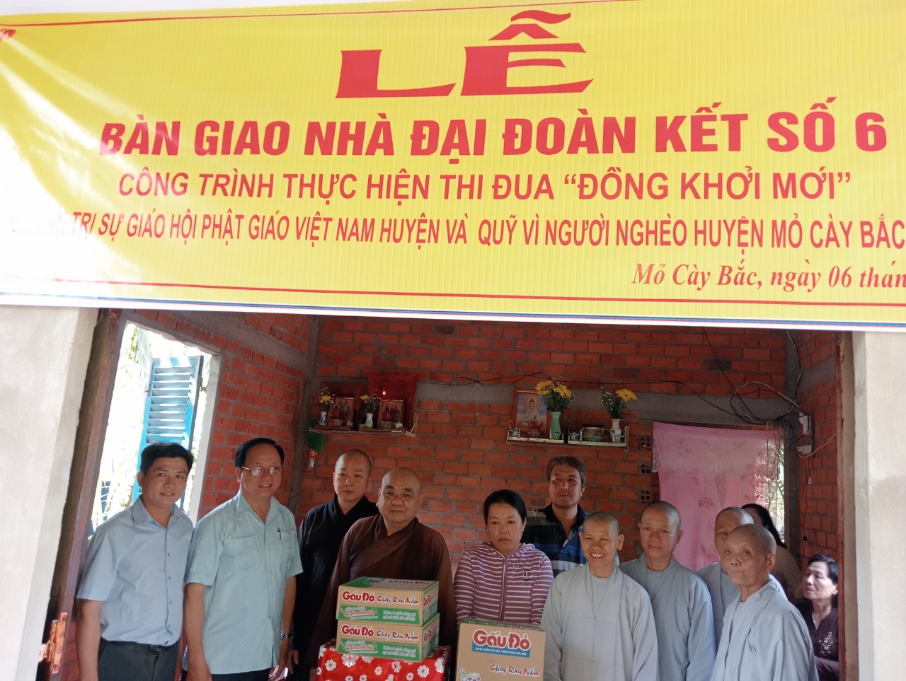 PSO-Ngày 06/04/2023 Ban Trị Sự GHPGVN huyện Mỏ Cày Bắc bàn giao căn nhà đại đoàn kết số 6 cho hộ bà Trần Thị Thắm - ấp Đông Lợi, xã Thành An, huyện Mỏ Cày Bắc, tỉnh Bến Tre.
