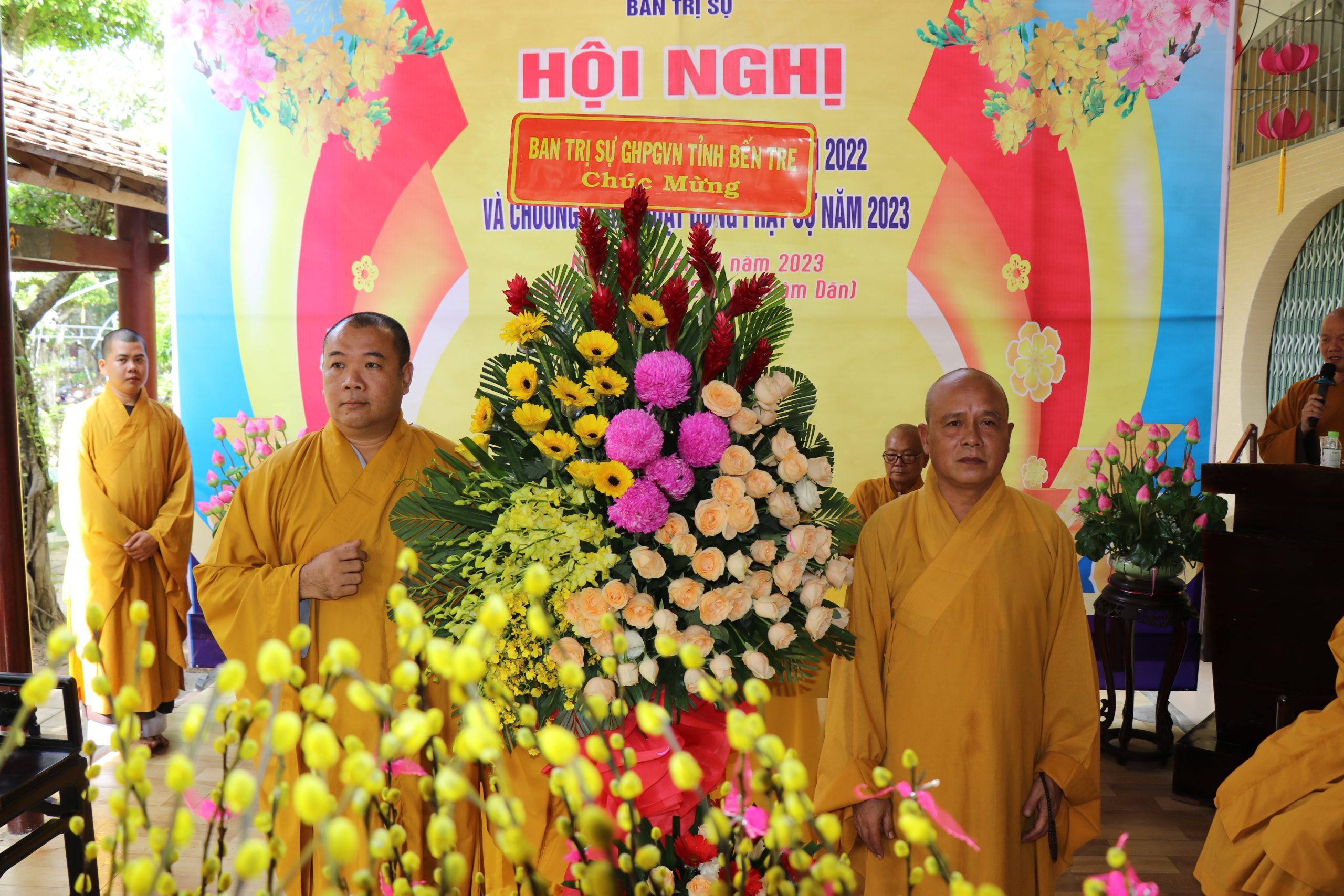 Tham dự hội nghị có: HT.Thích Lệ Linh, HT.Thích Lệ Đức – Đồng Thành viên HĐCM GHPGVN, Chứng minh BTS GHPGVN tỉnh Bến Tre; HT.Thích Nhựt Tấn – UV Thường trực HĐTS, Trưởng BTS GHPGVN tỉnh; HT.Thích Tư Ân - chứng minh BTS GHPGVN huyện Châu Thành; TT.Thích Trí Thọ – UV HĐTS, Phó ban thường trực BTS GHPGVN tỉnh; TT.Thích Huệ Đức - Phó BTS kiêm Trưởng Ban Kiểm soát GHPGVN tỉnh; TT.Thích Thanh Mẫn – Phó BTS tỉnh Bến Tre, Trưởng BTS PG huyện Châu Thành; ĐĐ.Thích Trí Thuận – Phó Ban kiêm Chánh Thư ký BTS GHPGVN tỉnh; NT.Thích nữ Như Đán - Phó BTS tỉnh, Trưởng PBNG tỉnh; cùng Chư Tôn đức Ban thường trực BTS GHPGVN huyện Châu Thành và chư tôn đức trụ trì các tự viện trong huyện đồng tham dự.