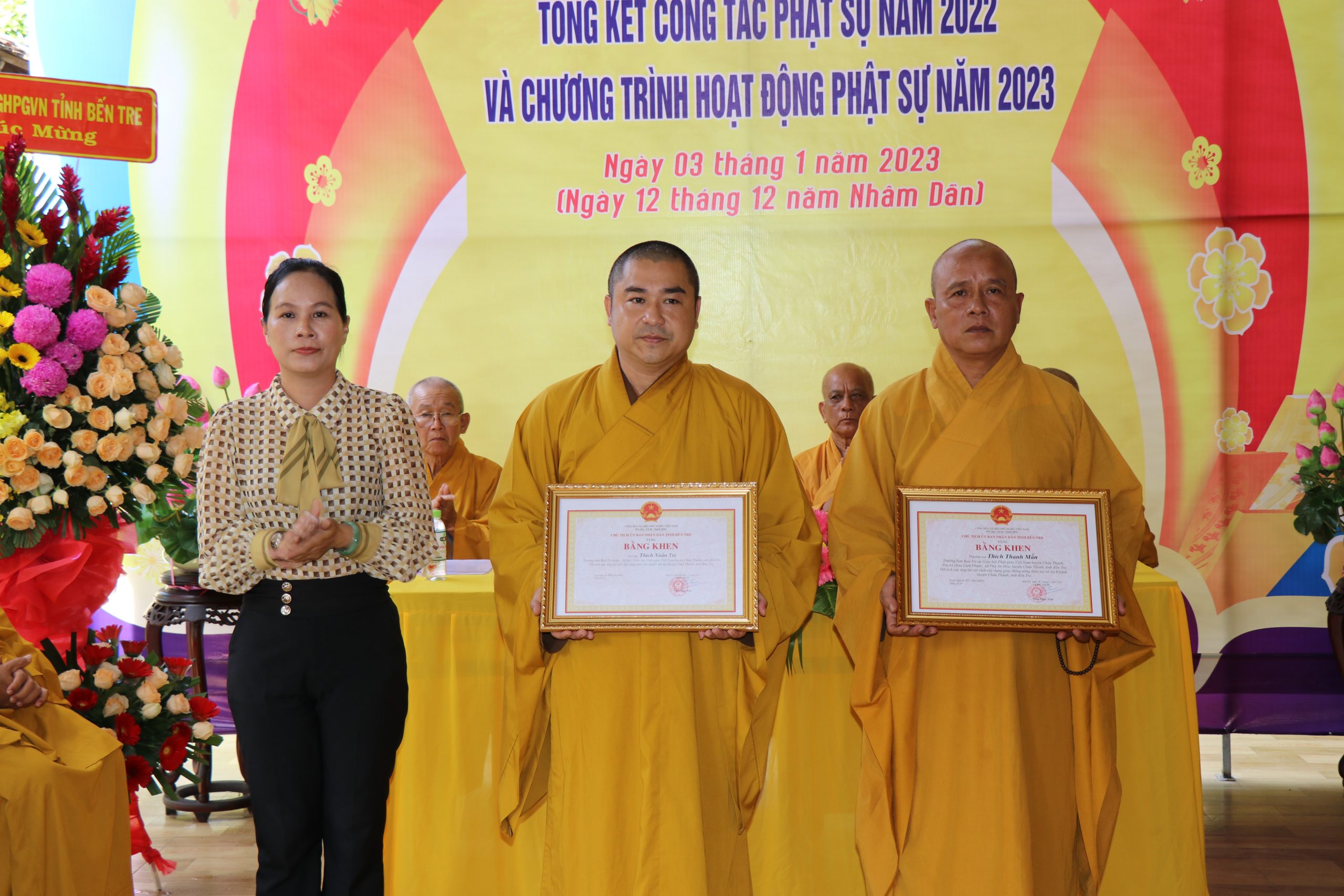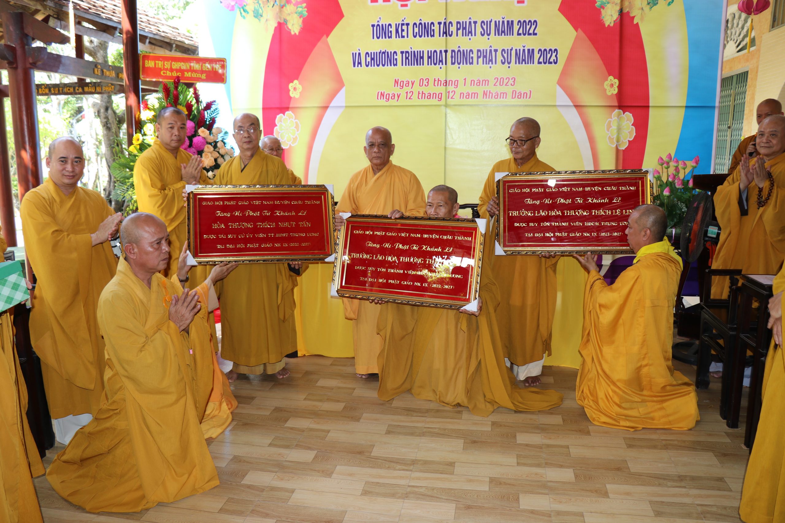 Tại hội nghị, những tấm hoành phi chúc mừng chư tôn Hòa thượng được tấn phong lên hàng HĐCM, bến cạnh đó còn trao tặng các bằng tuyên dương công đức tập thể và cá nhận nhằm nghi nhận các chư tôn đức đã cống hiến hết mình trong năm qua.